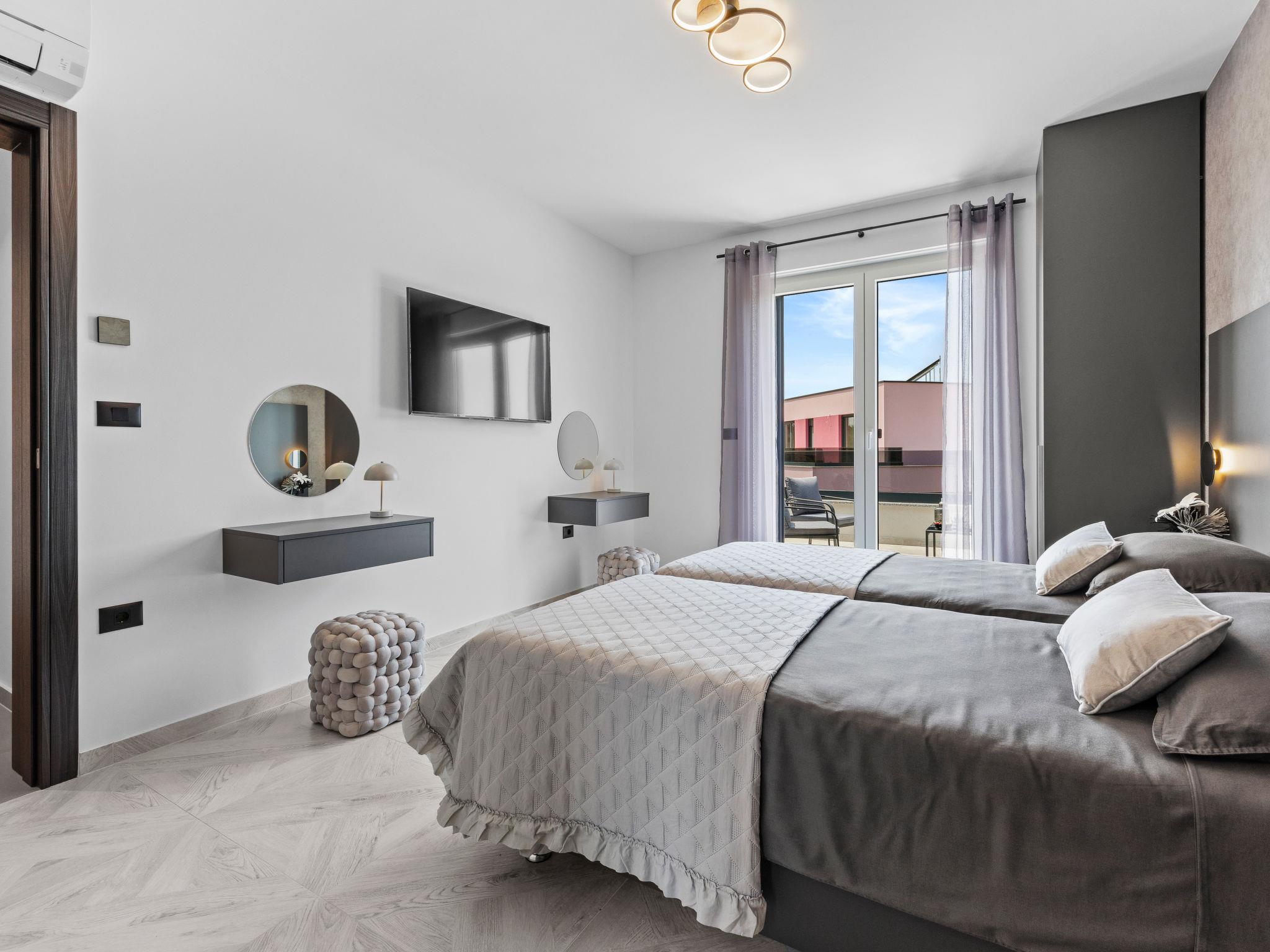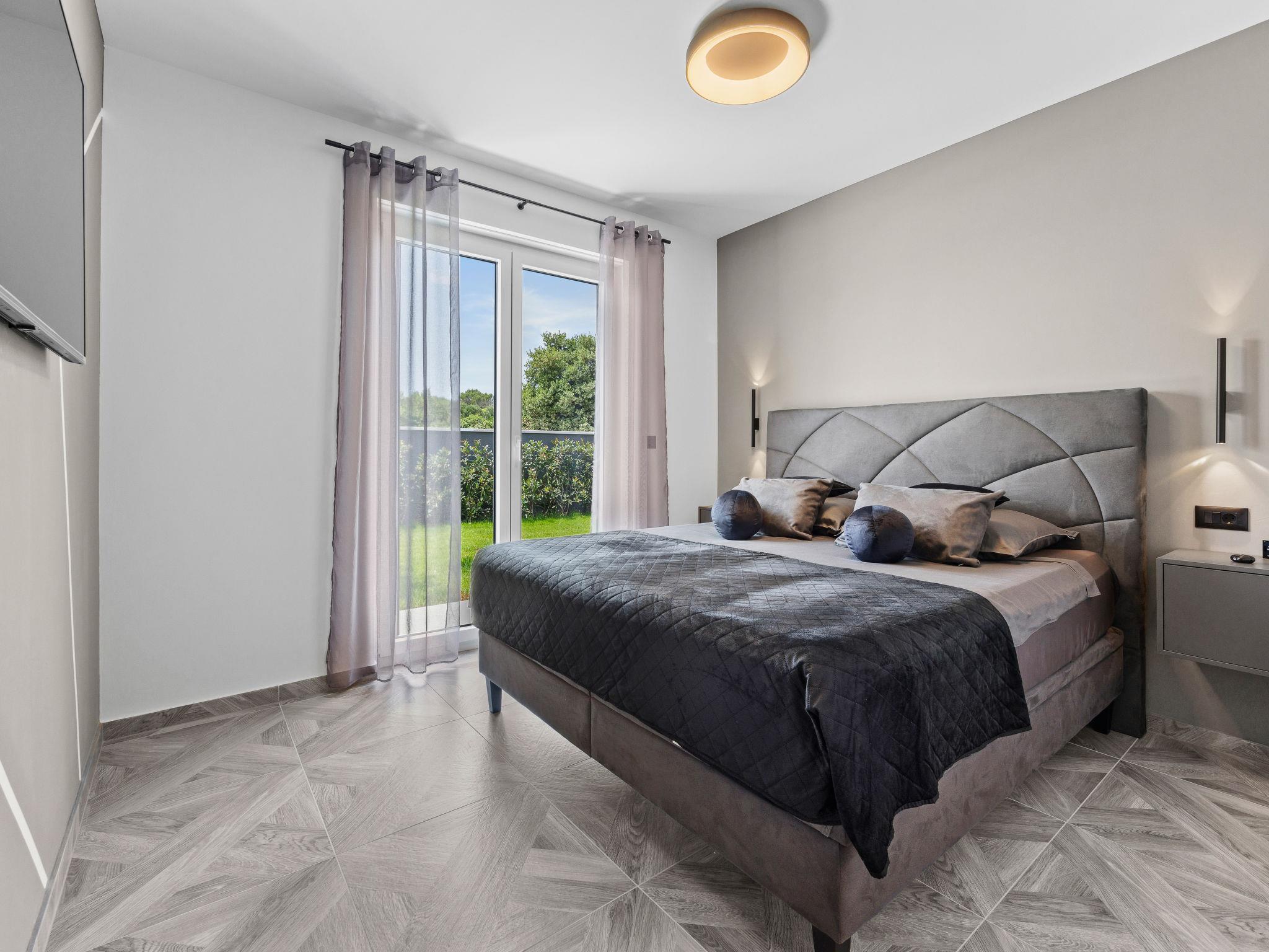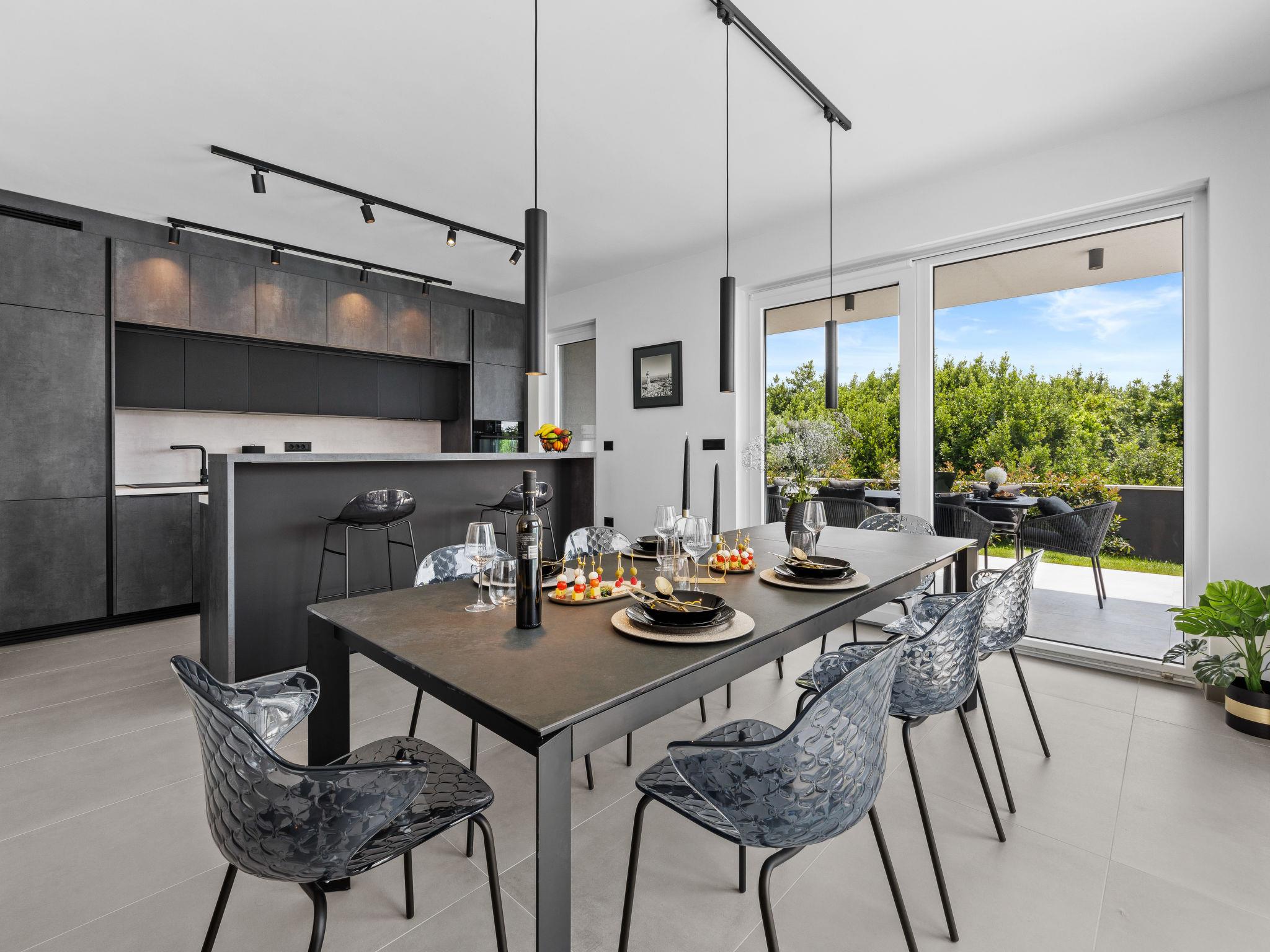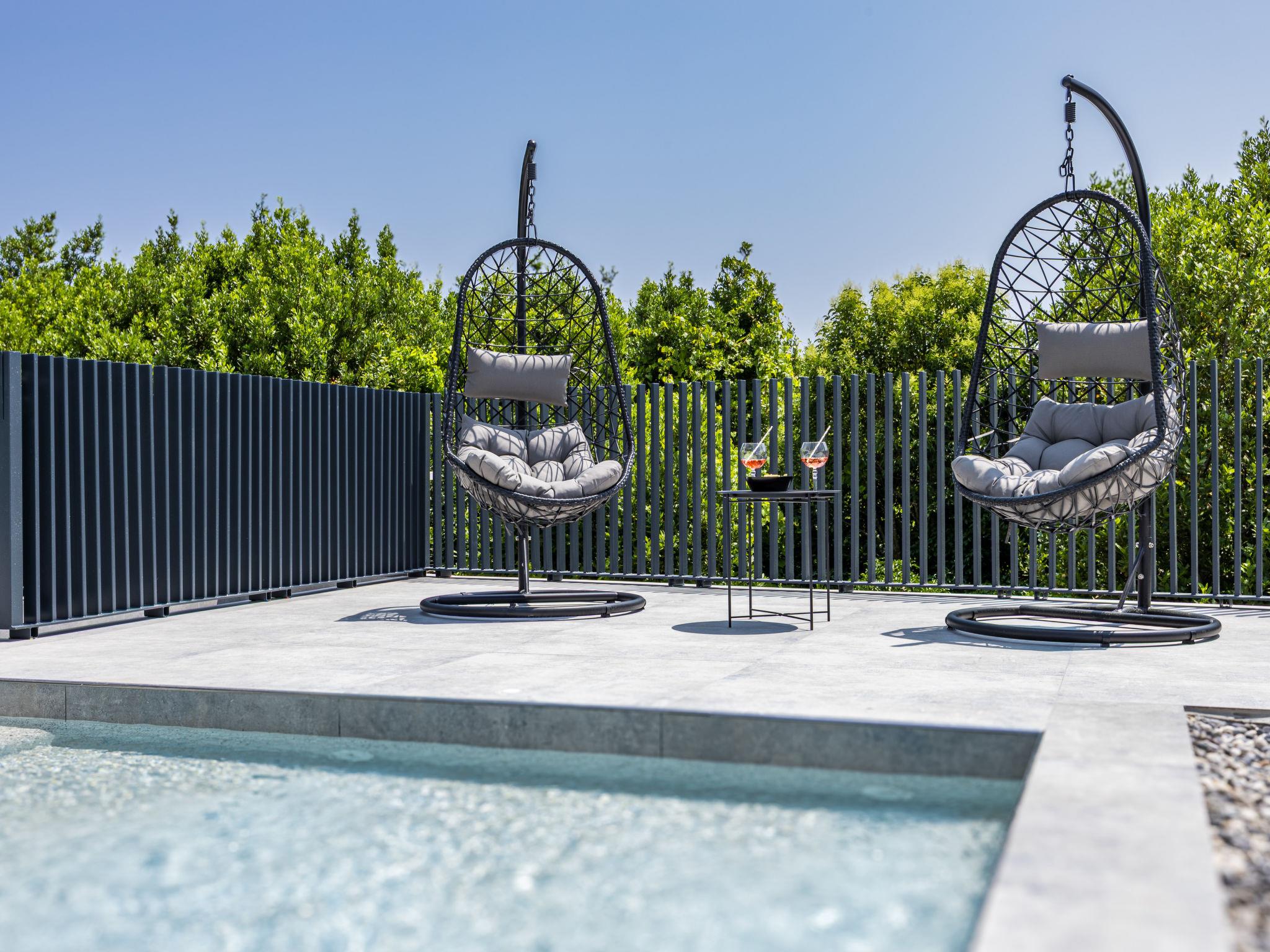 Premantura 11 km from Pula: Beautiful villa "Delecto", 2 storeys, built in 2025. 250 m from the centre of Premantura, in a sunny position, 500 m from the sea, 500 m from the beach. Private: property 600 m2 (fenced), garden with wildlife garden, swimming pool angular (8 x 4 m, depth 140 cm, seasonal availability: 04.Apr. - 10.Oct.) with internal staircase. Outdoor shower, terrace (15 m2), barbecue, pool maintenance by the owner/gardener. In the house: internet access, washing machine. Parking (for 3 cars) at the house on the premises. Shop 250 m, supermarket 4.5 km, restaurant 50 m, bus stop 220 m, pebble beach 2.5 km, rocky beach 500 m. Surf school 2.5 km, tennis 750 m, riding stable 10 km, walking paths from the house 100 m, cycle lane 150 m. Nearby attractions: Nature park Kamenjak 650 m. Groups of teenagers on request only. Neighbourhood highly sensitive to noise. Quietness and good behaviour expected. Swimming pool with hydromassage.