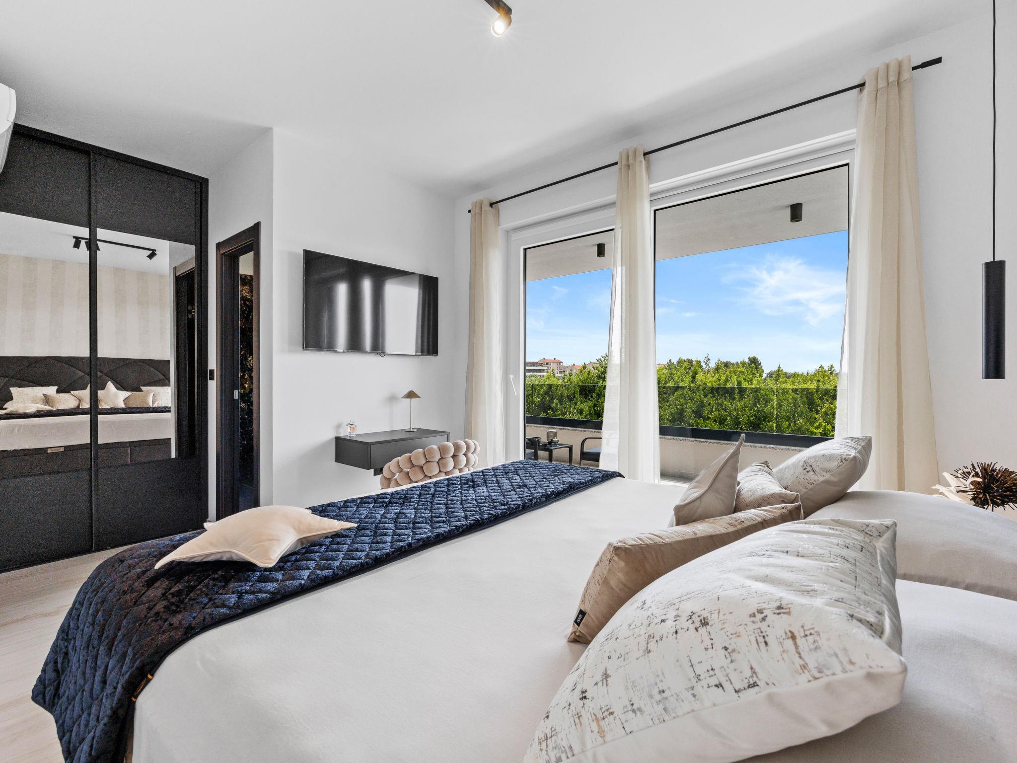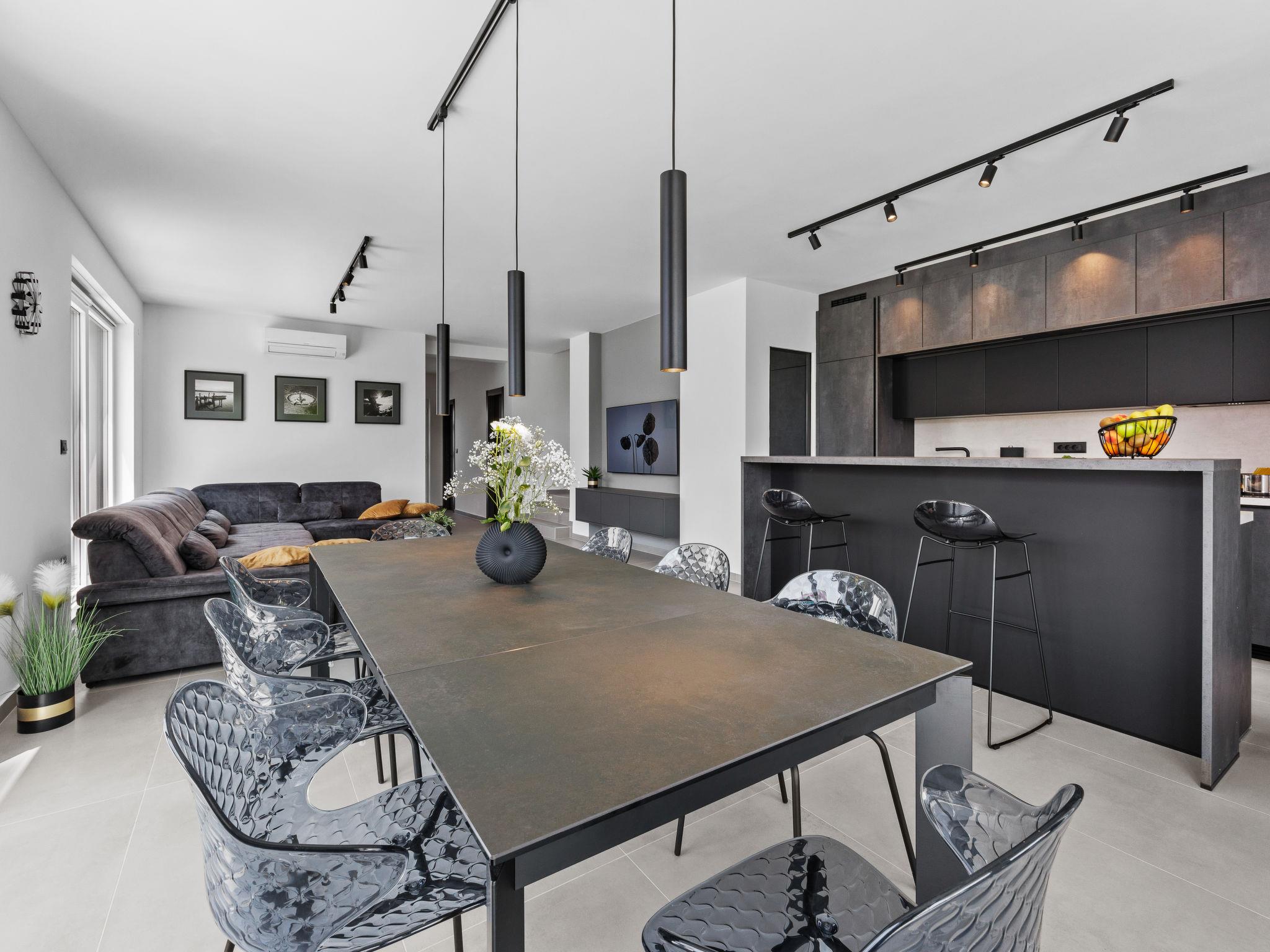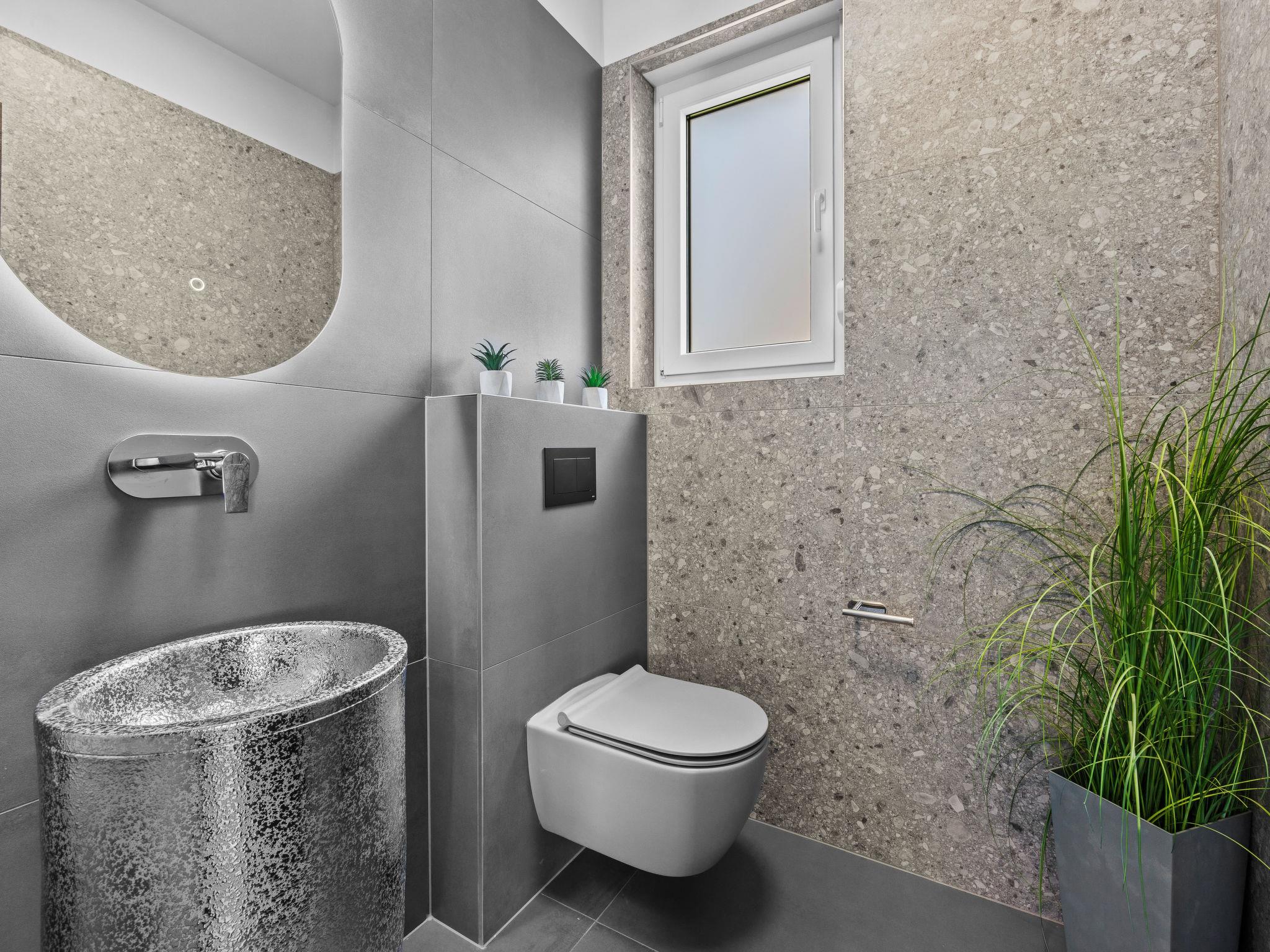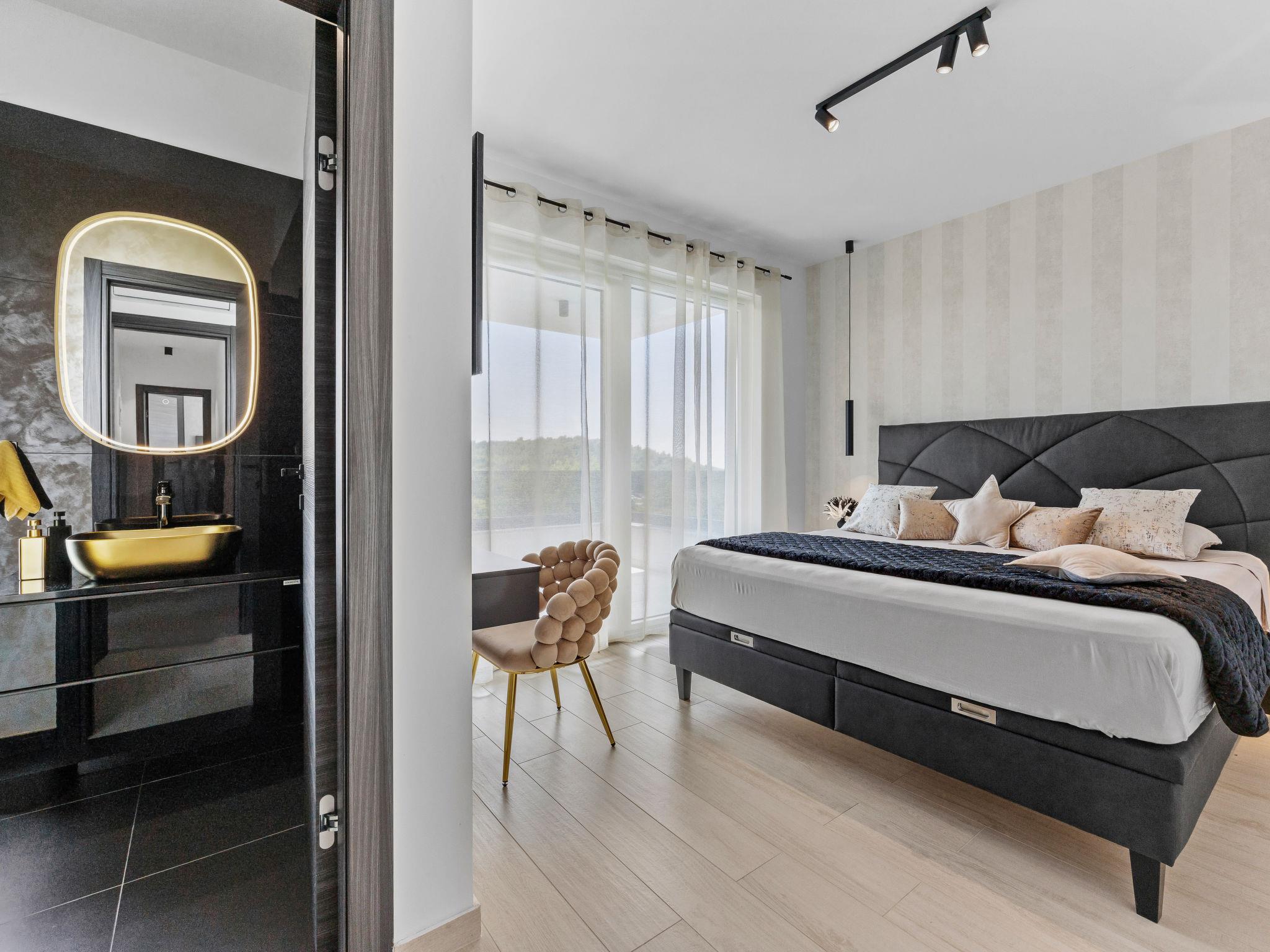 Premantura 11 km from Pula: Beautiful villa "Delecto", 2 storeys, built in 2025. 250 m from the centre of Premantura, in a sunny position, 500 m from the sea, 500 m from the beach. Private: property 600 m2 (fenced), garden with wildlife garden, swimming pool angular (8 x 4 m, depth 140 cm, seasonal availability: 04.Apr. - 10.Oct.) with internal staircase. Outdoor shower, terrace (15 m2), barbecue, pool maintenance by the owner/gardener. In the house: internet access, washing machine. Parking (for 3 cars) at the house on the premises. Shop 250 m, supermarket 4.5 km, restaurant 50 m, bus stop 220 m, pebble beach 2.5 km, rocky beach 500 m. Surf school 2.5 km, tennis 750 m, riding stable 10 km, walking paths from the house 100 m, cycle lane 150 m. Nearby attractions: Nature park Kamenjak 650 m. Groups of teenagers on request only. Neighbourhood highly sensitive to noise. Quietness and good behaviour expected. Swimming pool with hydromassage.