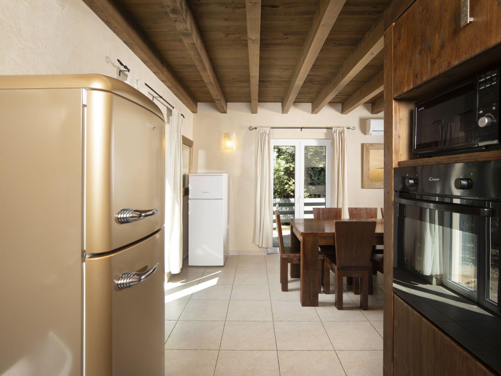 Enjoy a heated pool, soothing sauna, and a practical outdoor dining area with a BBQ. A swing adds fun for kids, while air conditioning and TVs in every bedroom keep guests cool and entertained.