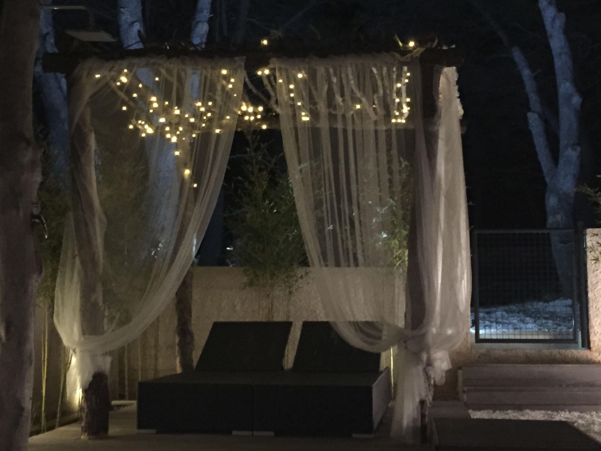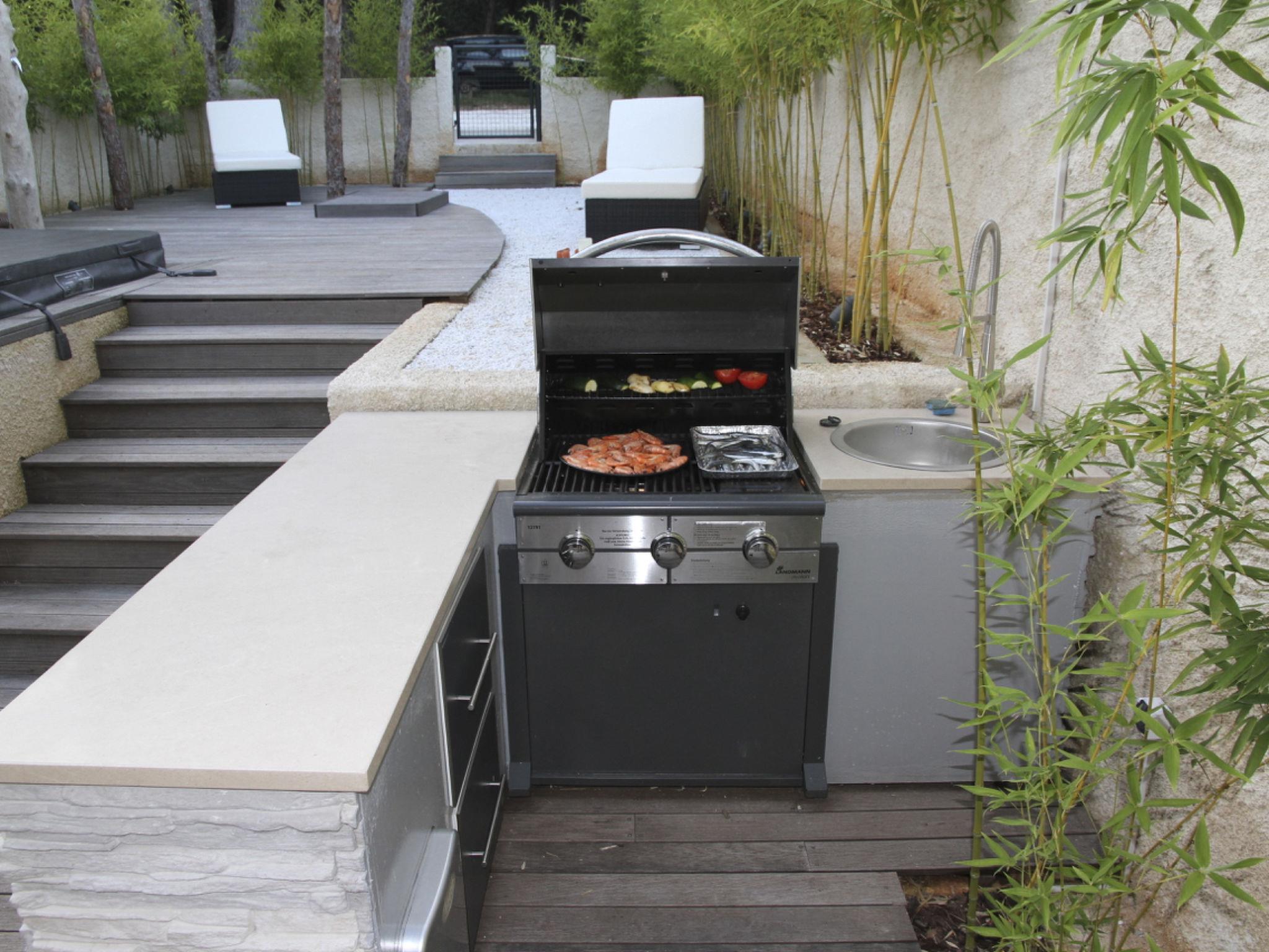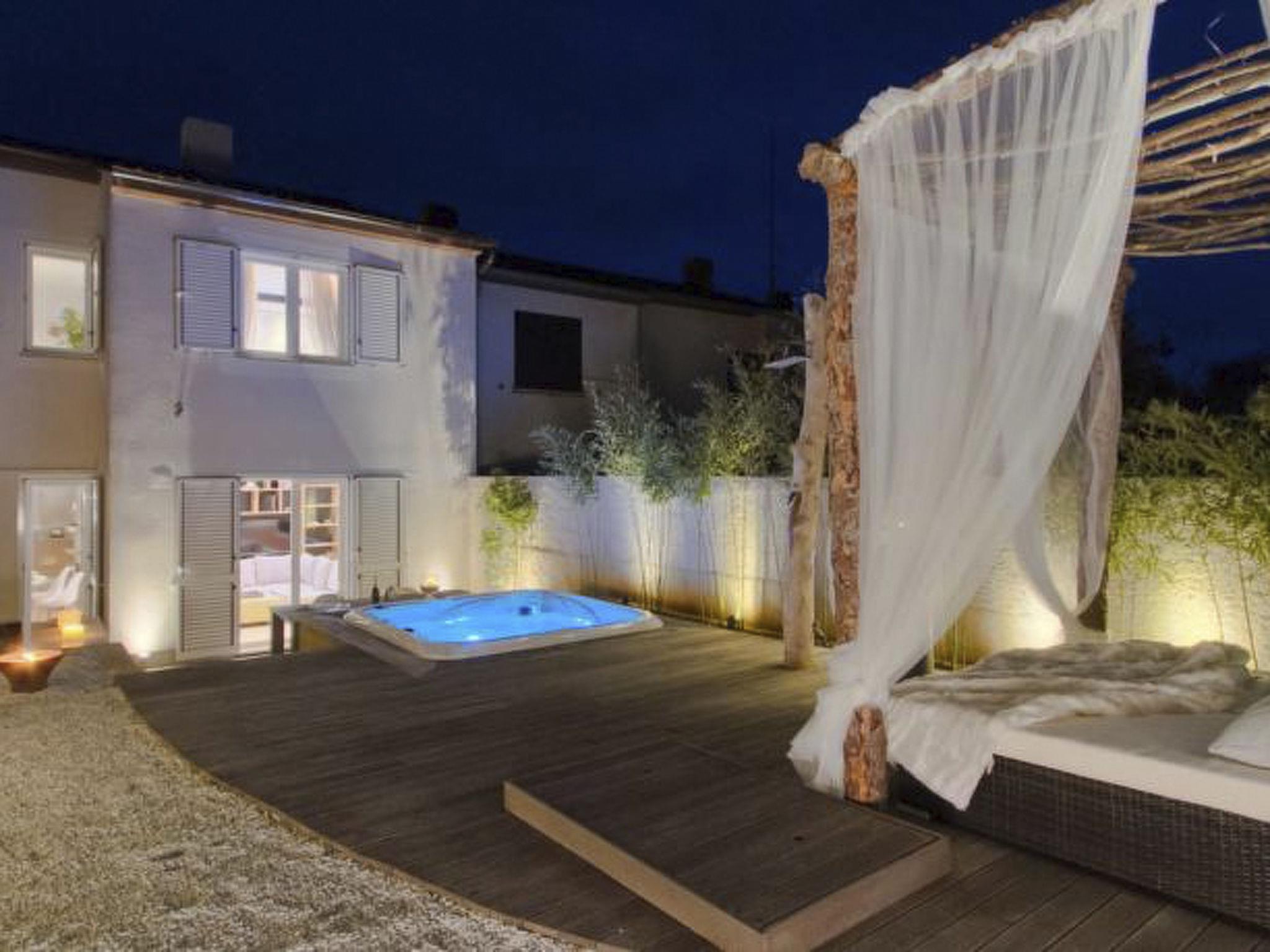 - Jacuzzi with outdoor shower and pergola with outdoor chairs