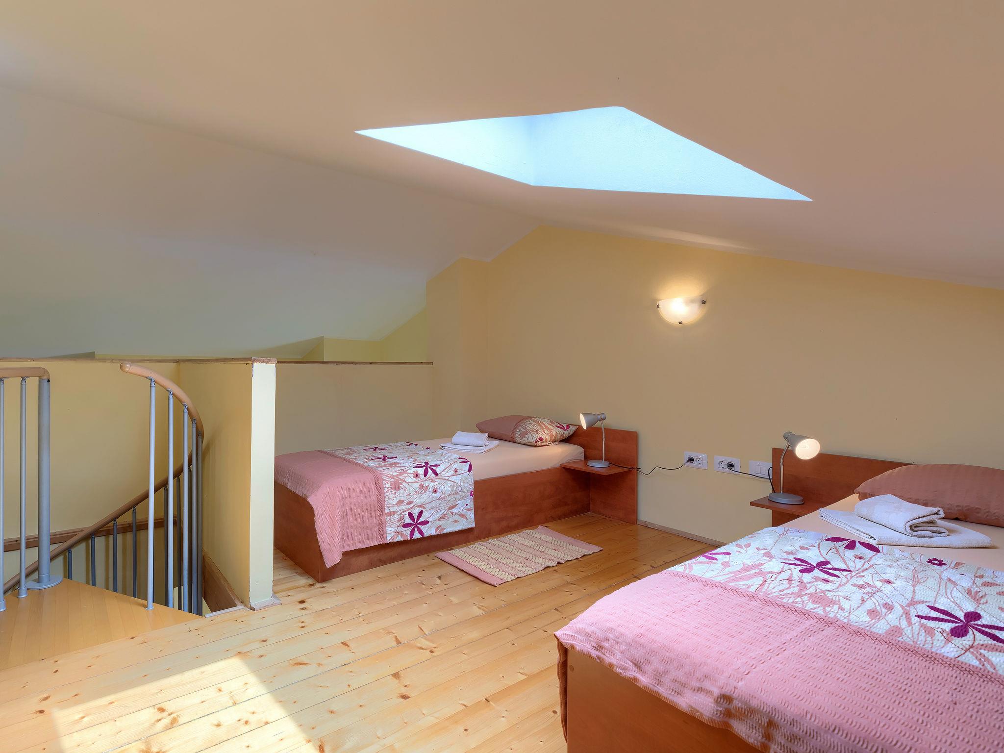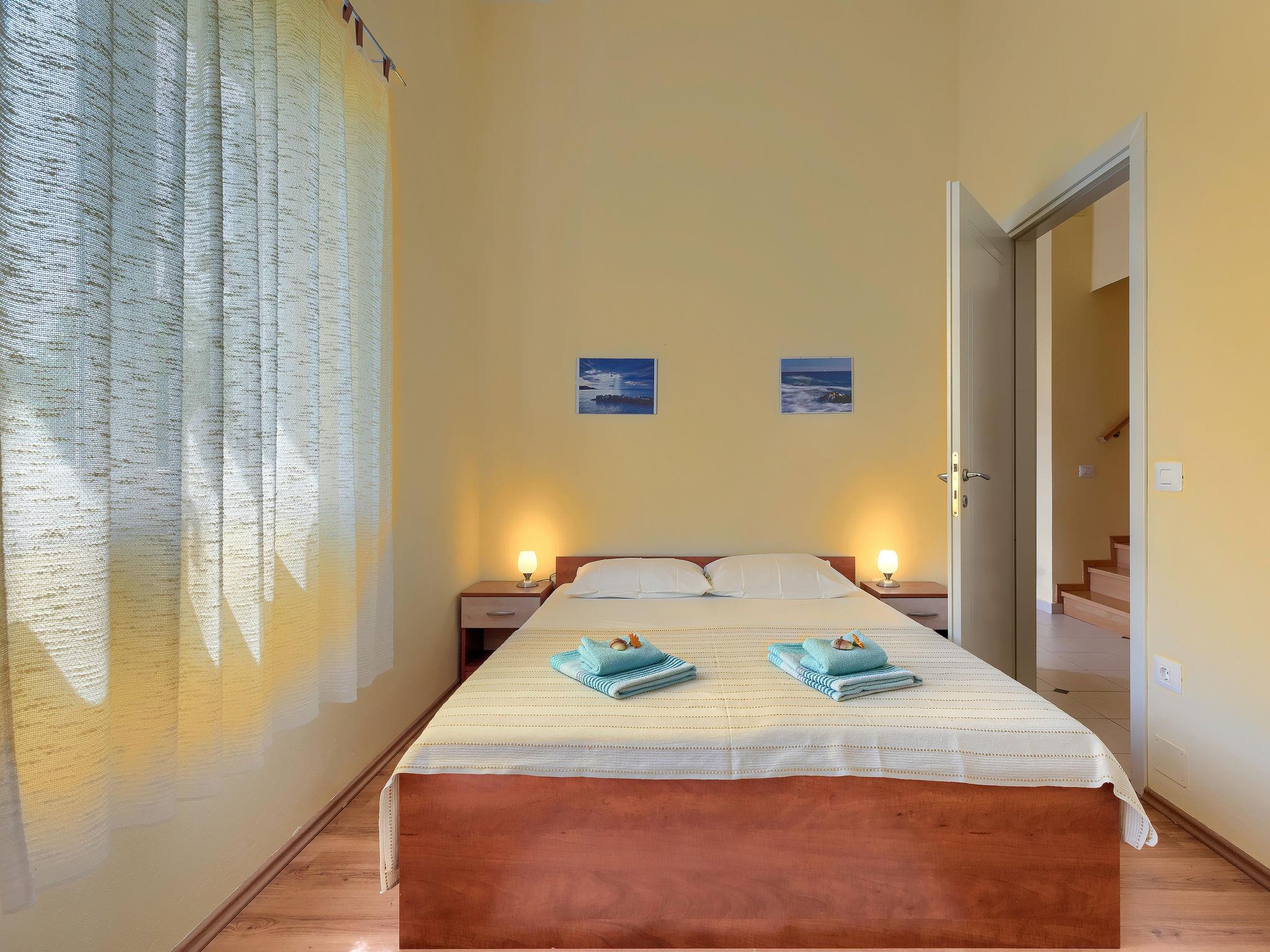 Beautiful semi-detached house "Ljiljana". On the outskirts, 500 m from the centre, in a sunny position, 2 km from the sea, 2 km from the beach. Private: property 1'500 m2 (fenced) with wildlife garden and trees, natural garden, swimming pool round (6 m diameter, depth 120 cm, seasonal availability: 01.May. - 30.Sep.). Terrace, garden furniture, barbecue. In the house: internet access. Parking at the house. Shop, restaurant 500 m, bus stop 7.2 km, shingle beach 2 km, rocky beach 2 km. Part of the house is closed and unoccupied.