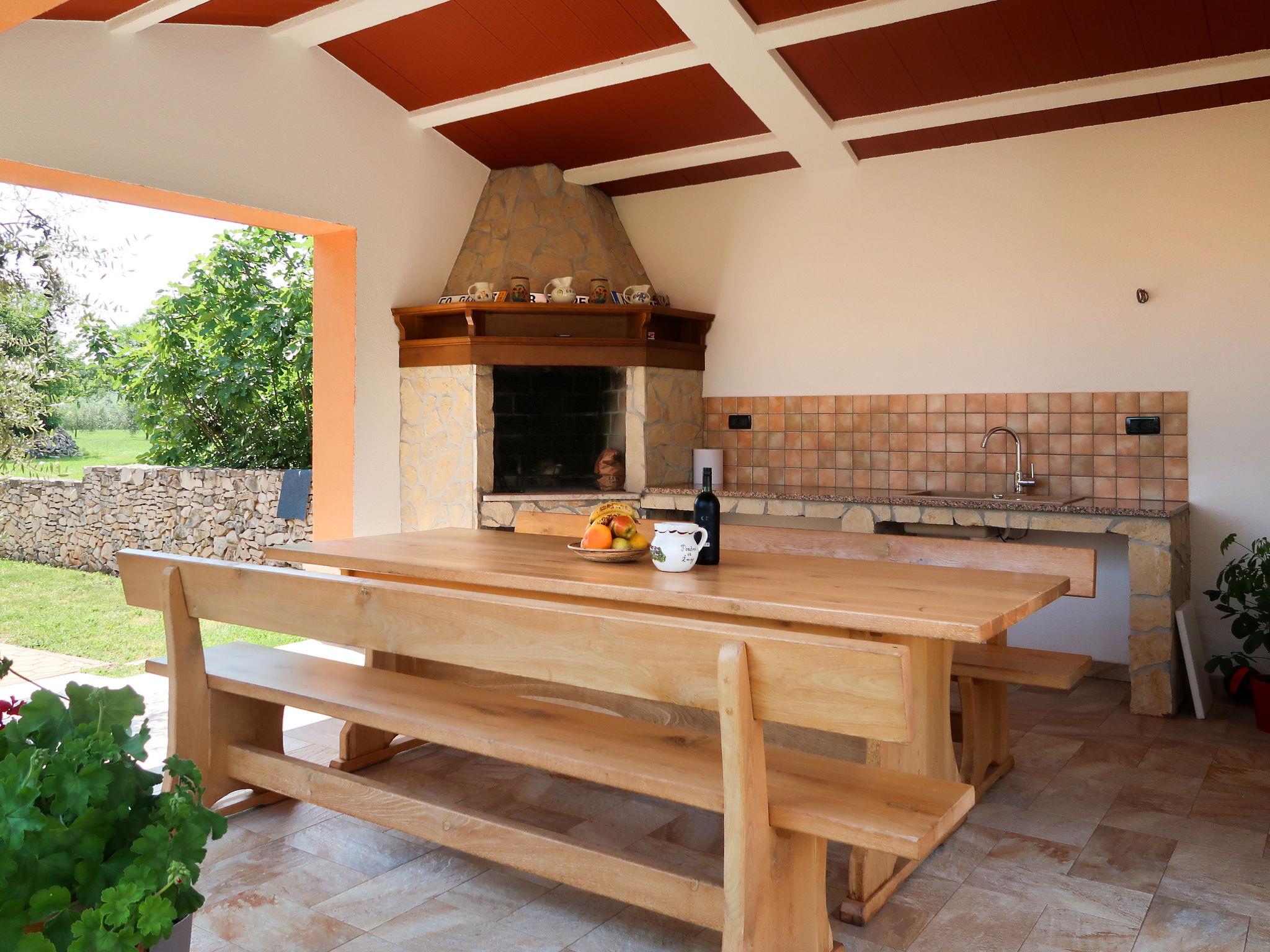 Apartment house "Martina & Rosa". 800 m from the centre of Rakalj, 3 km from the centre of Krnica, 29 km from the centre of Labin, 4 km from the sea, 4 km from the beach. For shared use: property 1'400 m2 with lawn and plants, swimming pool (8 x 4 m, depth 135 cm, seasonal availability: 01.May. - 05.Oct.) with salt-electrolysis pool-cleaning system. Terrace, garden furniture, barbecue (swing). In the house: internet access. Parking on the premises. Shop 800 m, restaurant 3 km, bus stop 8.7 km, rocky beach 4 km. Marina 28 km.