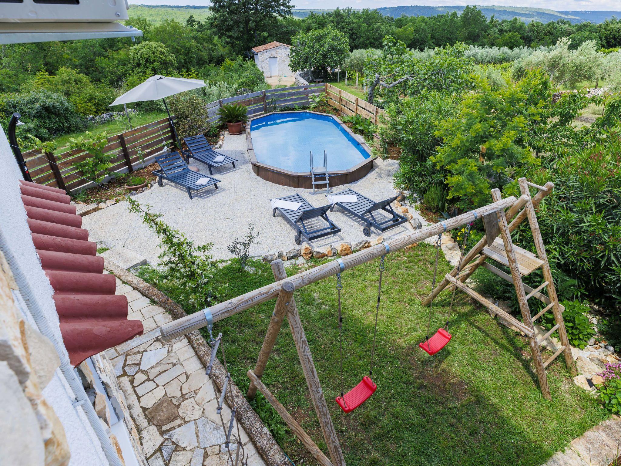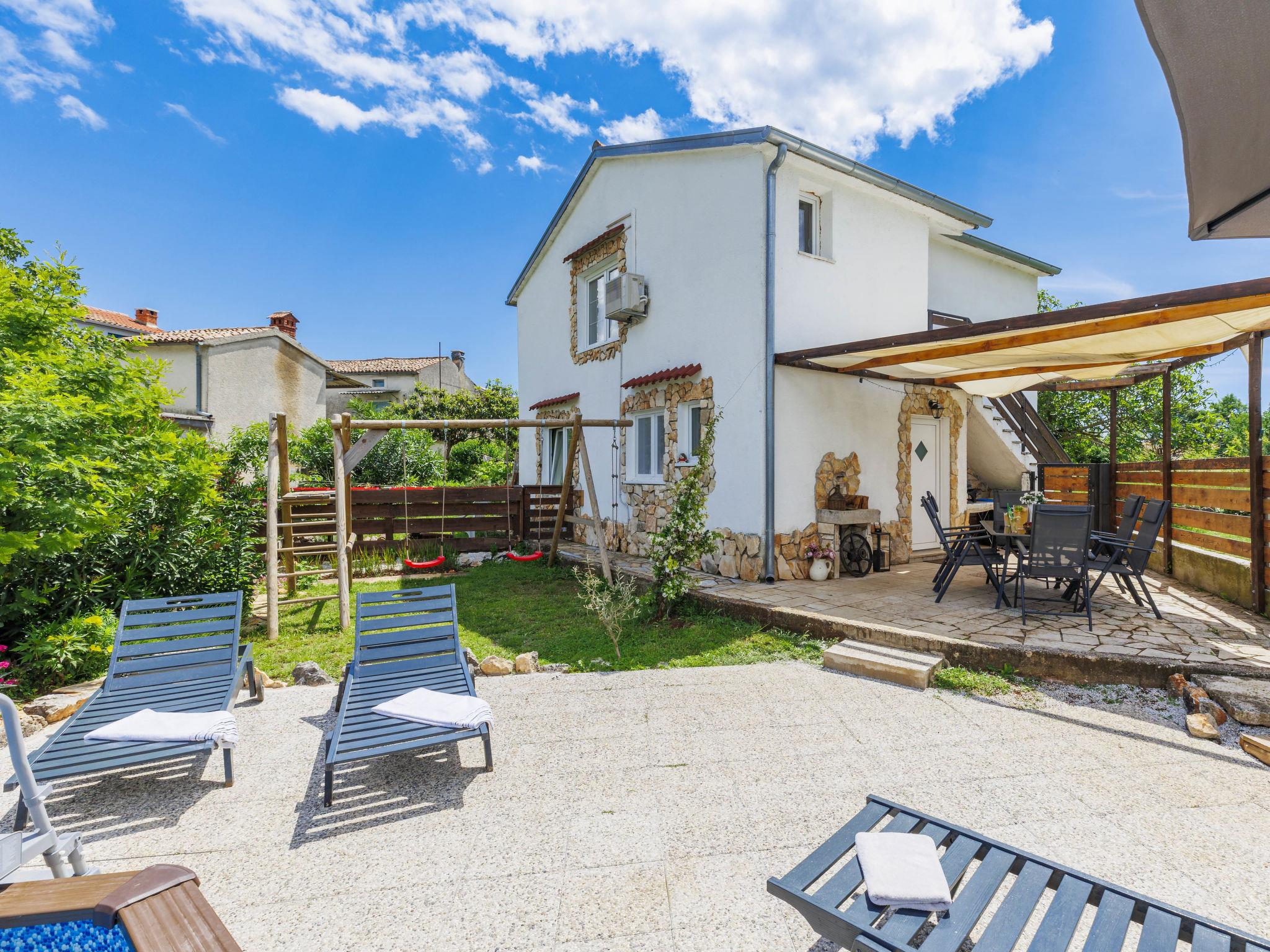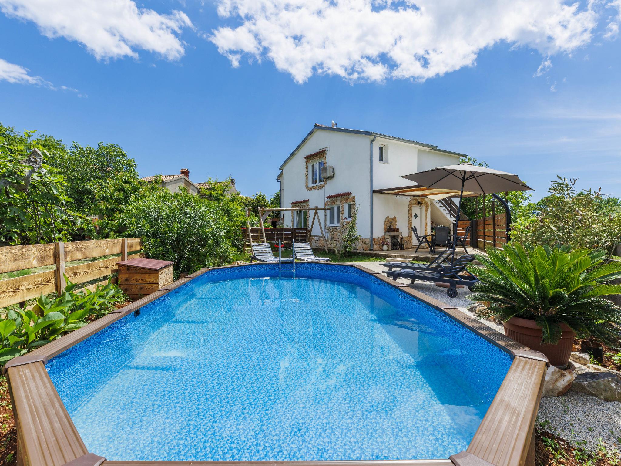 Single-family house "Mimosa", 2 storeys. In the hamlet Rakalj 25 km from the centre of Pula, 4 km from the sea, 4 km from the beach. Private: property 300 m2 with wildlife garden, swimming pool (above ground) (20 m2, depth 120 cm, seasonal availability: 01.May. - 01.Oct.). Terrace, garden furniture, barbecue, pool maintenance by the owner/gardener. In the house: internet access, washing machine. Parking (for 3 cars) at the house on the premises. Shop 1 km, restaurant 1 km, bus stop 8.9 km, pebble beach 4 km.