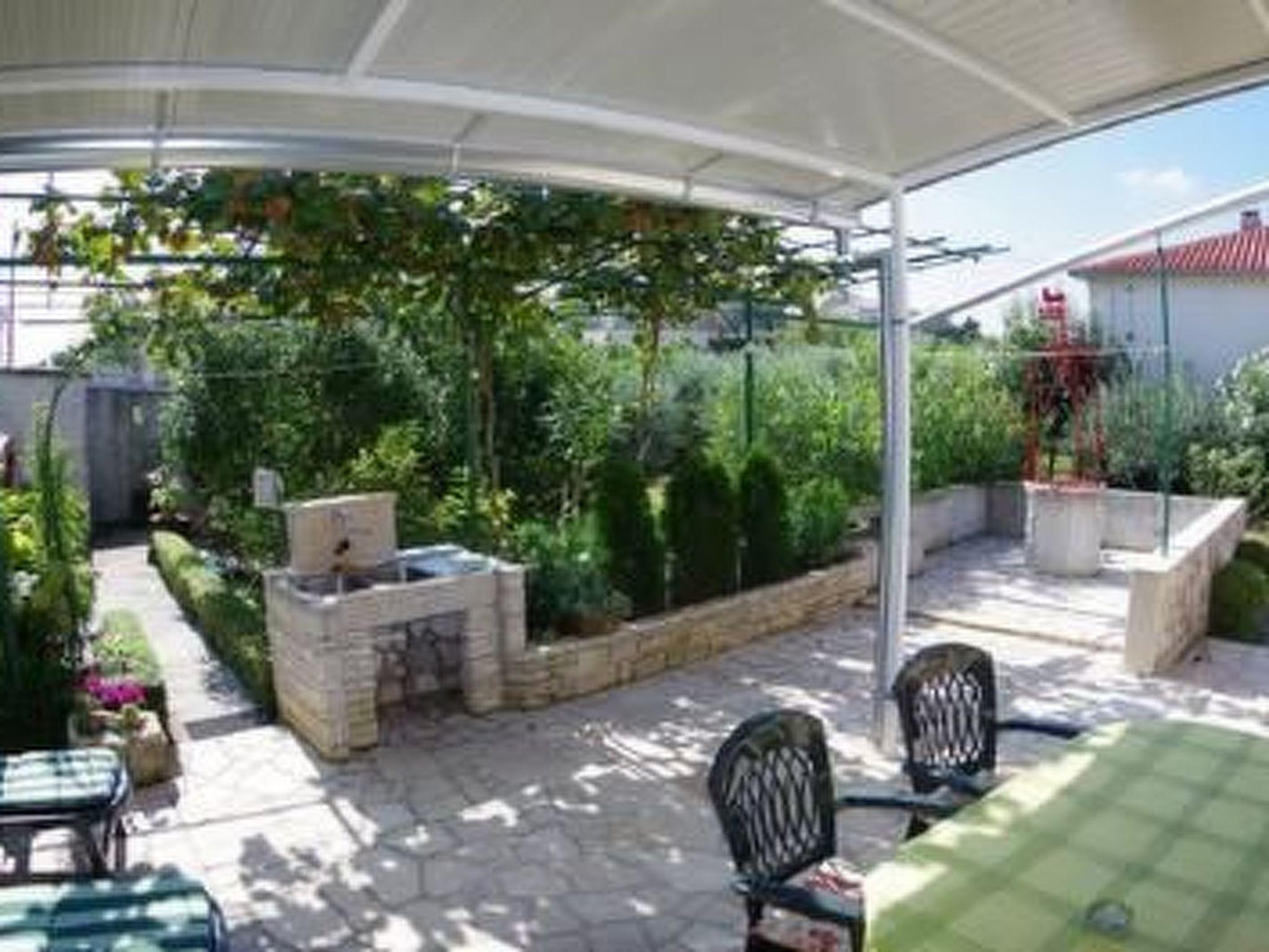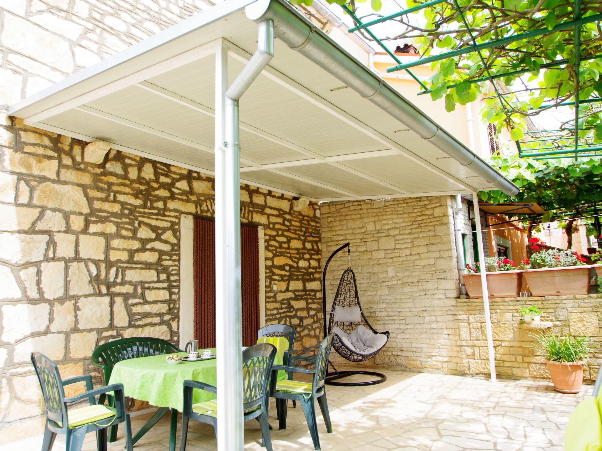 Step outside to a fenced backyard sprawling over 500 m2, dotted with olive trees. This private oasis comes equipped with barbecue facilities and garden furniture, offering the perfect setting for al fresco dining and leisure under the Istrian sun. The gardened terrain and the provision of private parking underscore the thoughtful touches that cater to a seamless stay.