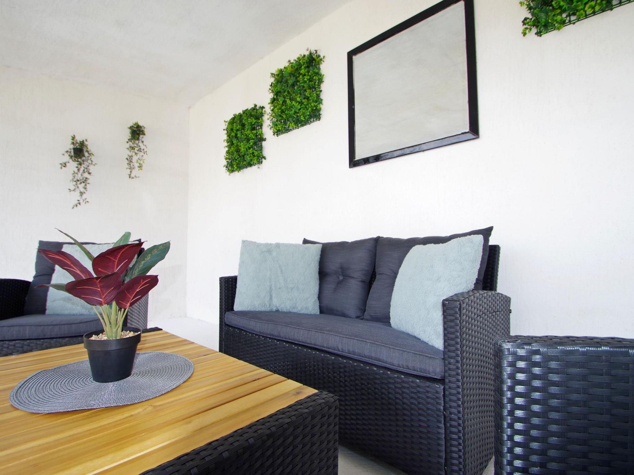 Living room with 2 couches ( each can become a sleeping couch) with exit to the big terrace, dinning area, kitchen ( 4 cooking rings: 3 gas + 1 electrical, coffee machine, refrigerator with freezing section, oven, air- extractor), bathroom ( shower, wash basin, wc, washing machine )balcony with sitting furniture.