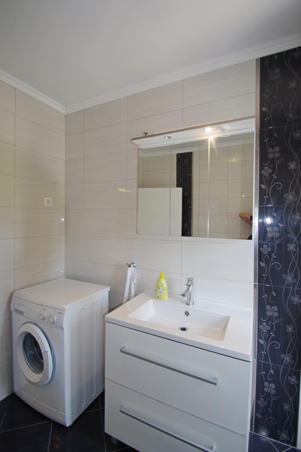 Living room with 2 couches ( each can become a sleeping couch) with exit to the big terrace, dinning area, kitchen ( 4 cooking rings: 3 gas + 1 electrical, coffee machine, refrigerator with freezing section, oven, air- extractor), bathroom ( shower, wash basin, wc, washing machine ) balcony with sitting furniture.