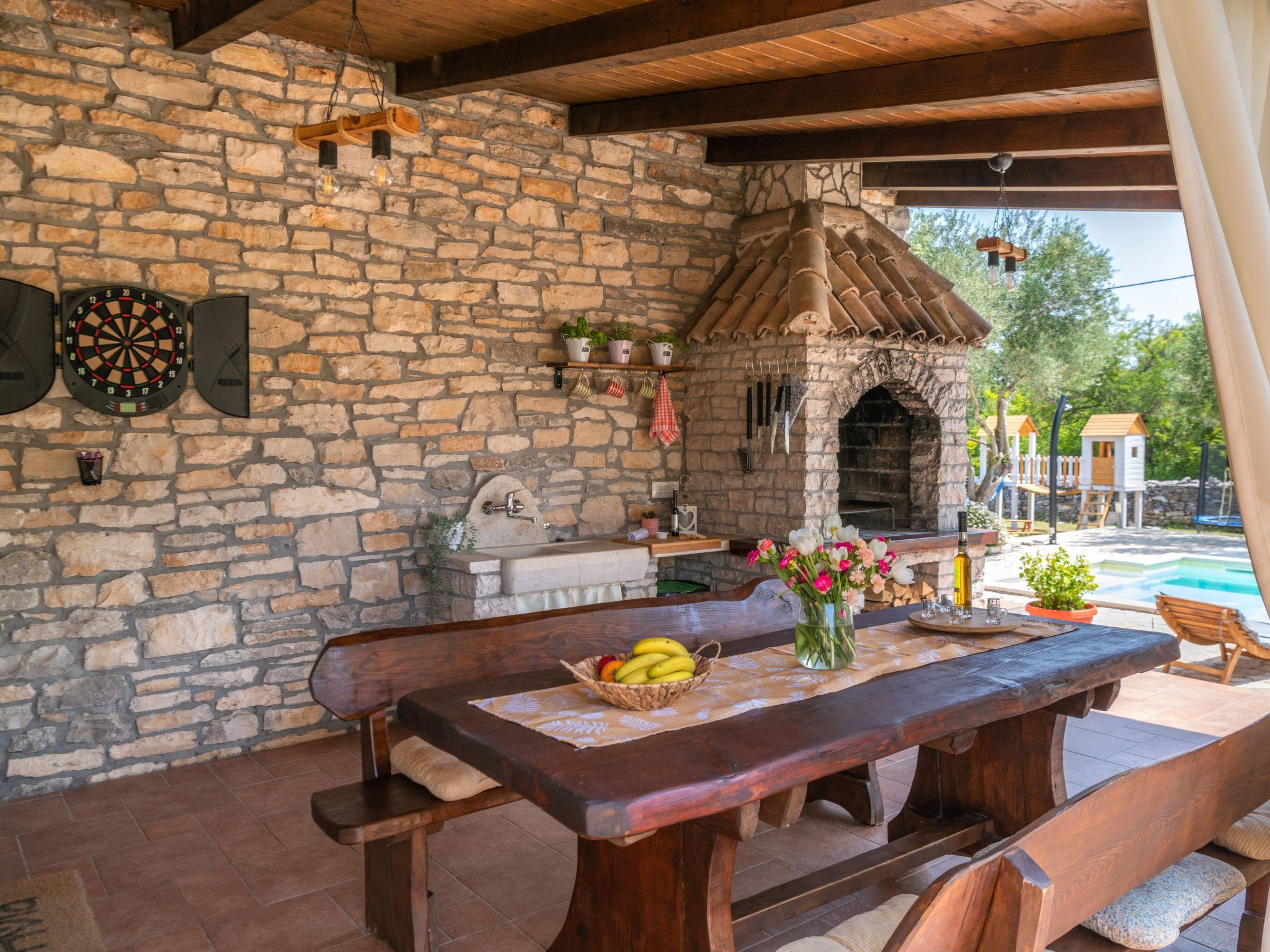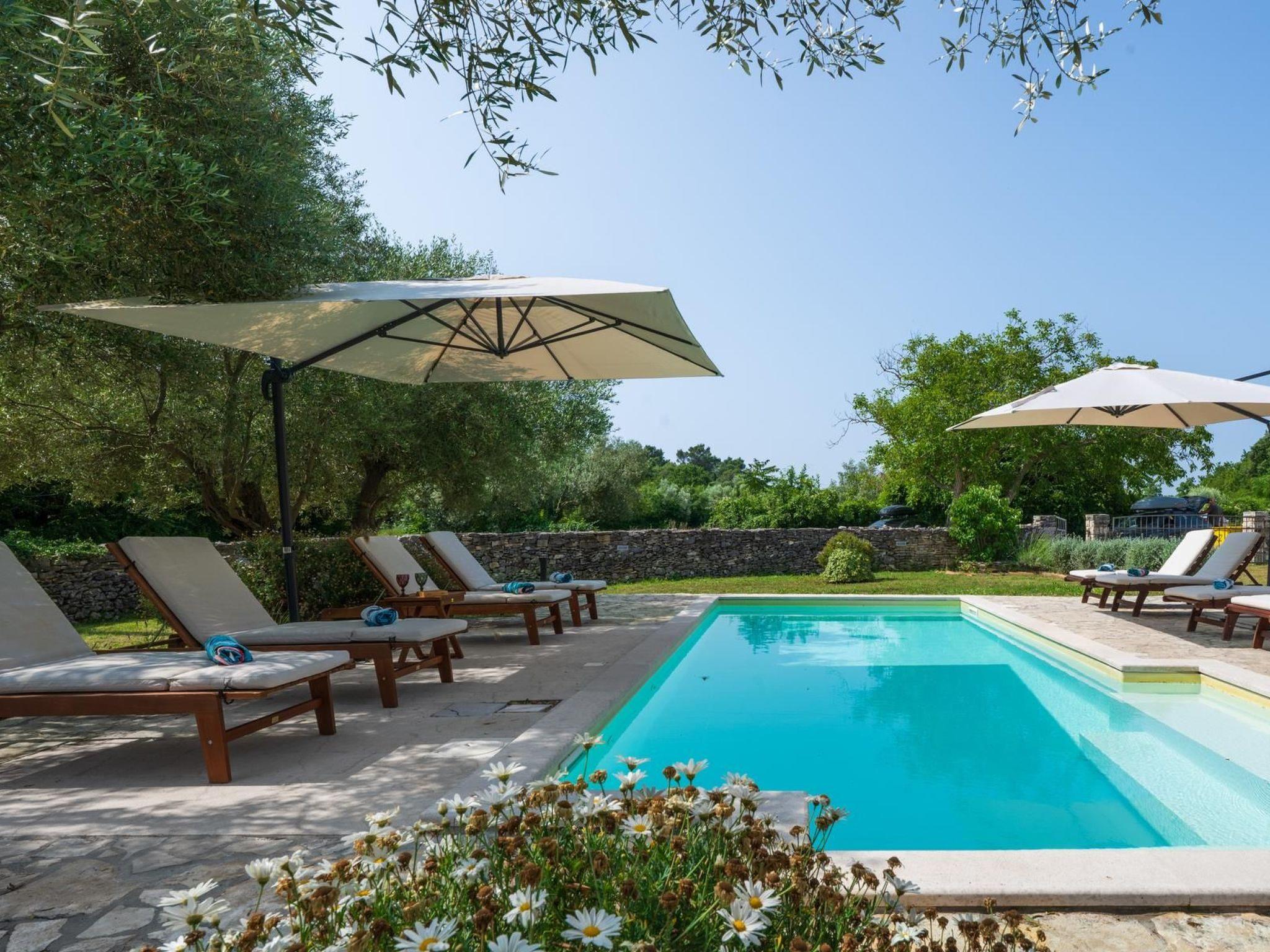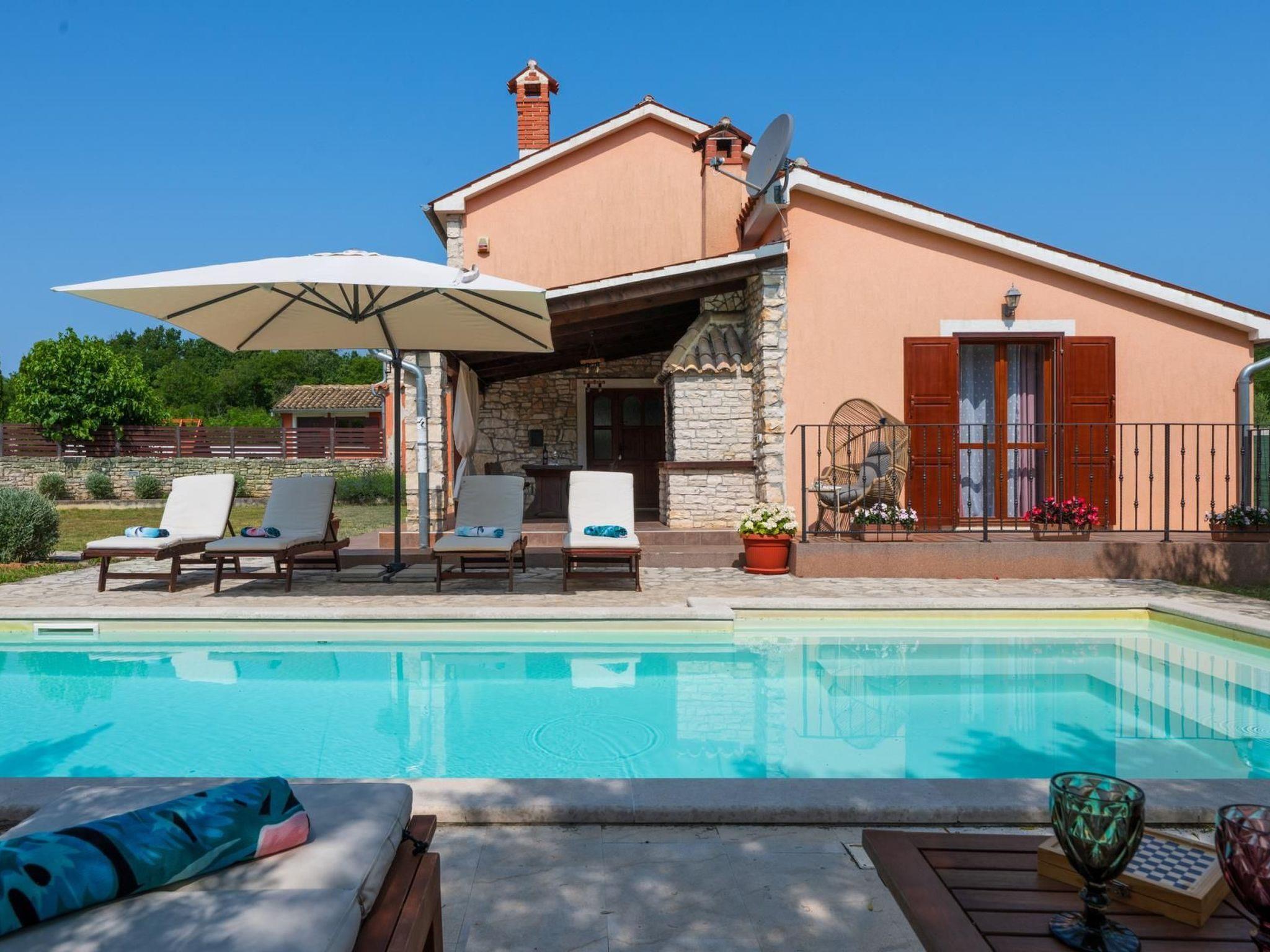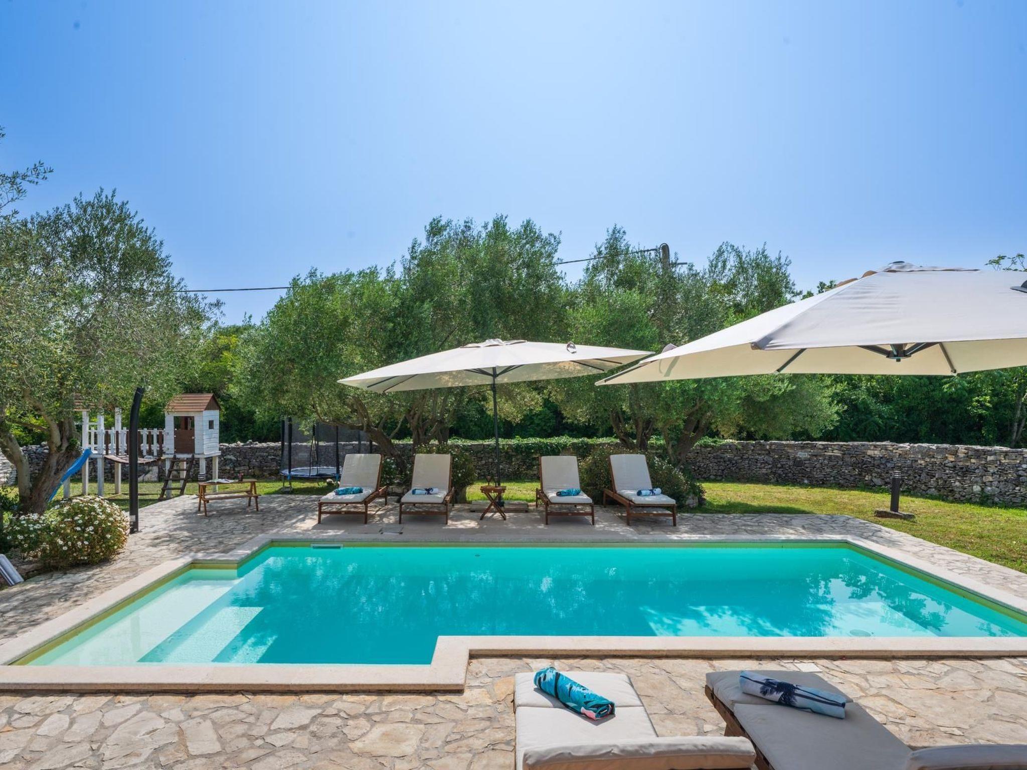 Facilities: private pool ( 27m2), air condition on both floors, Wi-Fi, parking, grill, children playground ( swings and trampoline) outdoor shower, sun beds and sun umbrellas by the swimming pool, baby cot.