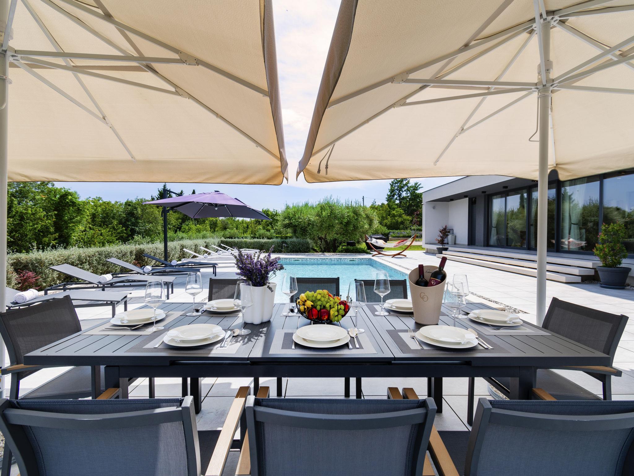 Picture yourself lounging by the shimmering outdoor swimming pool, soaking up the warm Istrian sun on comfortable sun loungers, or savoring delectable meals prepared on the BBQ facilities with a dining area – all at your disposal to create unforgettable memories with your loved ones.