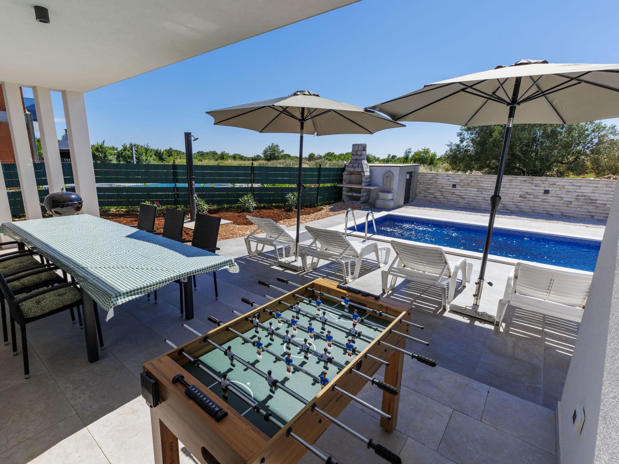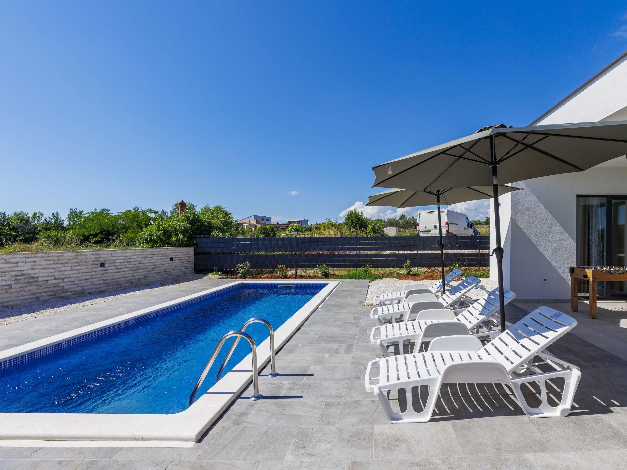 Vodnjan 7 km from Pula: Villa "Romeo". 1 km from the centre of Vodnjan, 10 km from the centre of Pula, in a sunny position, 6 km from the sea. Private: property 510 m2 (fenced), garden, swimming pool angular (8 x 3 m, depth 140 cm, seasonal availability: 01.May. - 01.Oct.) with salt-electrolysis pool-cleaning system. Outdoor shower, pool maintenance by the owner/gardener. In the house: internet access, air conditioning, washing machine. Parking (for 3 cars) at the house on the premises. E-charging station. Supermarket 400 m, restaurant 600 m, bus stop 750 m, pebble beach 6 km. By groups of young people double deposit is requested on arrival.