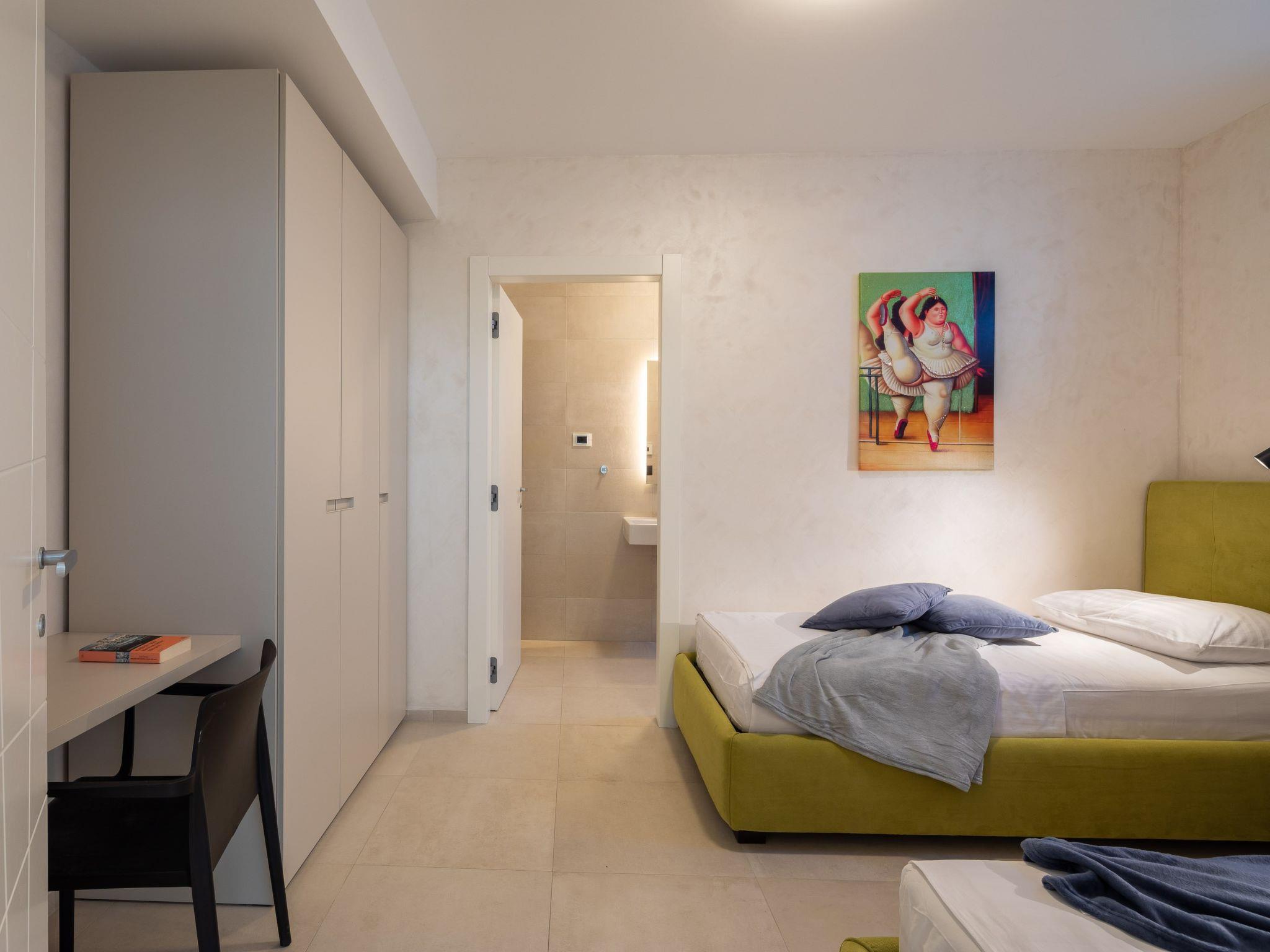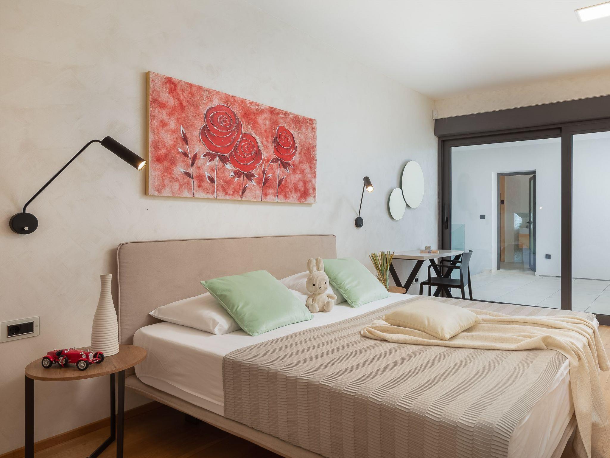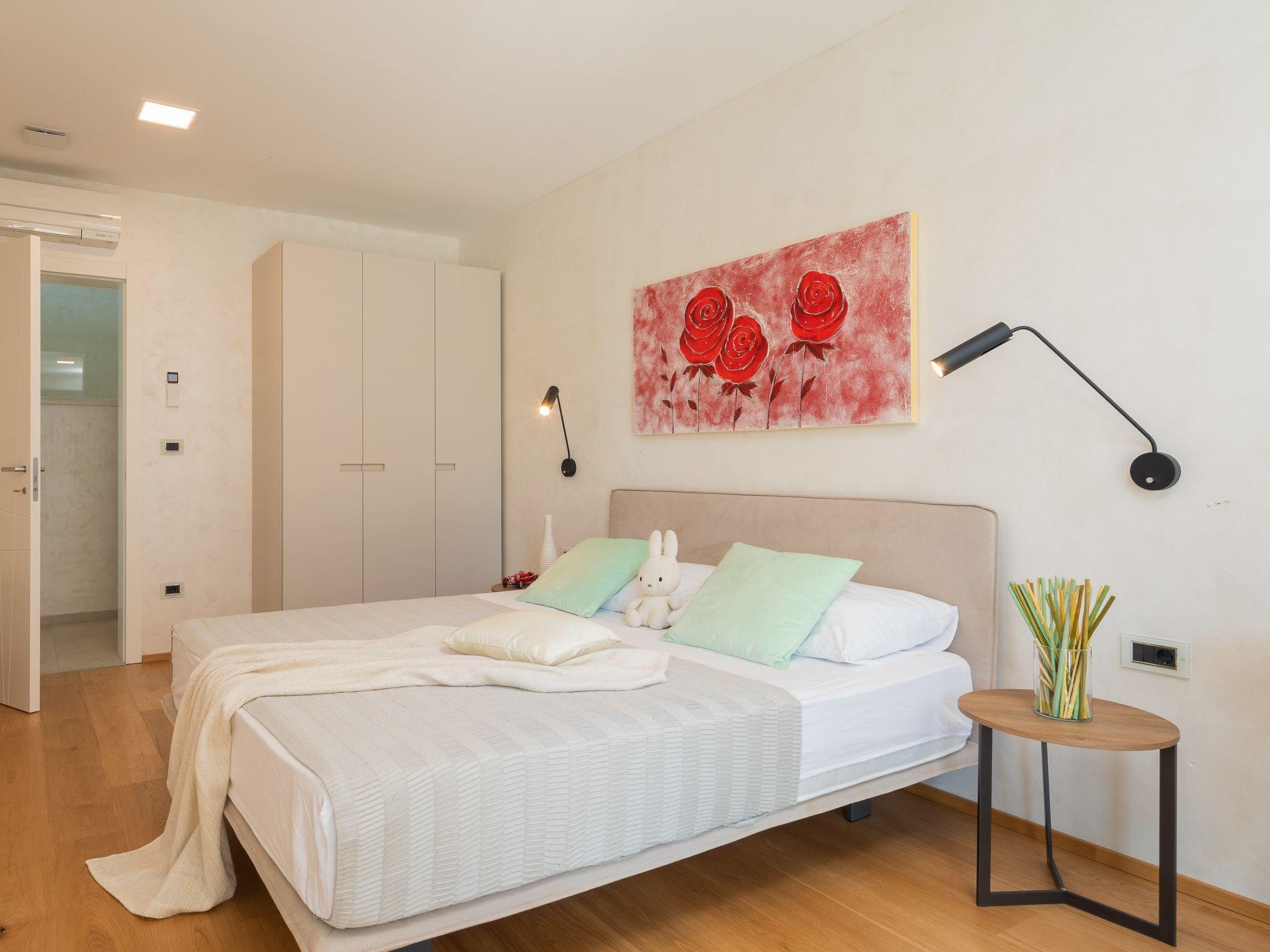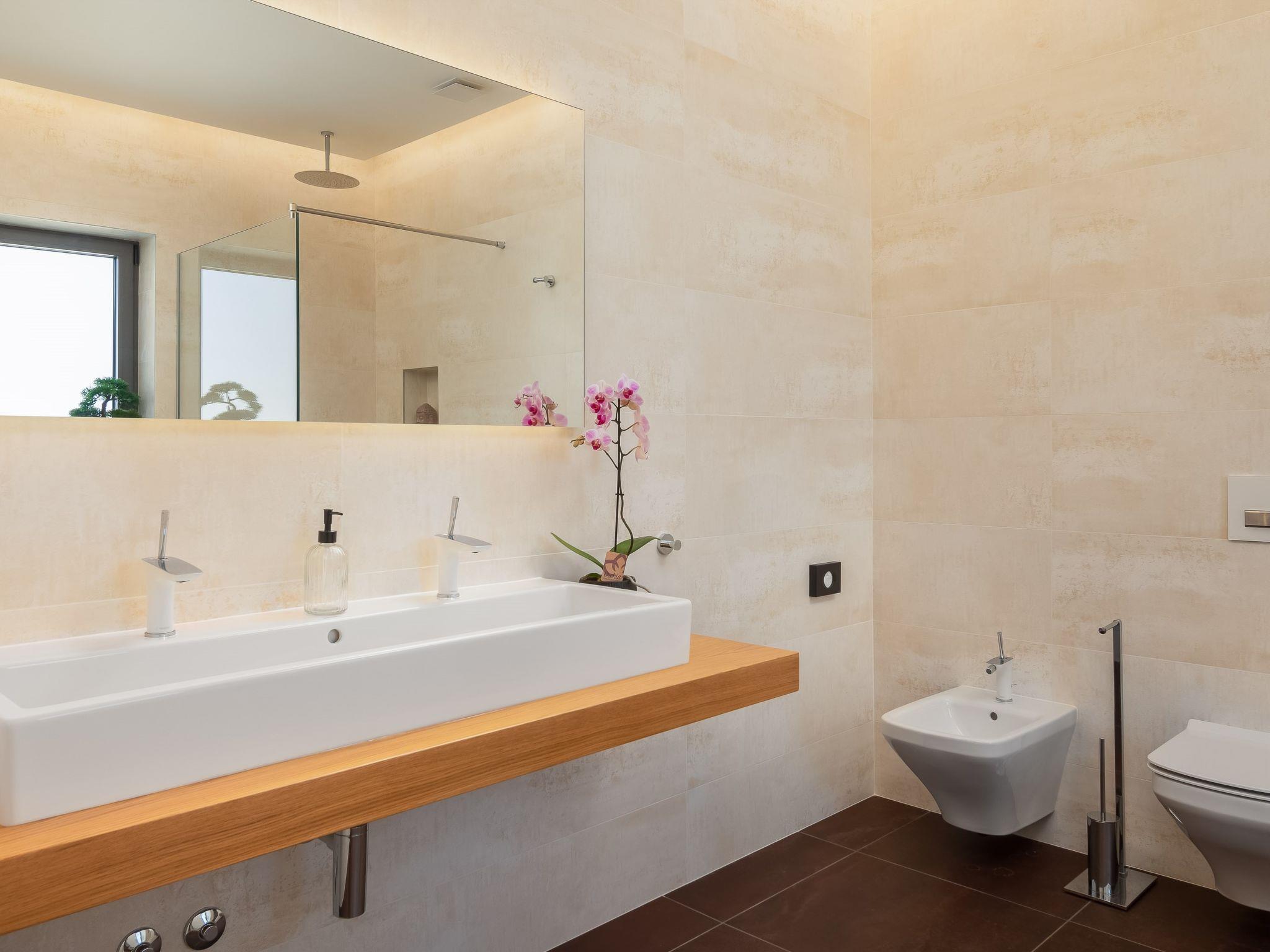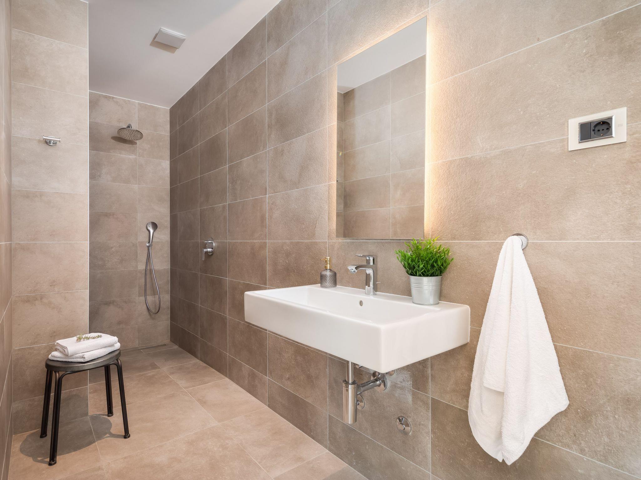 Vodnjan: Modern villa "Old Olive VIII", 3 storeys. In the hamlet Salvela 1 km from the centre of Vodnjan, 7 km from the centre of Fažana, 10 km from the centre of Pula, in a sunny position, 7 km from the sea. Private: property 1'000 m2 (fenced), garden with wildlife garden and trees, swimming pool (65 m2, depth 30 - 140 cm, seasonal availability: 01.Mar. - 01.Nov.) with internal staircase. Unconventional pool shape. Outdoor shower, hot tub, barbecue. In the house: internet access, sauna, table tennis, billiard table, table football, washing machine, tumble dryer. Parking (for 3 cars) at the house on the premises. Shop 1 km, supermarket 1 km, restaurant 1.5 km, bus stop 1.3 km, pebble beach 7 km, public bathing area 7 km. Golf course (18 hole) 7 km, tennis 2 km. Nearby attractions: NP Brijuni 7 km, Amphitheater 11 km. Groups of teenagers on request only.