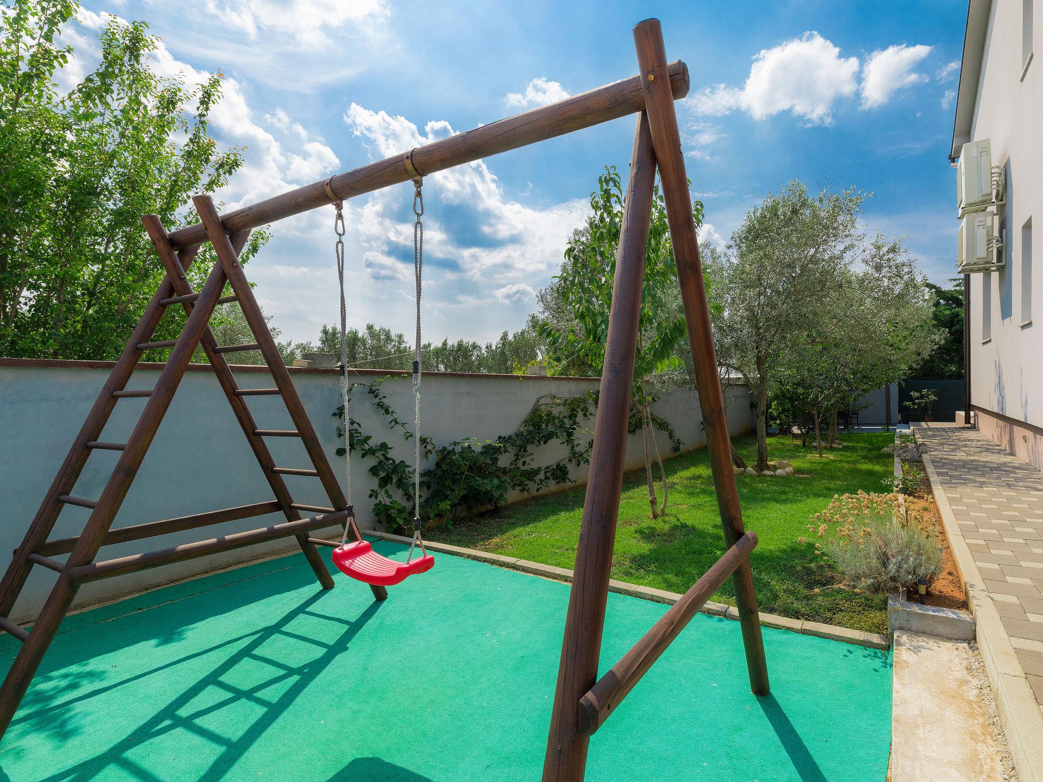 Majmajola 4 km from Vodnjan: Beautiful single-family house "Amber", 2 storeys. In a quiet, sunny position, 8 km from the sea. Private: property 570 m2 (fenced), garden, swimming pool angular (25 m2, depth 140 cm, seasonal availability: 27.Apr. - 28.Sep.). Terrace, barbecue (swing). In the house: internet access, washing machine. Parking at the house on the premises. Shop 4 km, restaurant 4 km, bus stop 3.8 km, pebble beach 8 km. Golf course (18 hole) 15 km, riding stable 15 km, walking paths from the house, cycle lane 50 m. The owner does not accept any youth groups.
