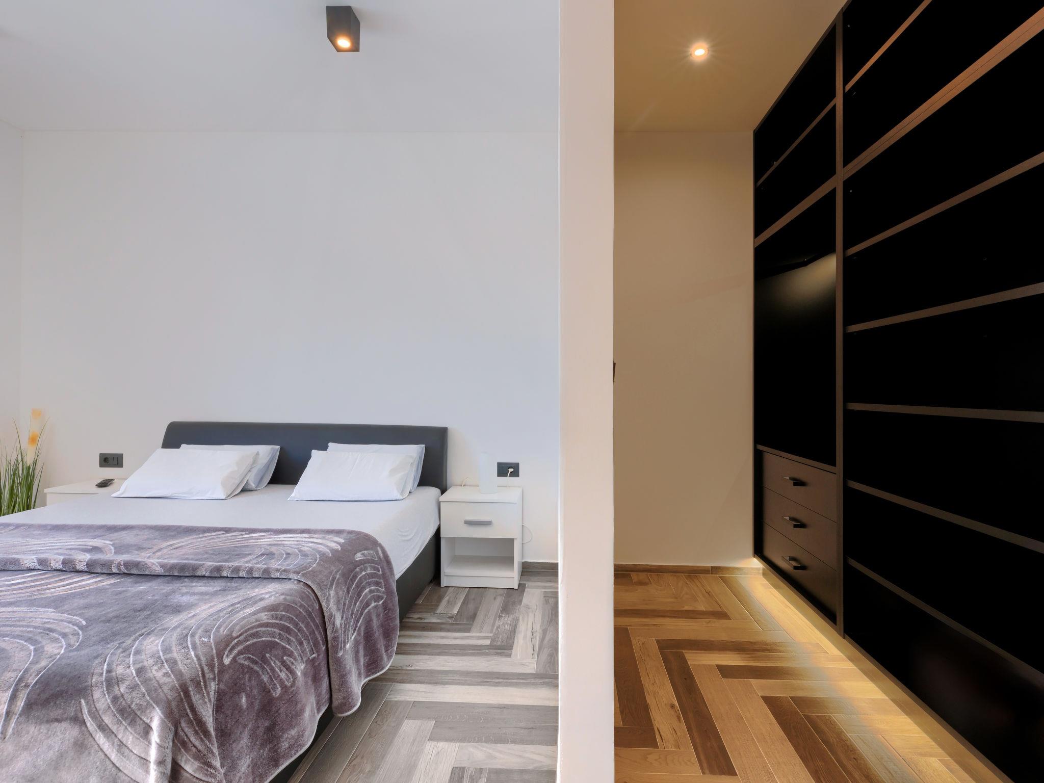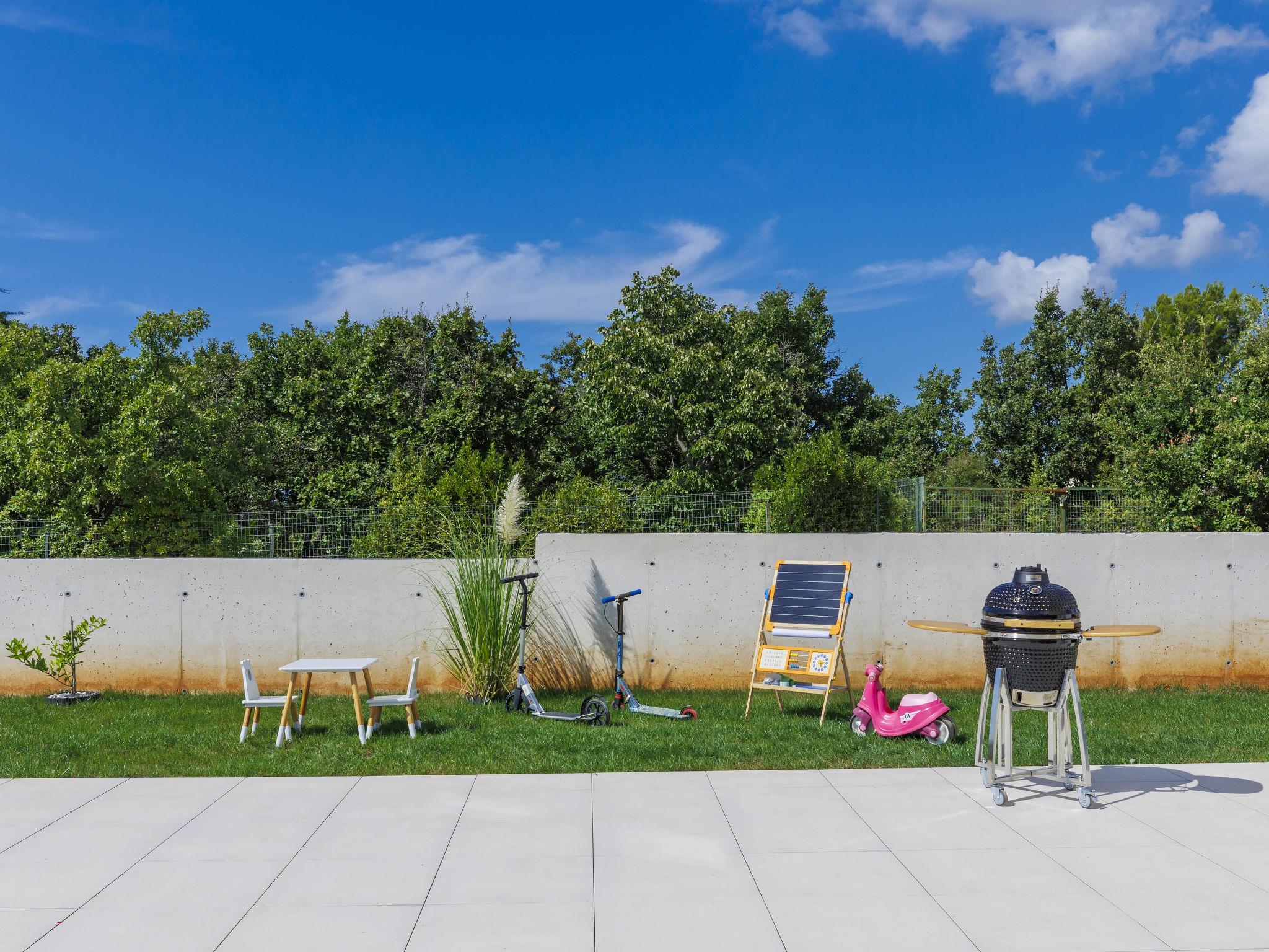 Majmajola 4 km from Vodnjan: Beautiful villa "Black&White", 2 storeys. In a quiet, sunny position, 8 km from the sea. Private: property 600 m2 (fenced), garden, swimming pool angular (8 x 4 m, depth 140 cm, seasonal availability: 01.May. - 15.Oct.). Outdoor shower, terrace (20 m2), pool maintenance by the owner/gardener. In the house: internet access, central heating system, air conditioning, washing machine. Parking at the house on the premises. Shop 4 km, restaurant 4 km, bus stop 3.6 km, pebble beach 8 km, rocky beach 8 km. Golf course (18 hole) 15 km, riding stable 15 km, walking paths from the house, cycle lane 50 m. The owner does not accept any youth groups.