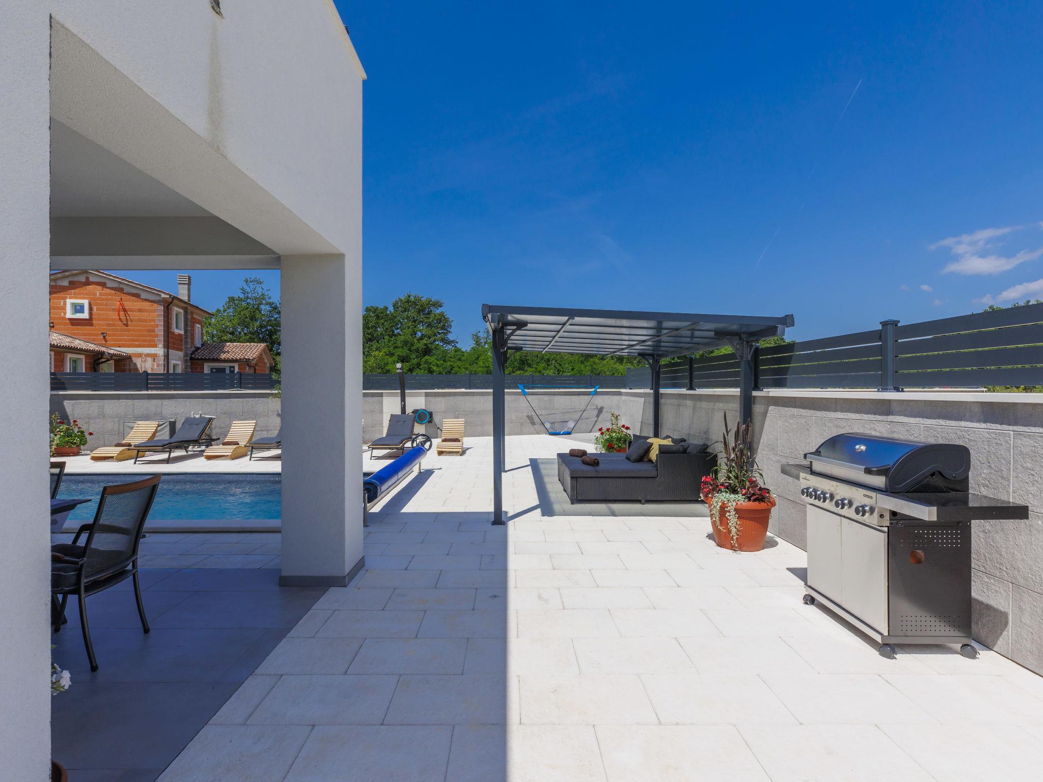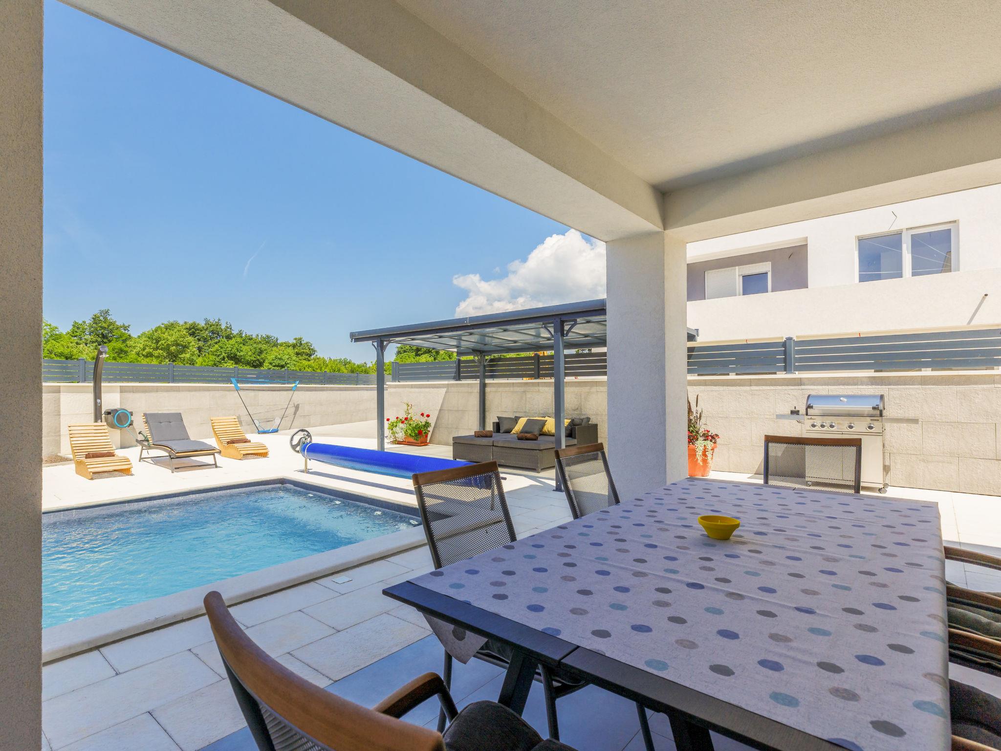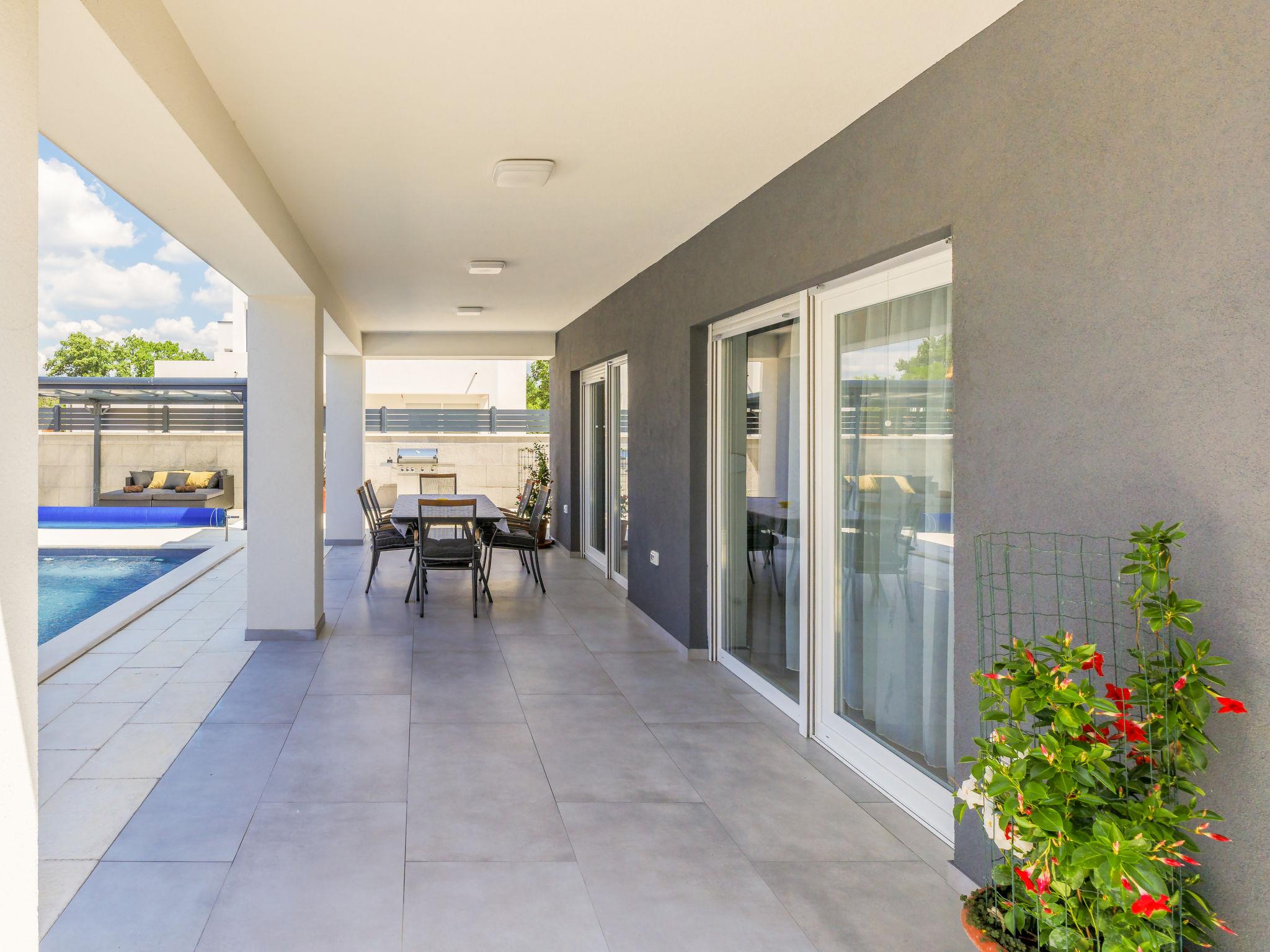 Modern villa "Drago", 2 storeys. In the hamlet Kacana 4 km from the centre of Vodnjan, 15 km from the centre of Pula, in a sunny position, 10 km from the sea. Private: property 500 m2 (fenced) with wildlife garden and flowers, swimming pool angular, heated (8 x 4 m, depth 140 cm, seasonal availability: 01.Jan. - 31.Dec.) with internal staircase. WC in the pool area, outdoor shower, terrace (30 m2), garden furniture, barbecue, pool maintenance by the owner/gardener. In the house: internet access, sauna, hot tub, spa area, washing machine. Motor access to the house (300 m via unmade road). Parking (for 3 cars) at the house on the premises. Shop 4 km, restaurant 4 km, bus stop 2.8 km, pebble beach 10 km, rocky beach 10 km. Surf school 13 km, sailing school 13 km, tennis 14 km, cycle lane 100 m. Nearby attractions: amphitheater 14 km. Swimming pool heated (extra), with counterflow and hydromassage. It is necessary to announce 7 days in advance if the pool heating is required.