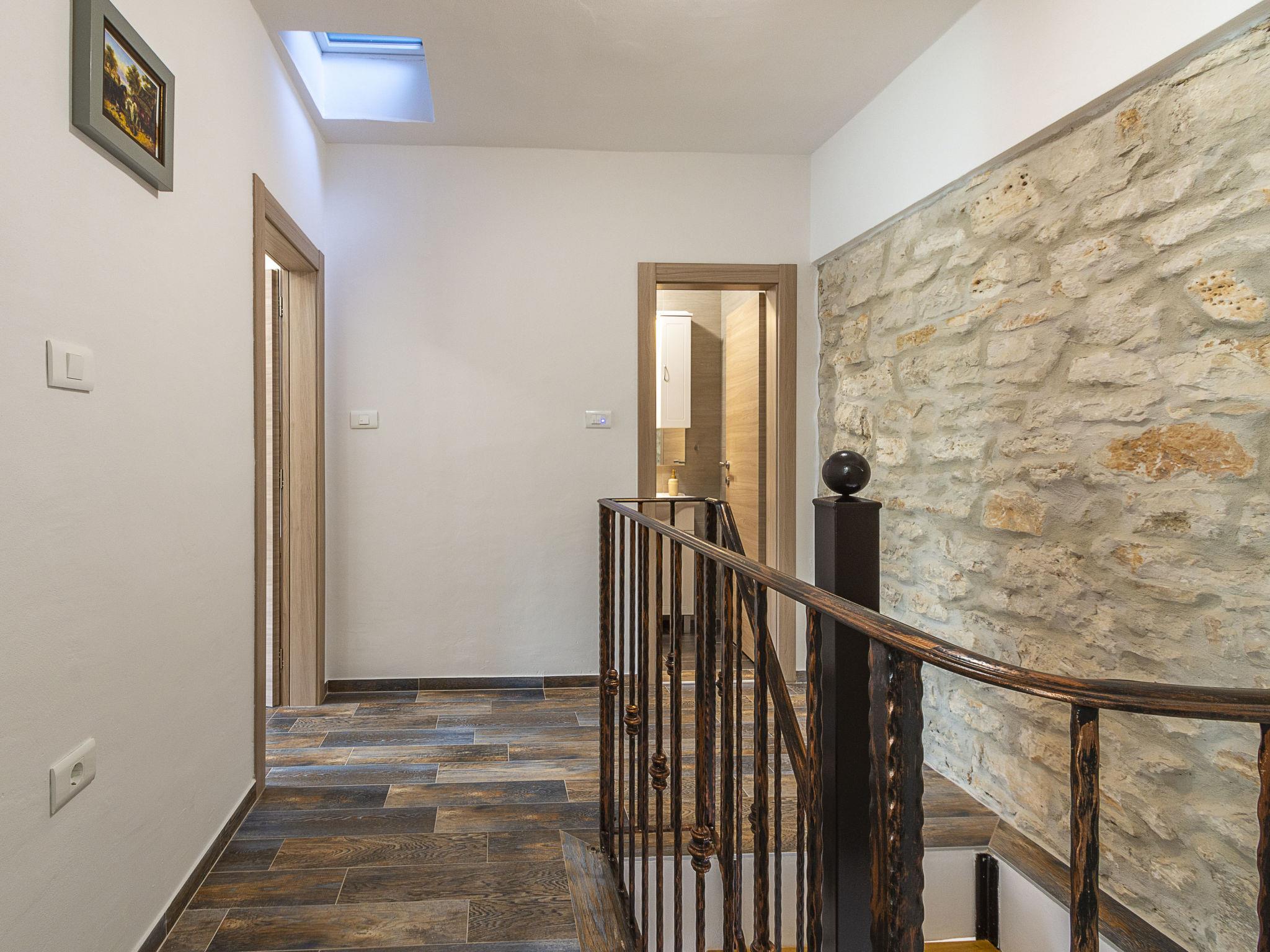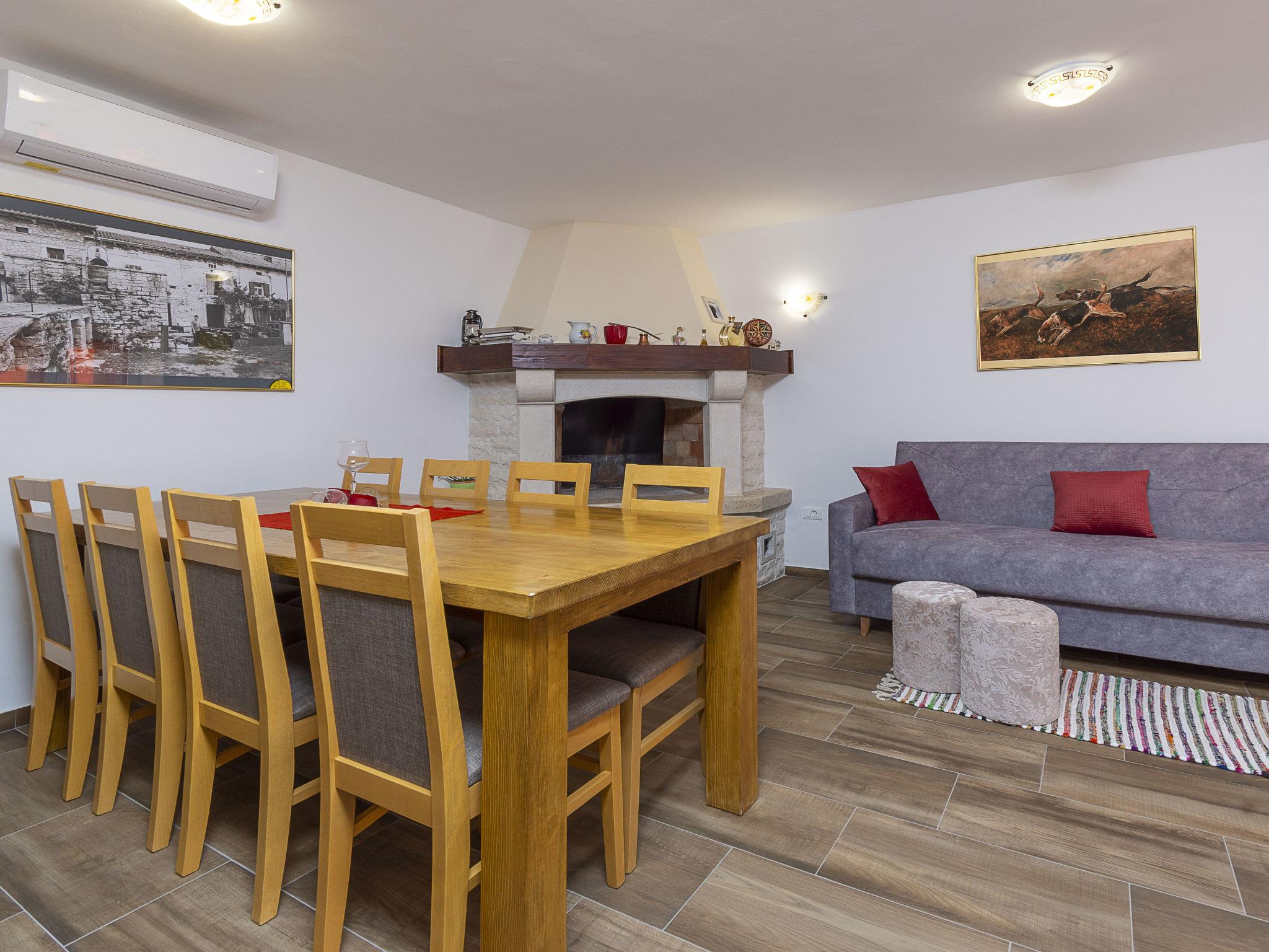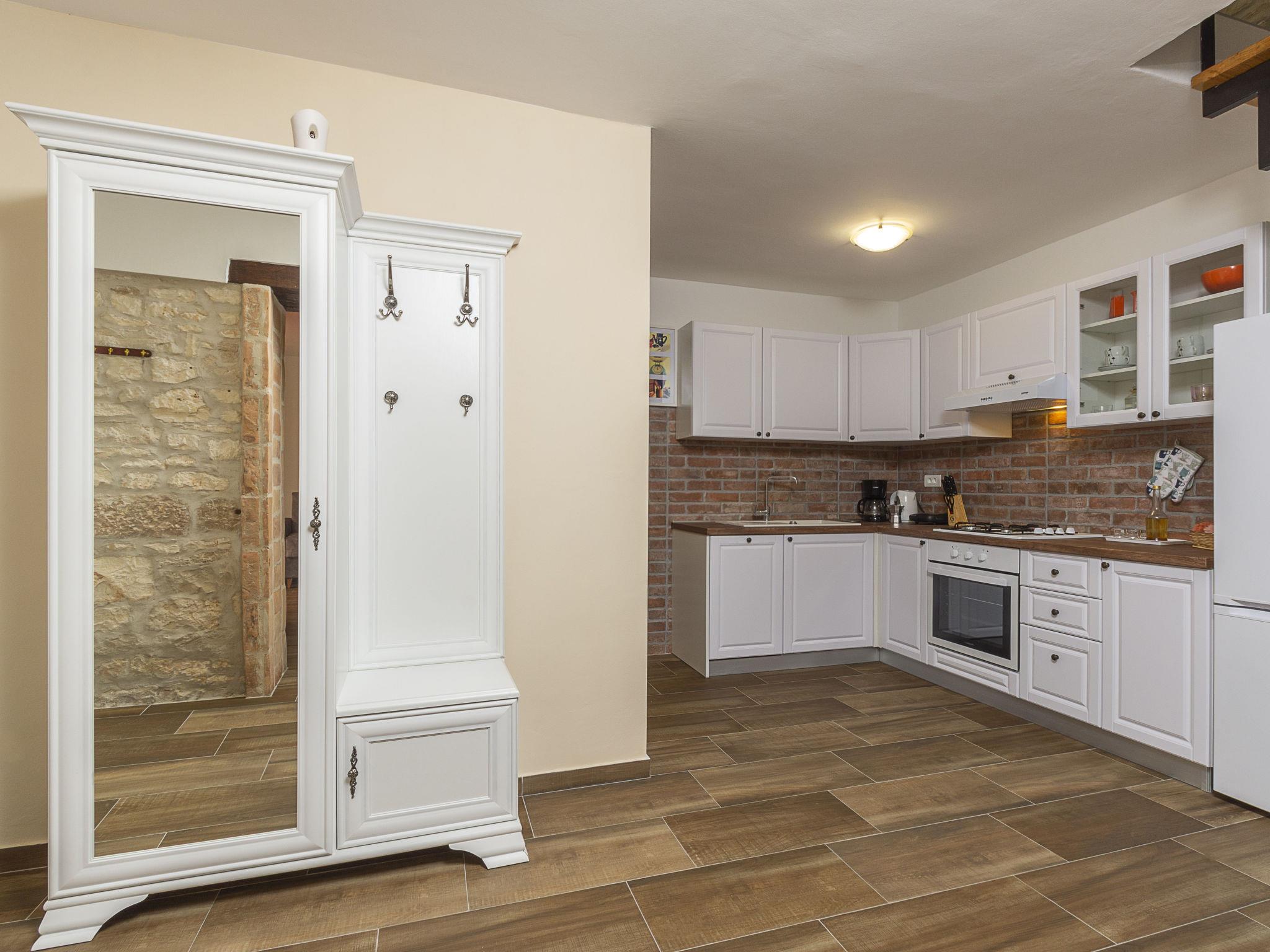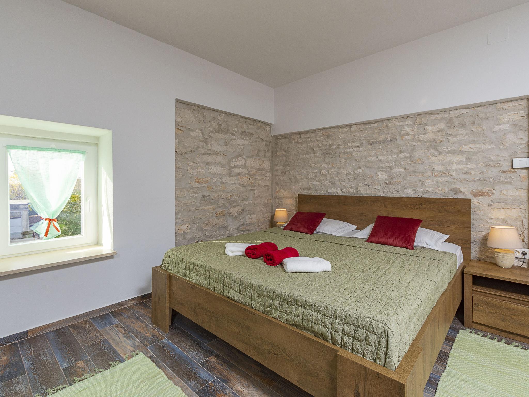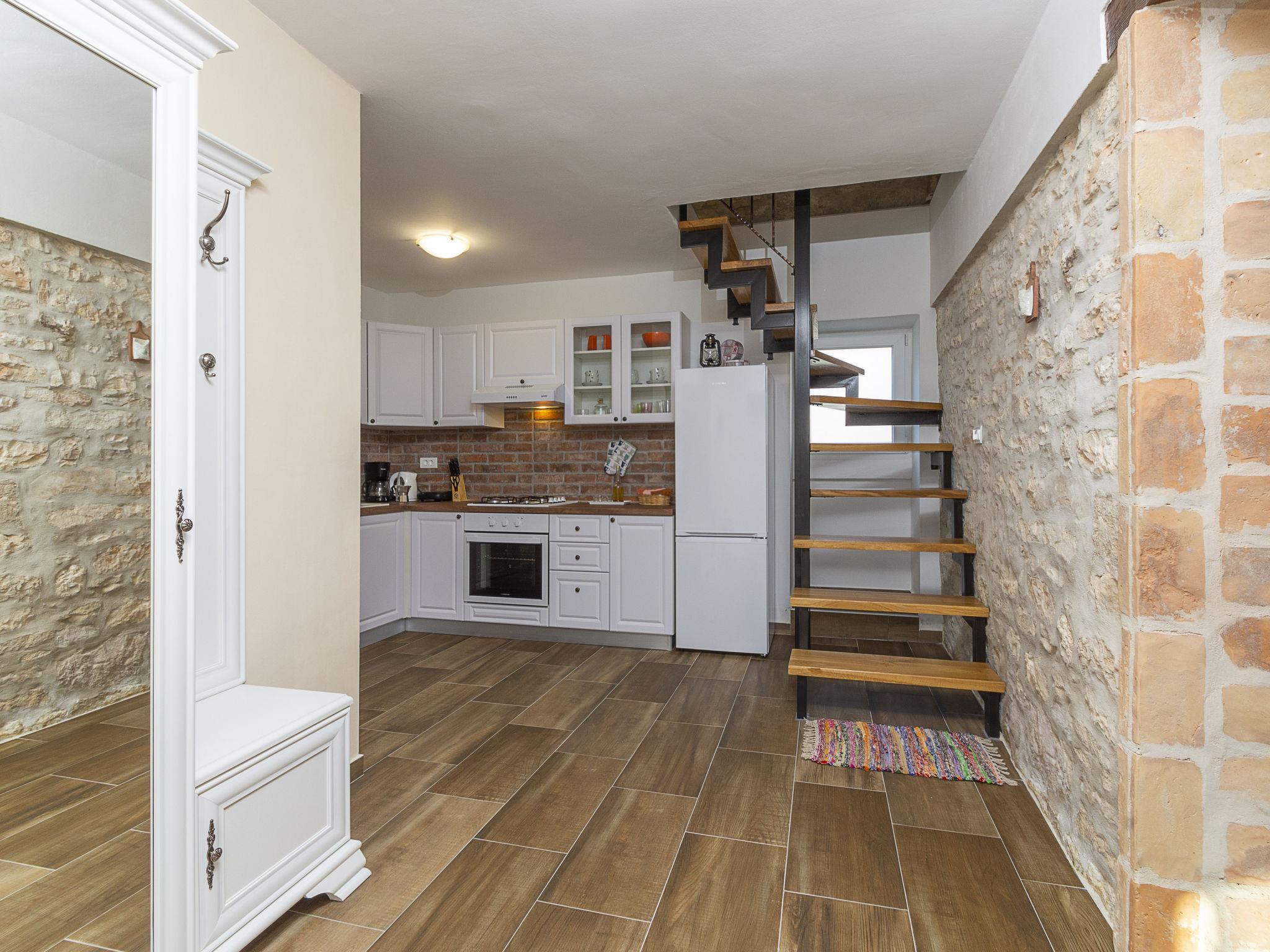Butkovici 9 km from Vodnjan: Terraced house "Butkovic", 2 storeys. 15 km from the sea. Private: property 120 m2 (fenced), swimming pool (18 m2, depth 140 cm, seasonal availability: 01.May. - 30.Sep.) with internal staircase. Unconventional pool shape. Outdoor shower, garden furniture, barbecue. In the house: internet access, table football, washing machine. Parking at the house on the premises. Shop 9 km, supermarket 9 km, restaurant 3 km, bus stop 3 km, pebble beach 15 km, rocky beach 15 km. Walking paths from the house, cycle lane 100 m.