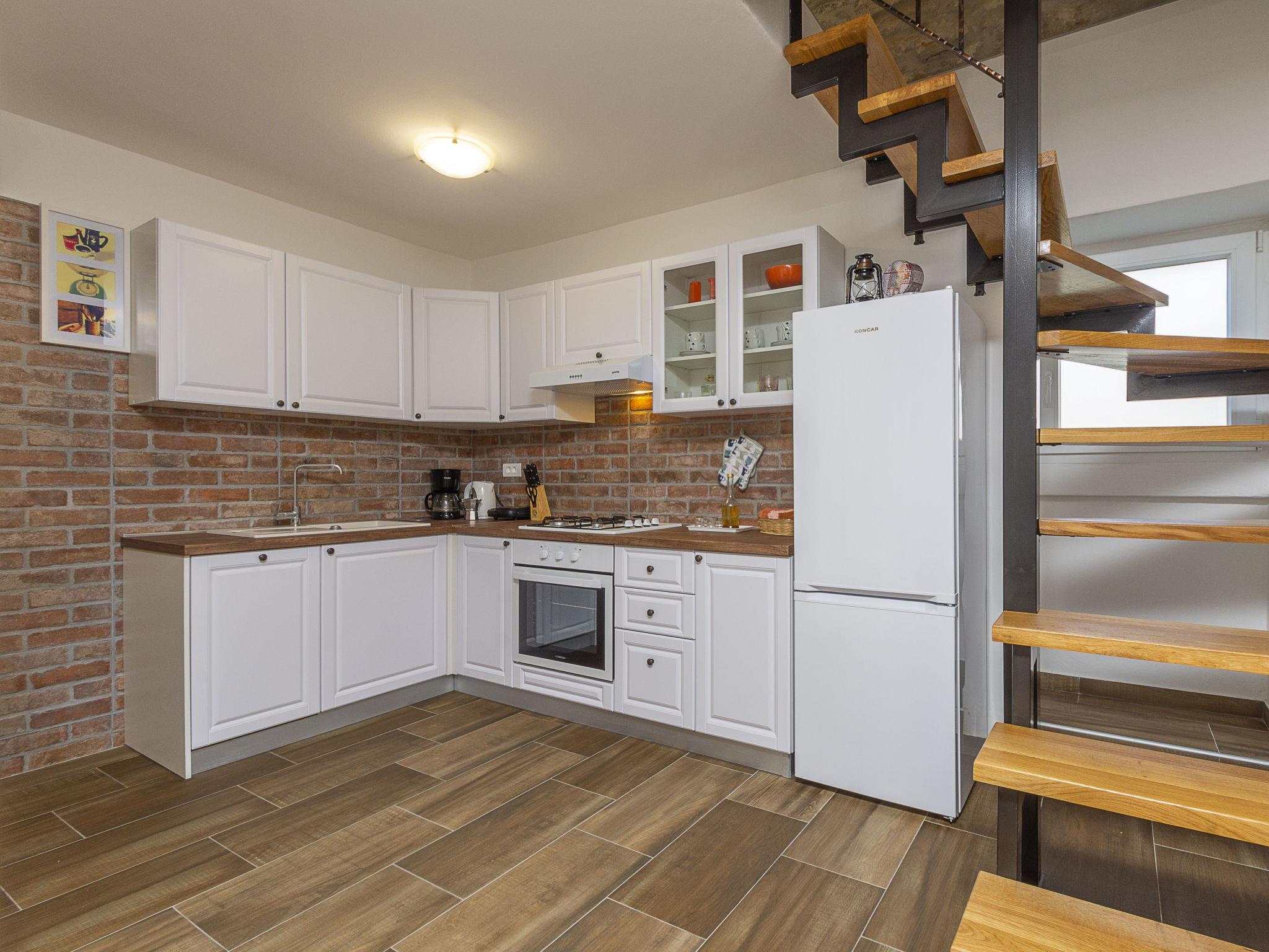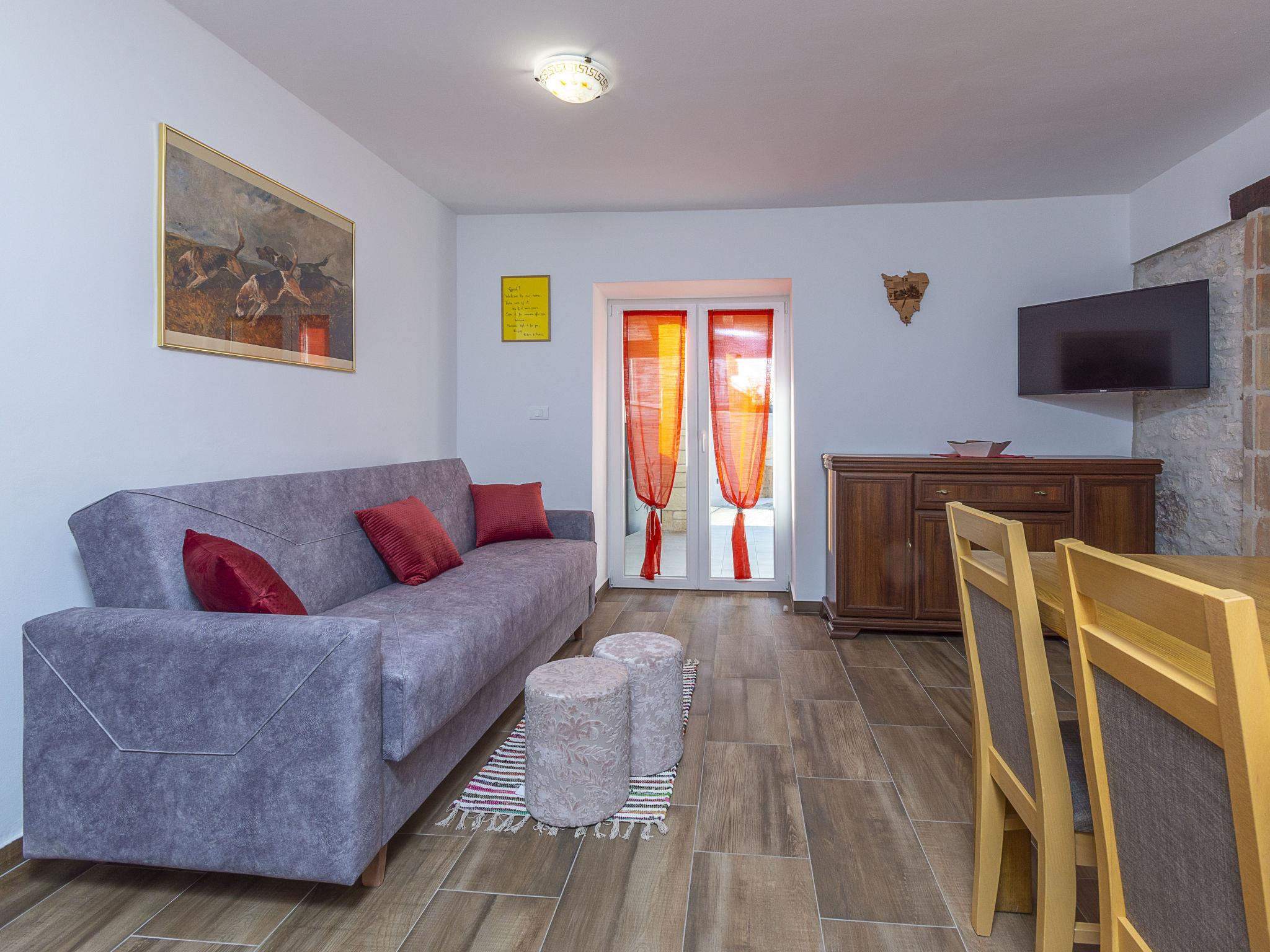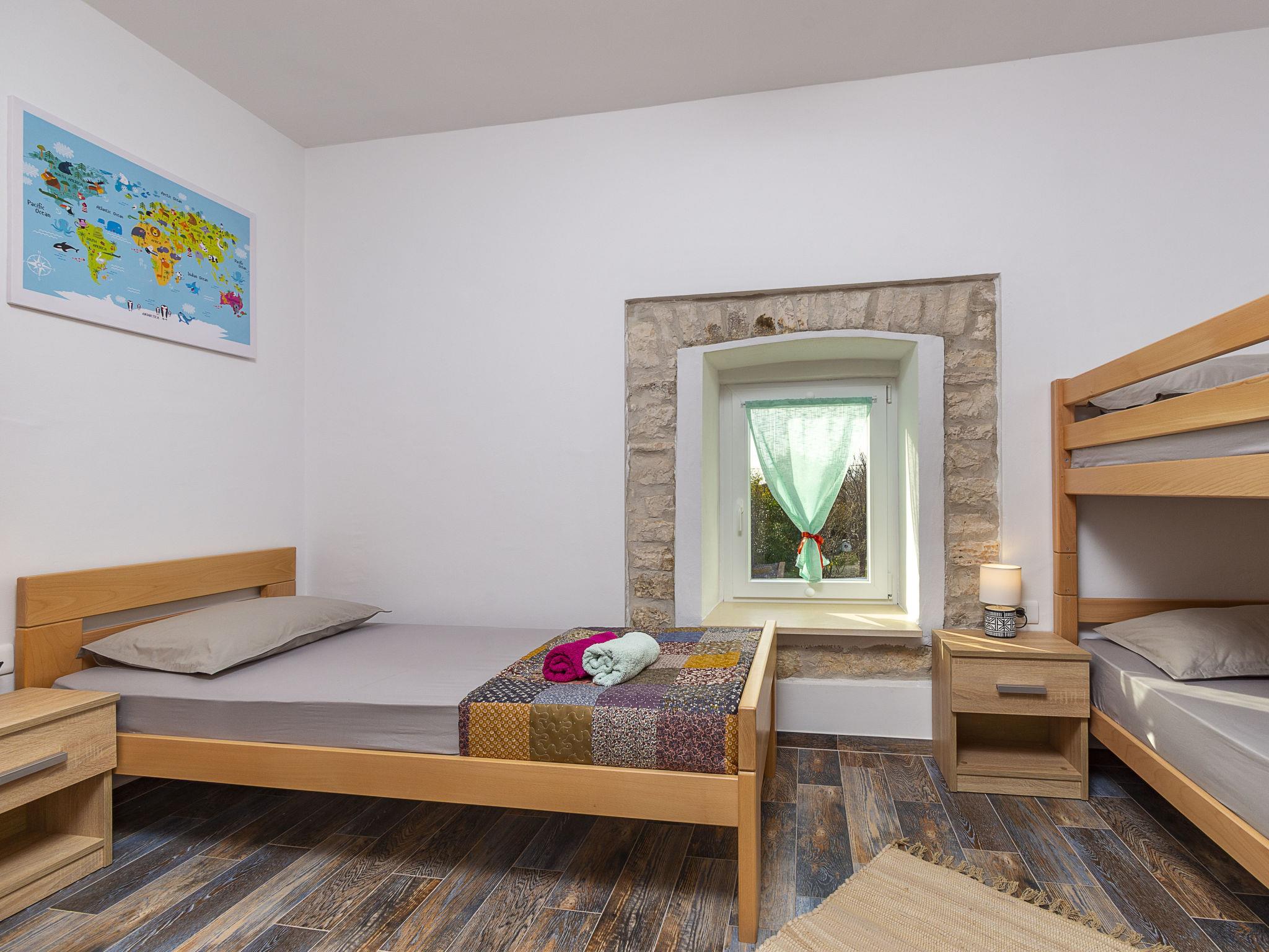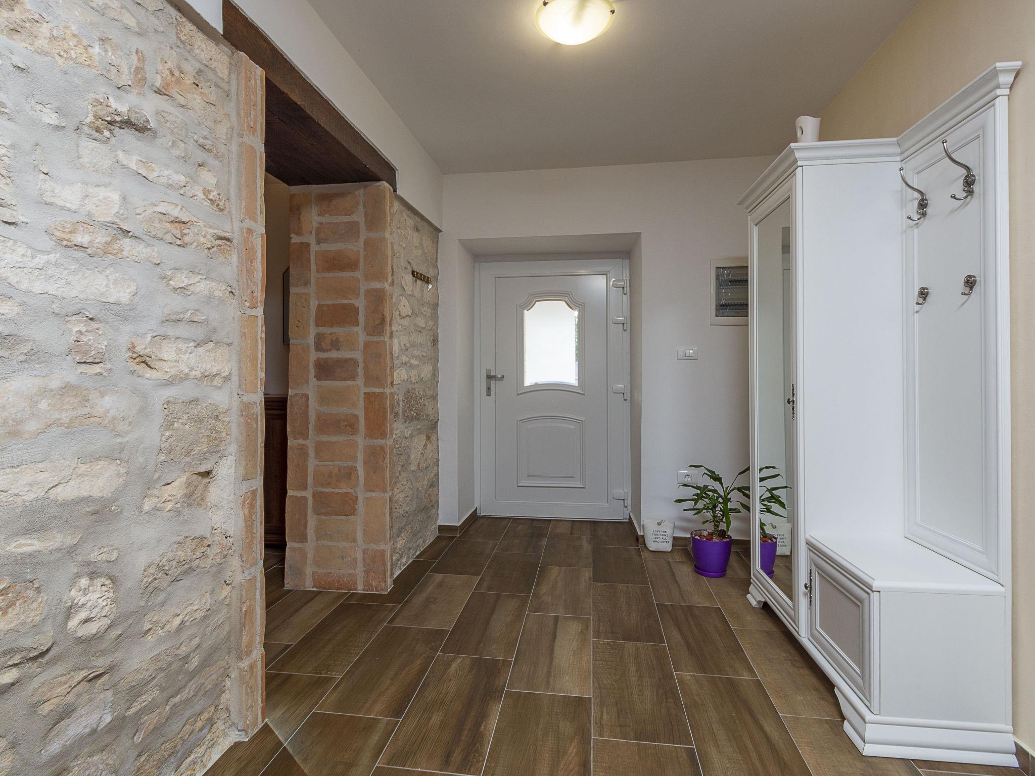 Butkovici 9 km from Vodnjan: Terraced house "Butkovic", 2 storeys. 15 km from the sea. Private: property 120 m2 (fenced), swimming pool (18 m2, depth 140 cm, seasonal availability: 01.May. - 30.Sep.) with internal staircase. Unconventional pool shape. Outdoor shower, garden furniture, barbecue. In the house: internet access, table football, washing machine. Parking at the house on the premises. Shop 9 km, supermarket 9 km, restaurant 3 km, bus stop 3 km, pebble beach 15 km, rocky beach 15 km. Walking paths from the house, cycle lane 100 m.
