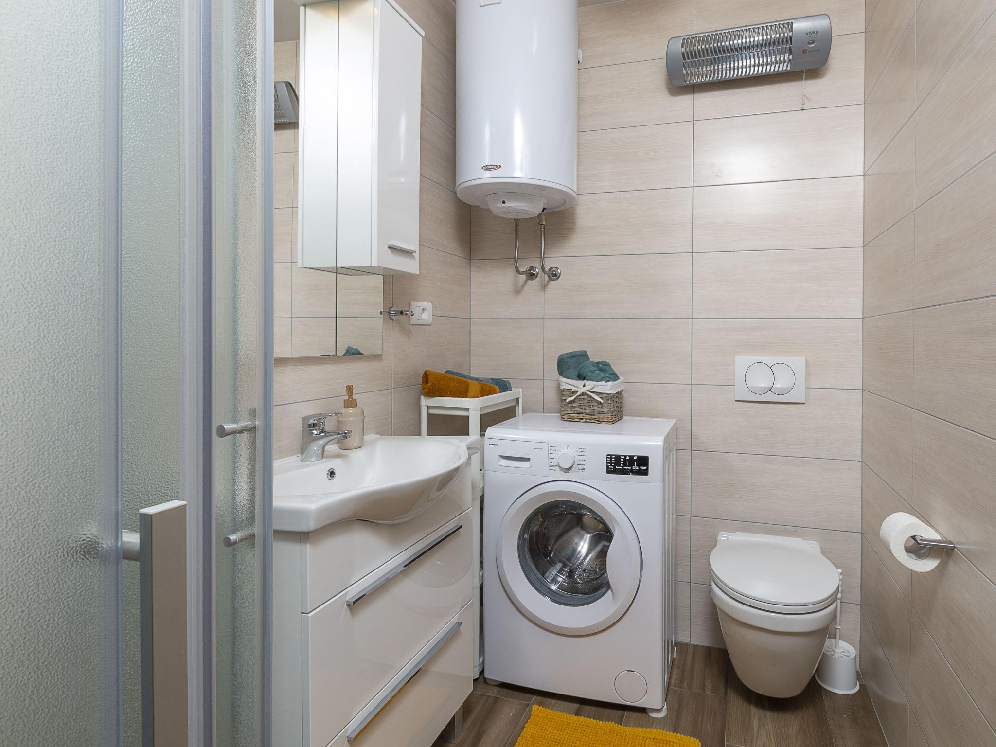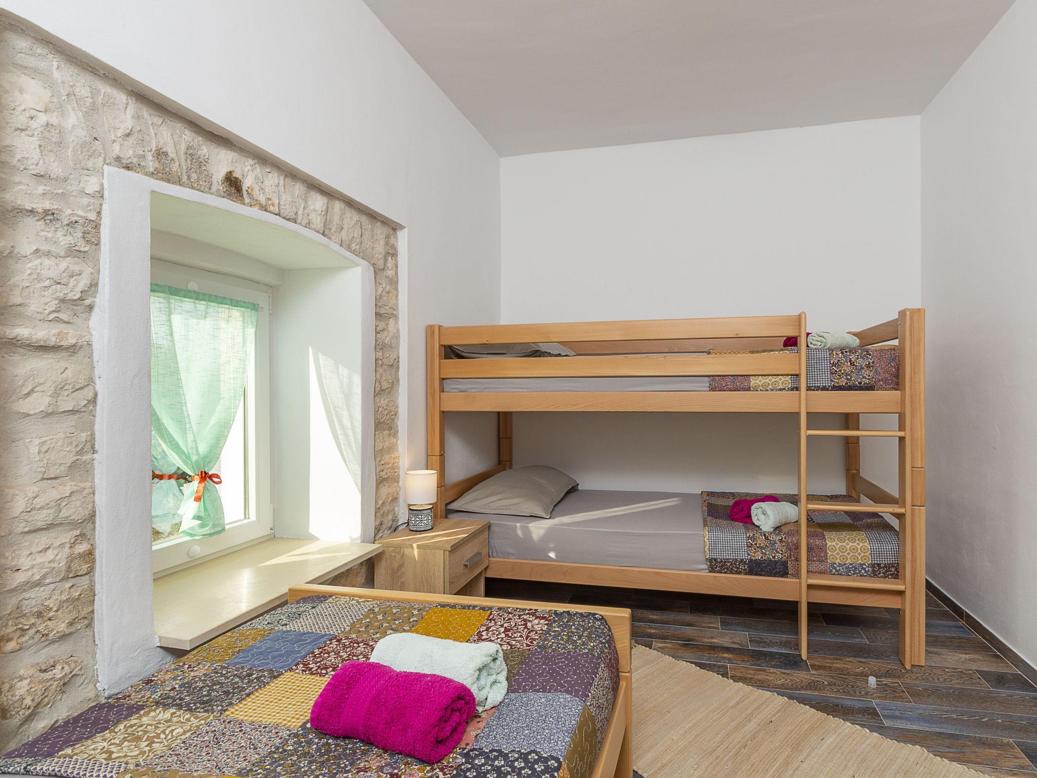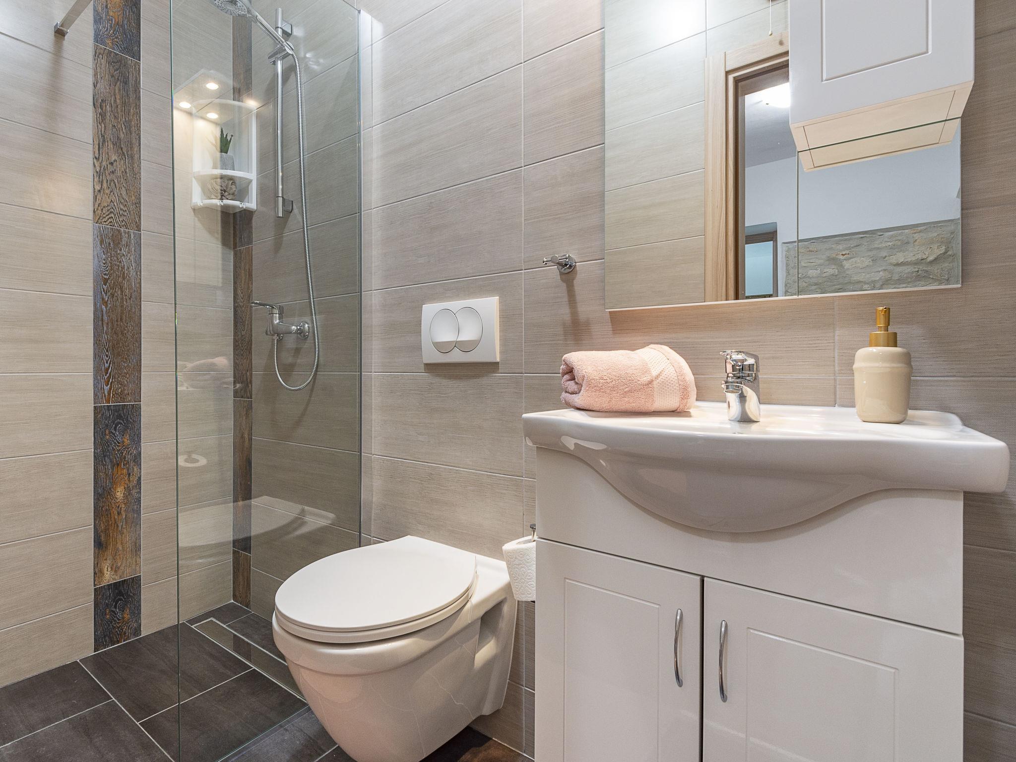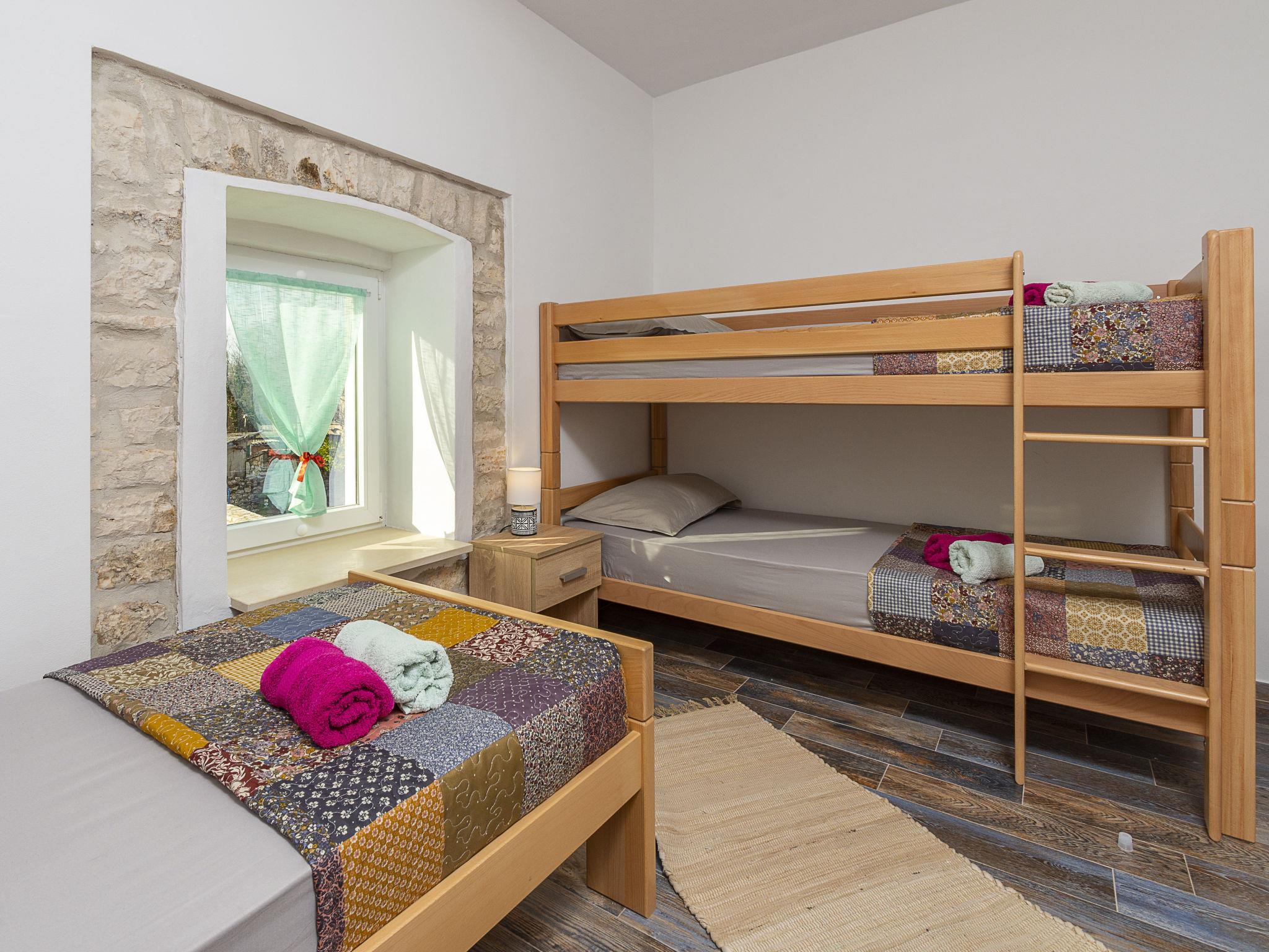 Butkovici 9 km from Vodnjan: Terraced house "Butkovic", 2 storeys. 15 km from the sea. Private: property 120 m2 (fenced), swimming pool (18 m2, depth 140 cm, seasonal availability: 01.May. - 30.Sep.) with internal staircase. Unconventional pool shape. Outdoor shower, garden furniture, barbecue. In the house: internet access, table football, washing machine. Parking at the house on the premises. Shop 9 km, supermarket 9 km, restaurant 3 km, bus stop 3 km, pebble beach 15 km, rocky beach 15 km. Walking paths from the house, cycle lane 100 m.