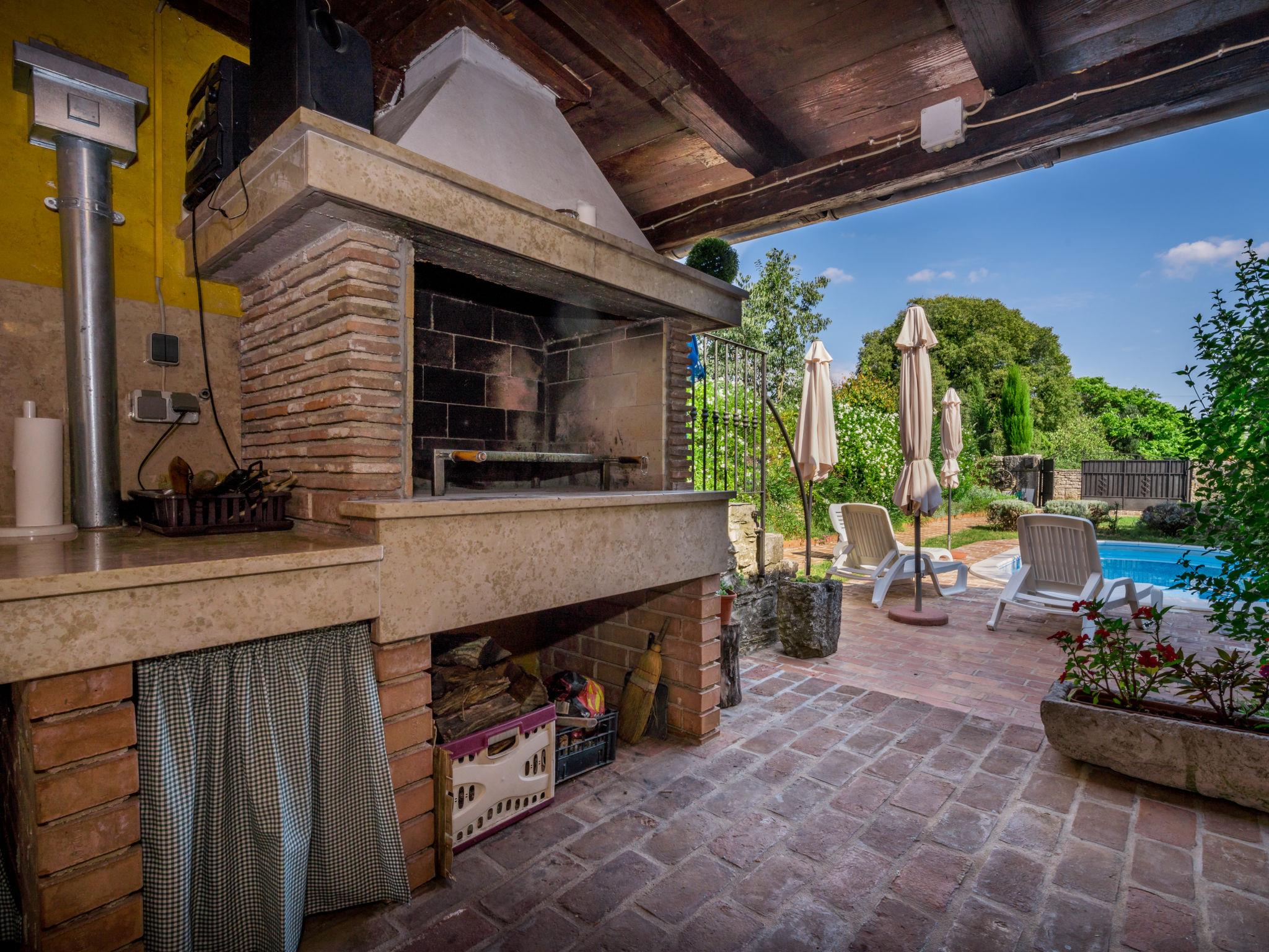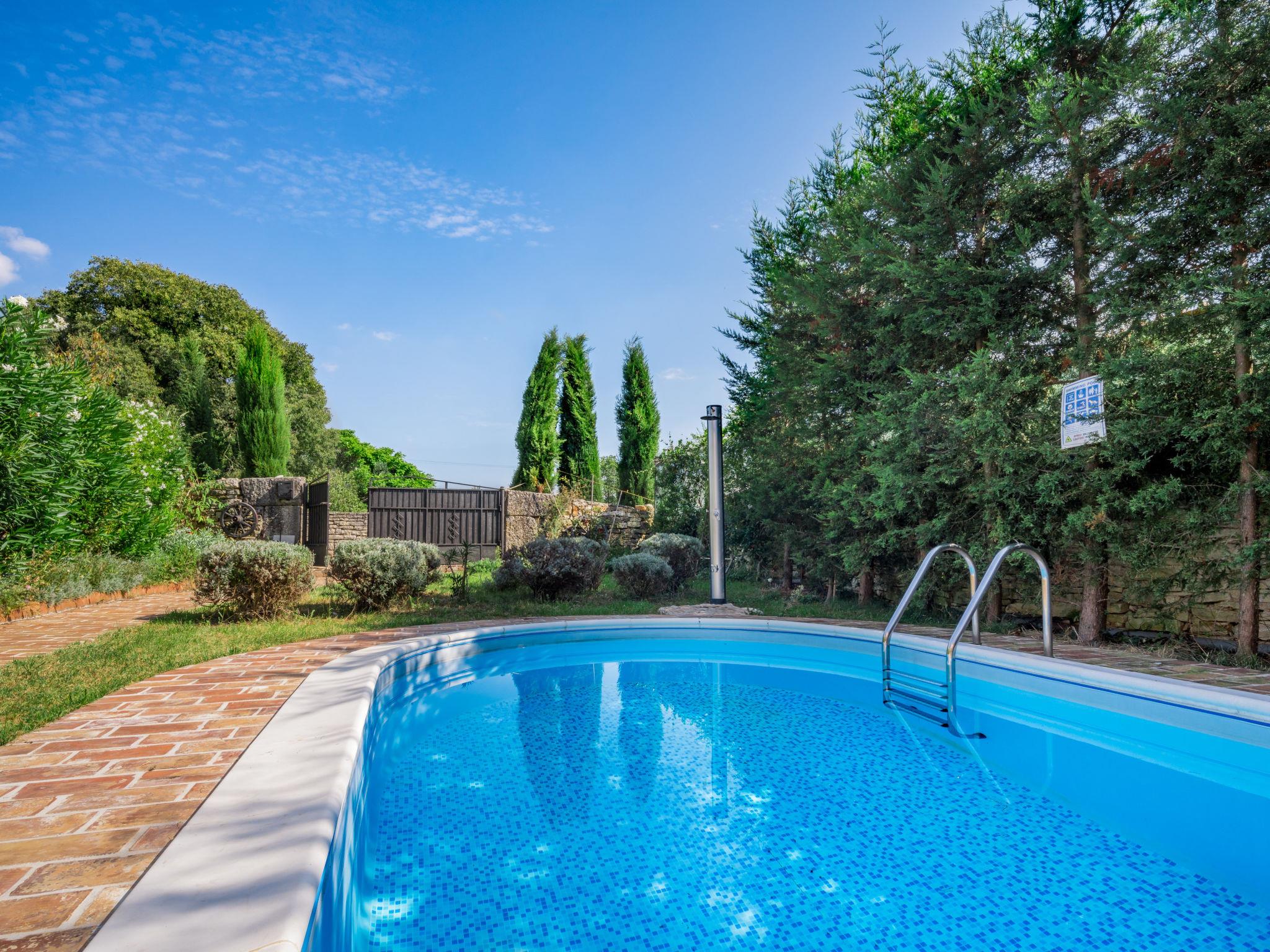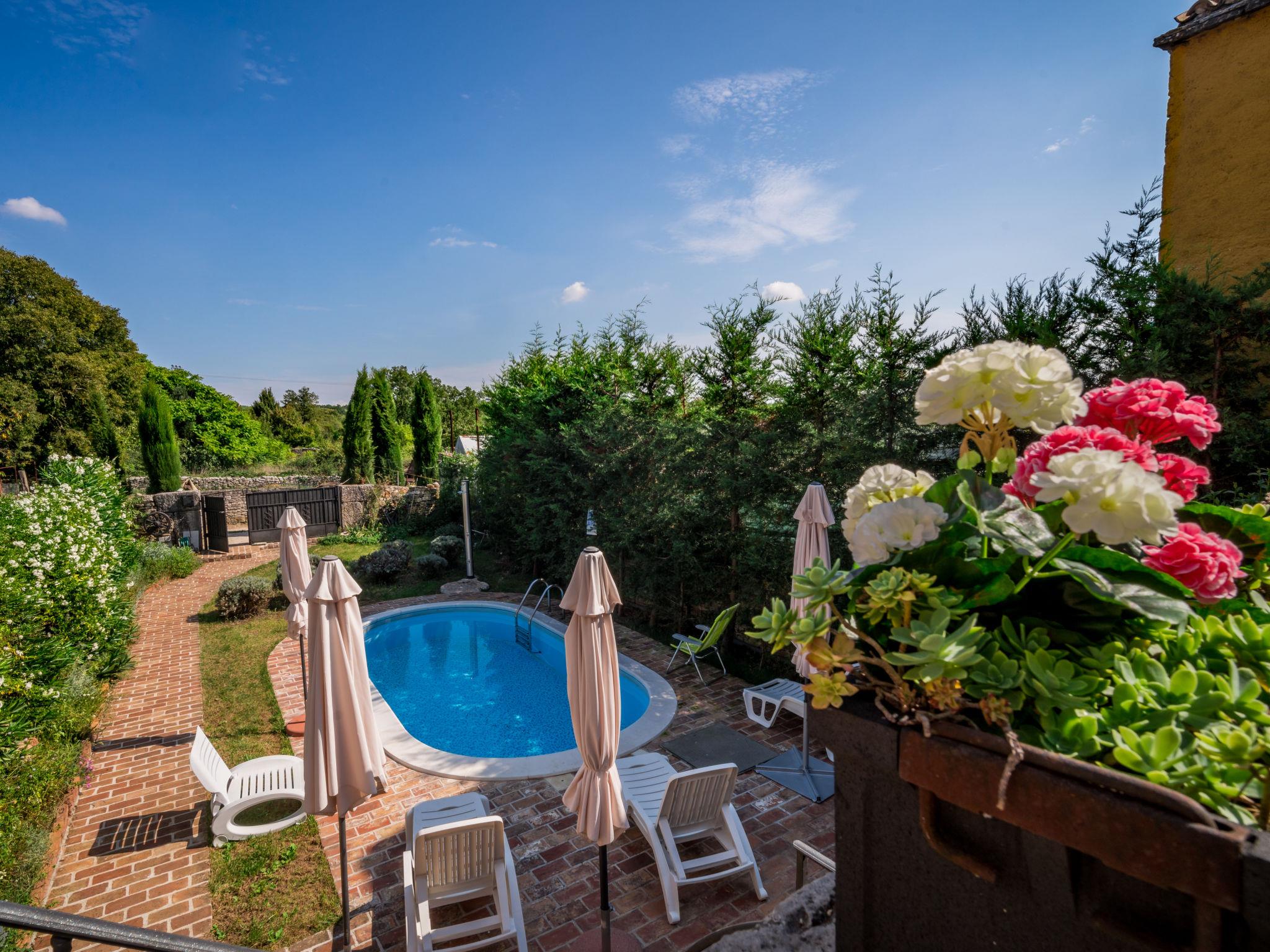 Cabrunici 8 km from Vodnjan: Beautiful semi-detached house "Ivanka", 3 storeys. In a quiet, sunny position, 15 km from the sea, in the countryside. Private: property 250 m2 (fenced) with lawn, swimming pool (6 x 3 m, depth 140 cm, seasonal availability: 04.May. - 14.Sep.). Outdoor shower, terrace (24 m2), garden furniture, barbecue. In the house: internet access. 100 m long narrow motor access to the house. Roofed, parking on the premises. Shop 1 km, supermarket 8 km, restaurant 8 km, bus stop 1.6 km, pebble beach 15 km.