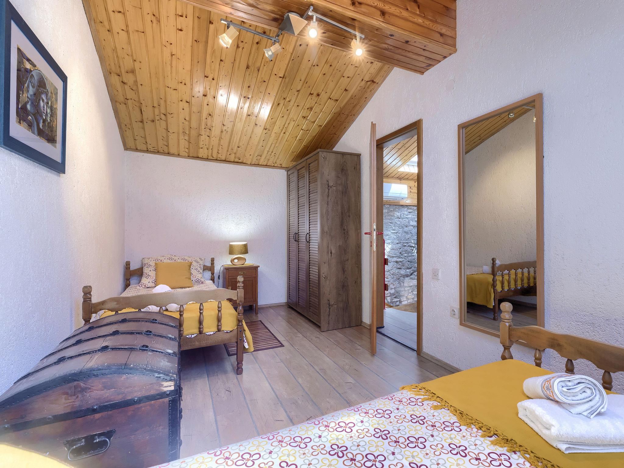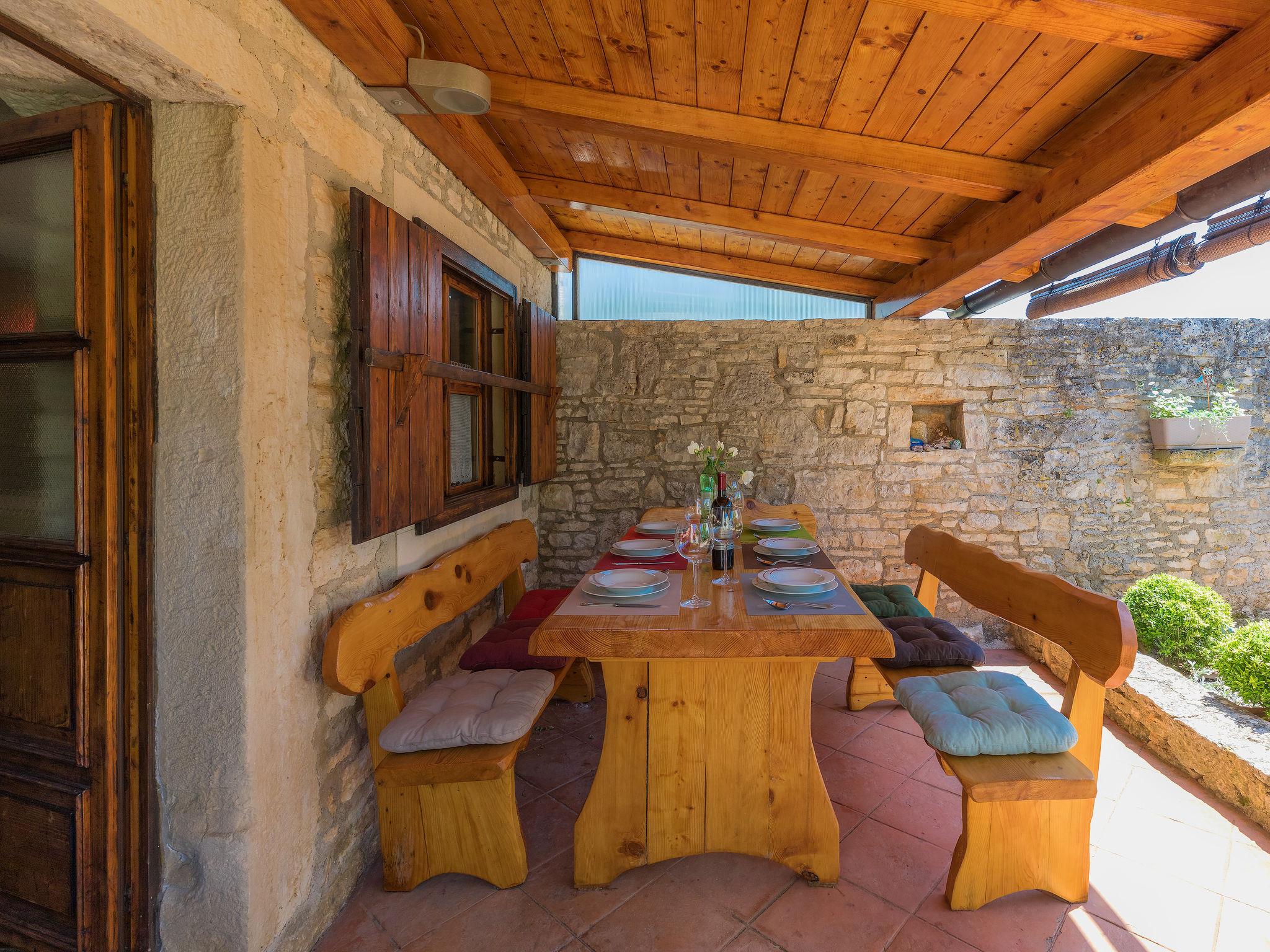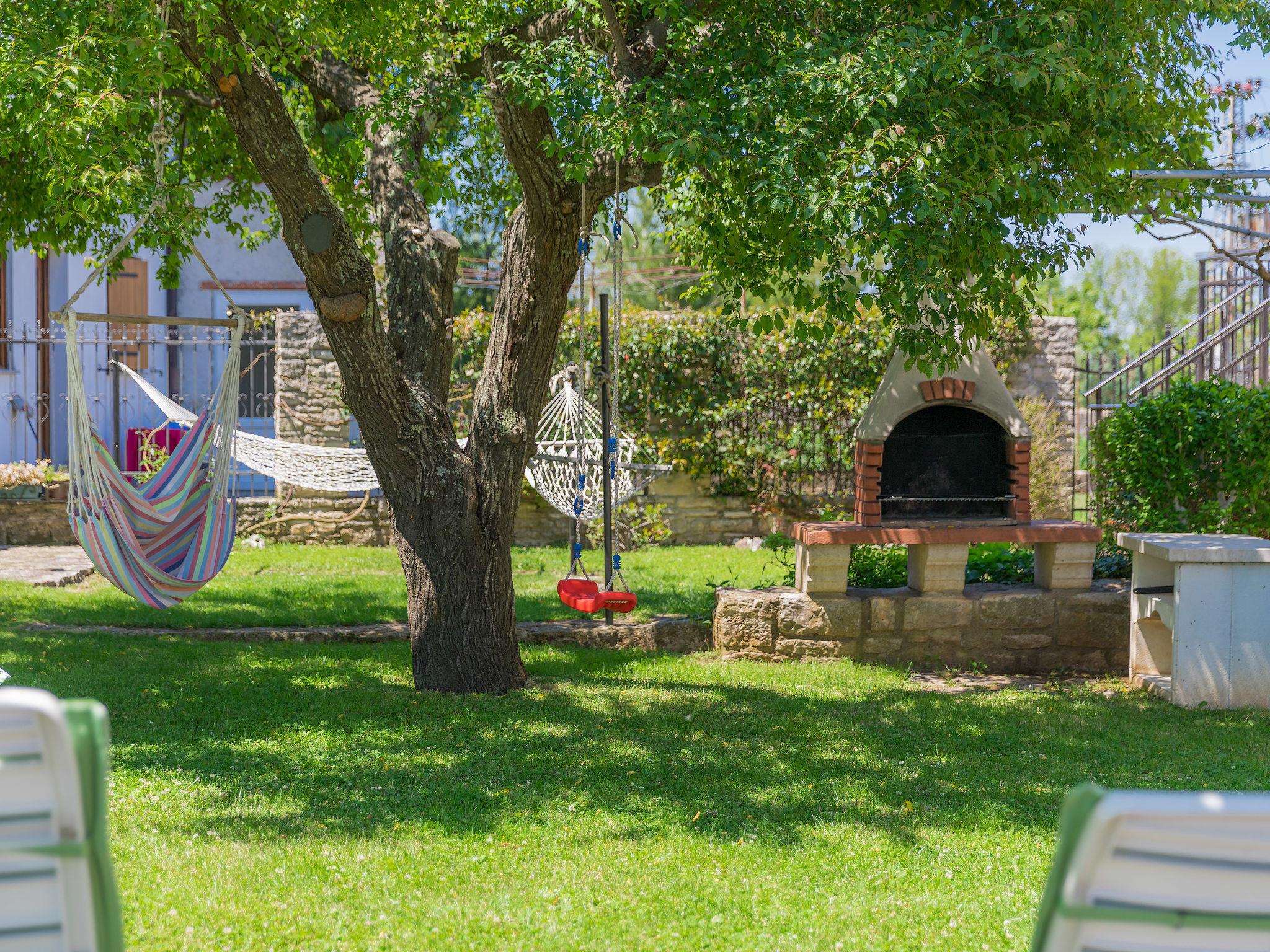 Single-family house "Toni", 2 storeys. In the hamlet Butkovici 7 km from the centre of Vodnjan, 12 km from the sea. Private: property 500 m2 (fenced), lawn and trees, swimming pool angular (5 x 4 m, depth 130 cm, seasonal availability: 04.May. - 05.Oct.). Outdoor shower, terrace (20 m2), garden furniture, barbecue. In the house: internet access, washing machine. Parking (for 2 cars) on the premises. Shop 1.5 km, bus stop 120 m, pebble beach 20 km, rocky beach 12 km. Part of the house is closed and unoccupied.