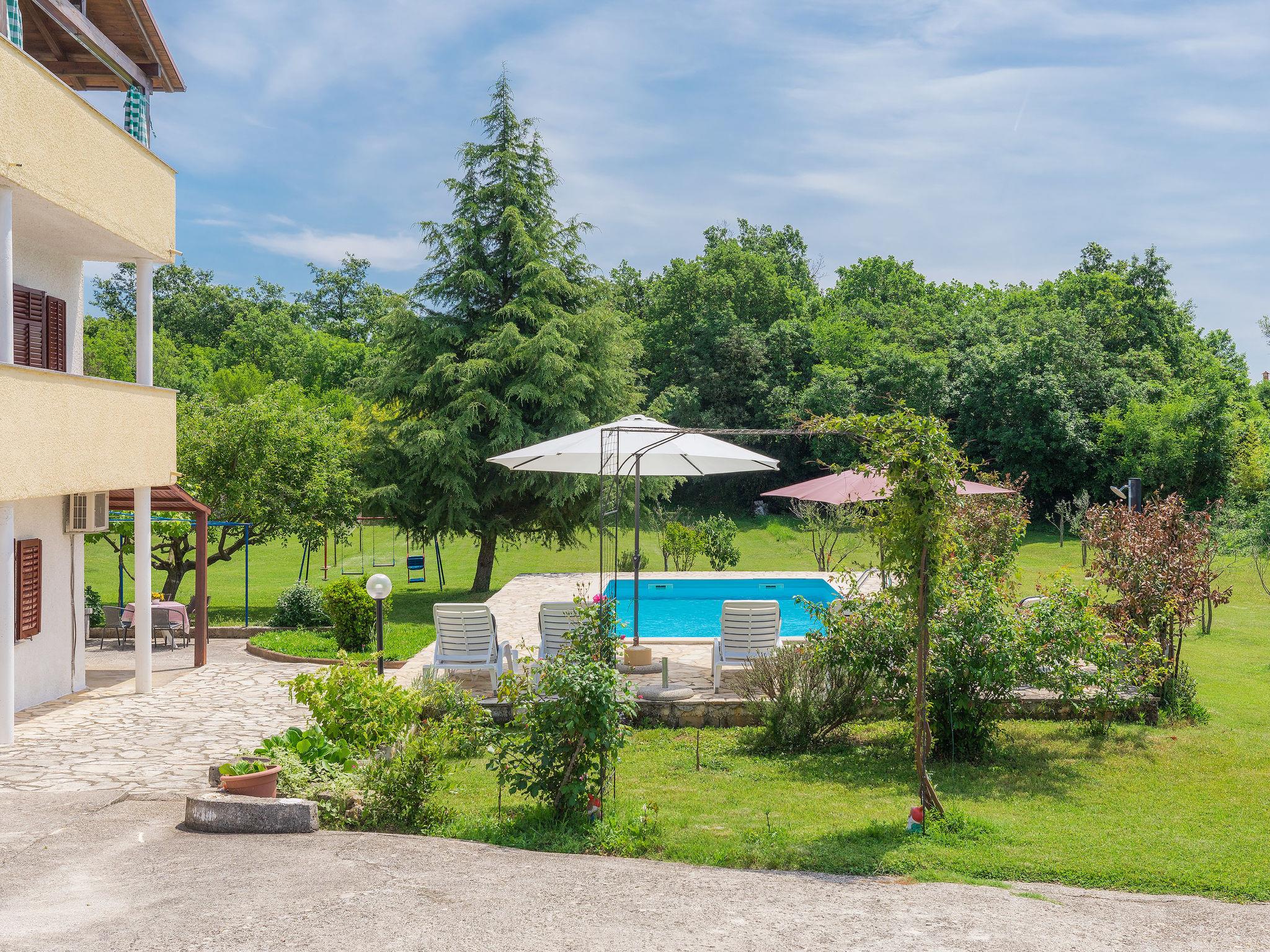 Muškovici: Single-family house "Roverka", 3 storeys. 7 km from the centre of Vodnjan, 17 km from the centre of Pula, 14 km from the sea. Private: property 3'000 m2 (fenced) with lawn and trees, swimming pool angular (8 x 4 m, depth 140 cm, seasonal availability: 30.Apr. - 01.Oct.). Outdoor shower, table tennis, volleyball, badminton, terrace (20 m2), garden furniture, barbecue (swing). In the house: internet access, table football, washing machine. Parking (for 3 cars) on the premises. Shop 1.6 km, supermarket 7 km, bus stop 240 m, pebble beach 14 km. Marina 17 km. For privately use: tavern with open-hearth fireplace, dining table, sink and refrigerator.