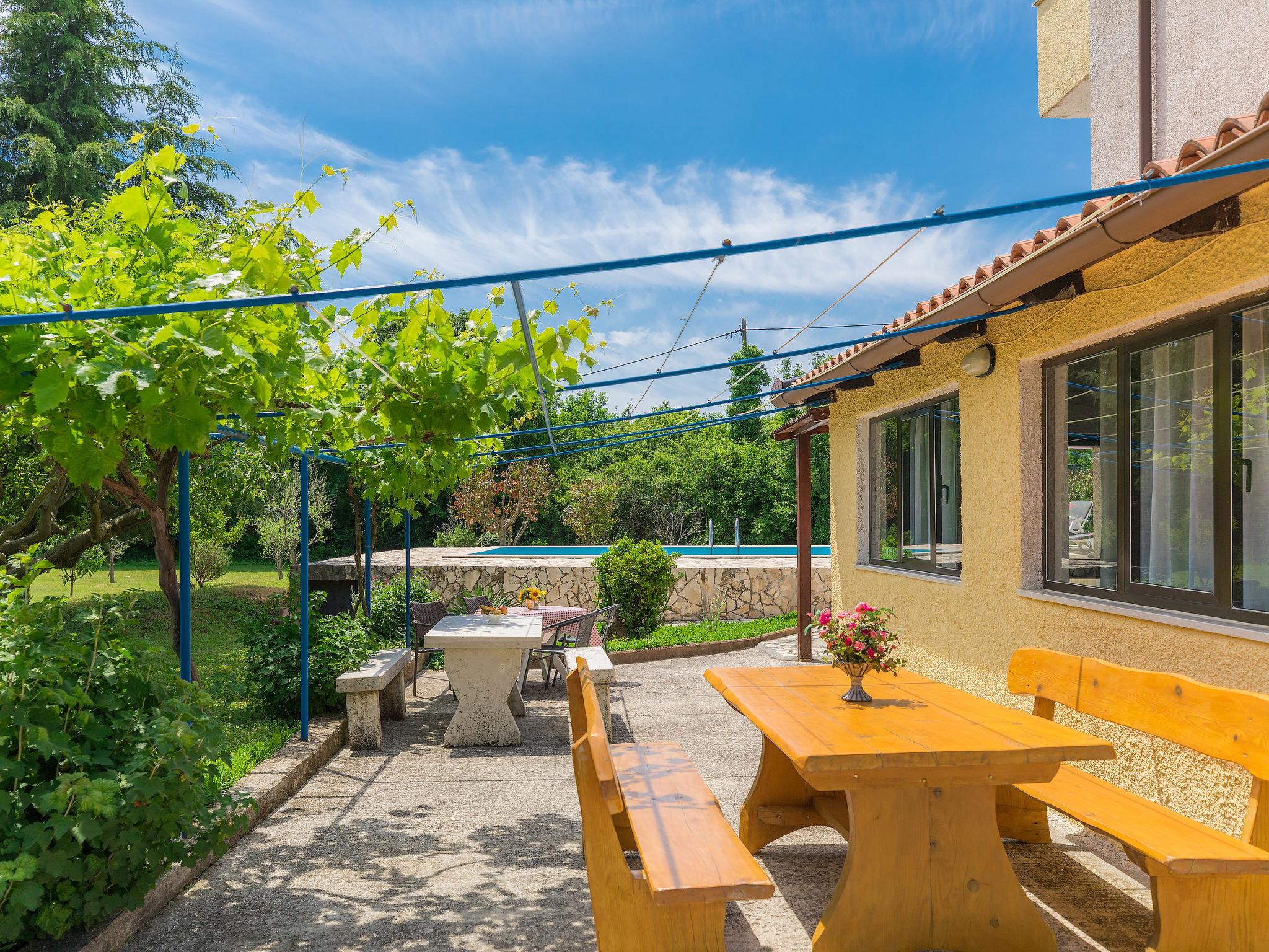 "Roverka", 8-room house 285 m2 on 3 levels. Practical and cosy furnishings: living room with satellite TV and air conditioning. Dining room. Exit to the terrace. Kitchen (oven, dishwasher, Gas stove, 4 gas rings, toaster, kettle, microwave, freezer, electric coffee machine). Bath/WC. Upper floor: (exterior staircase) living/dining room with satellite TV and air conditioning. Exit to the balcony. 1 room with 1 double bed. 1 room with 1 french bed (160 cm). Exit to the balcony. Open kitchen (1 hot plate, oven, 3 gas rings, freezer, electric coffee machine). Bath/shower/WC, double hand-basin. 2nd upper floor: living/dining room with sloping ceilings with satellite TV and air conditioning. Exit to the balcony. 1 room with sloping ceilings with 2 beds. 1 room with sloping ceilings with 1 french bed (160 cm). Open kitchen (oven, Gas stove, 4 gas rings). Bath/shower/WC. No heating option. 3 balconies. Balcony furniture, deck chairs. View of the swimming pool. Facilities: baby cot. Internet (WiFi, free). Please note: non-smoking house. Maximum 2 pets/ dogs allowed.