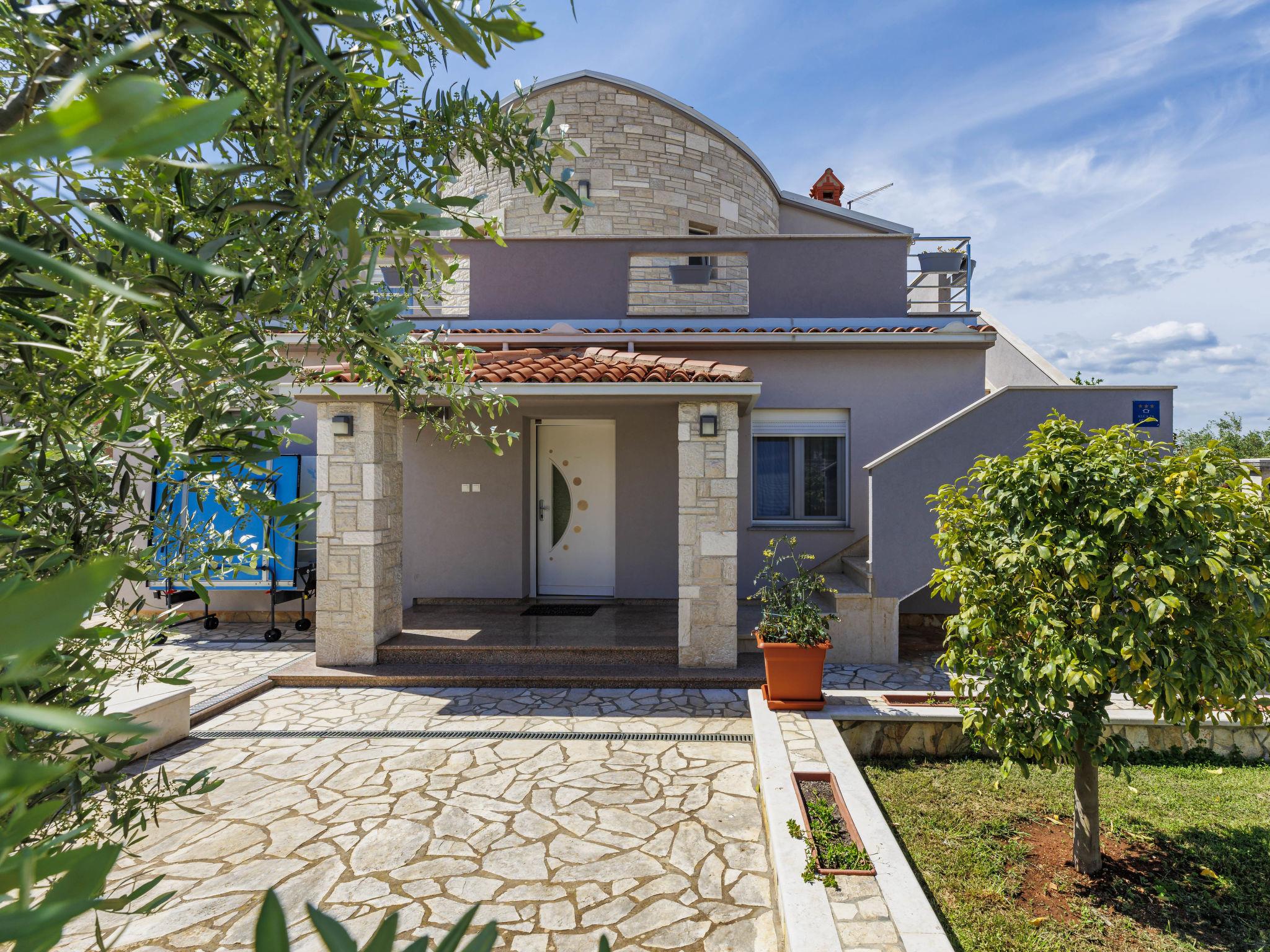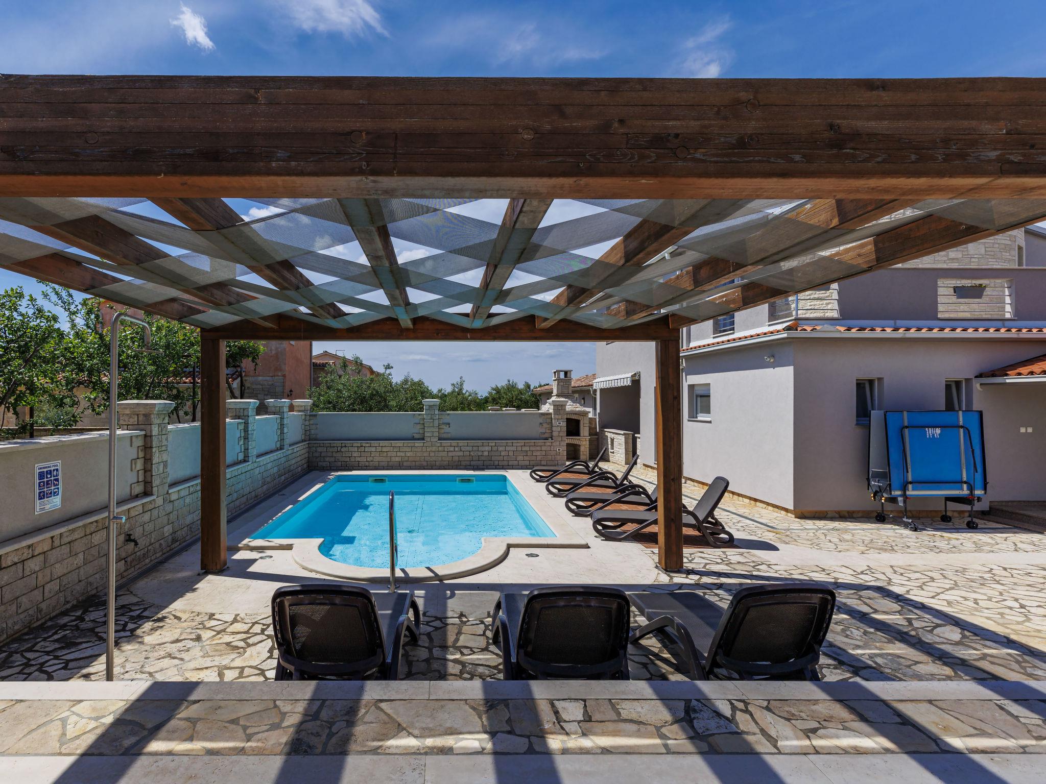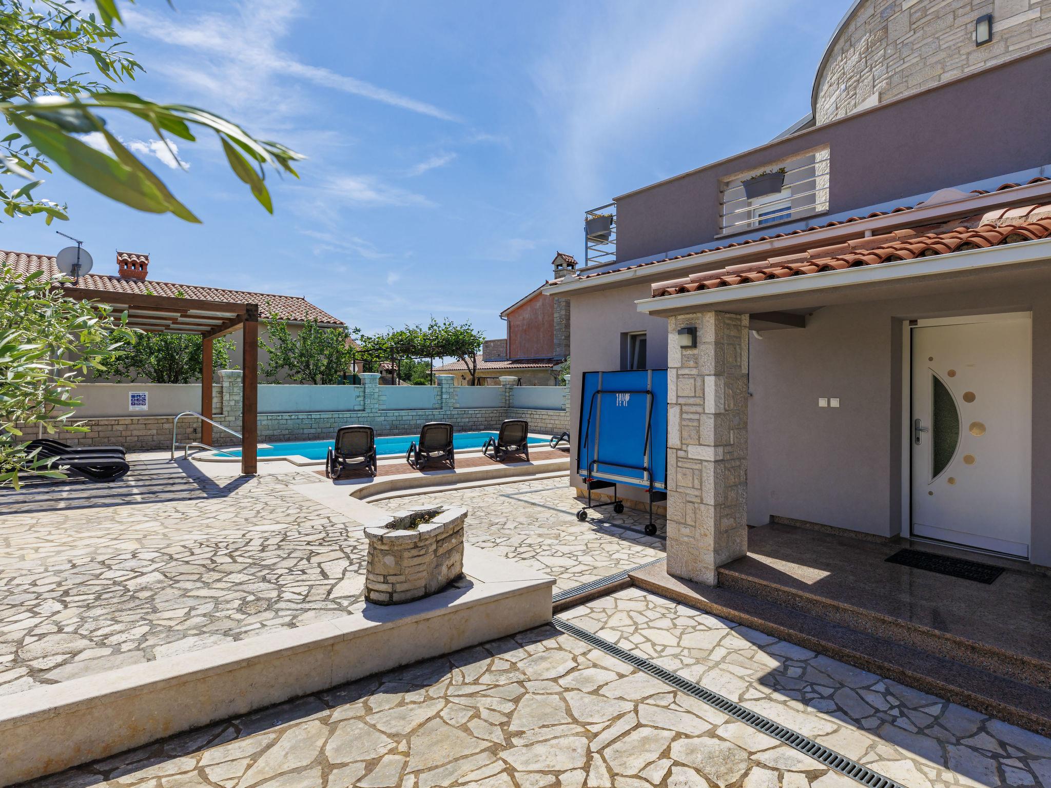 Golubovo 8 km from Vodnjan: Villa "Dzana", 2 storeys. In the residential district, 4 km from the sea, 4 km from the beach. Private: property 650 m2 (fenced), garden with trees, swimming pool angular (28 m2, depth 140 cm, seasonal availability: 01.May. - 01.Oct.). Outdoor shower, table tennis, terrace (15 m2), garden furniture, barbecue. In the house: internet access, washing machine. Parking (for 3 cars) at the house on the premises. Shop 3 km, supermarket 8 km, restaurant 3 km, bus stop 3.7 km, pebble beach 4 km, shingle beach 4 km. Please note: airfield 15 km from the property.