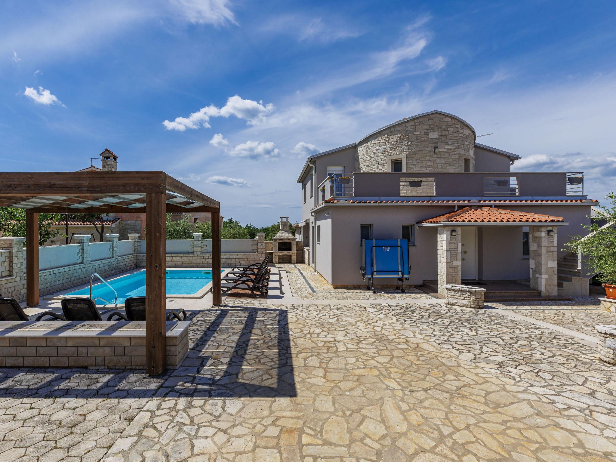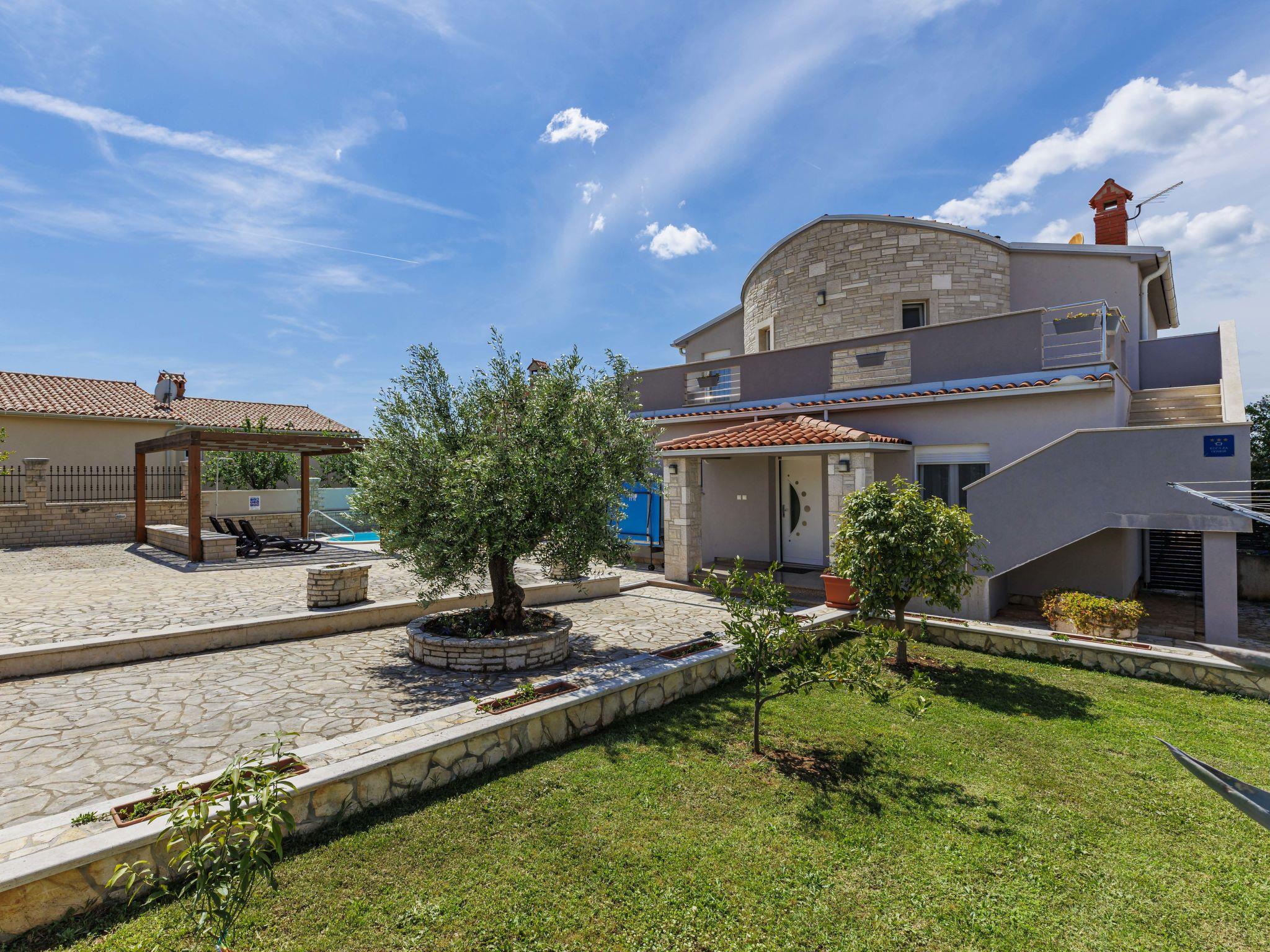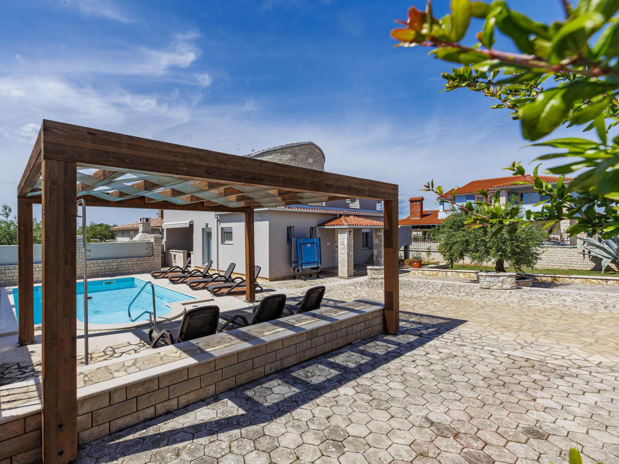 Golubovo 8 km from Vodnjan: Villa "Dzana", 2 storeys. In the residential district, 4 km from the sea, 4 km from the beach. Private: property 650 m2 (fenced), garden with trees, swimming pool angular (28 m2, depth 140 cm, seasonal availability: 01.May. - 01.Oct.). Outdoor shower, table tennis, terrace (15 m2), garden furniture, barbecue. In the house: internet access, washing machine. Parking (for 3 cars) at the house on the premises. Shop 3 km, supermarket 8 km, restaurant 3 km, bus stop 3.7 km, pebble beach 4 km, shingle beach 4 km. Please note: airfield 15 km from the property.
