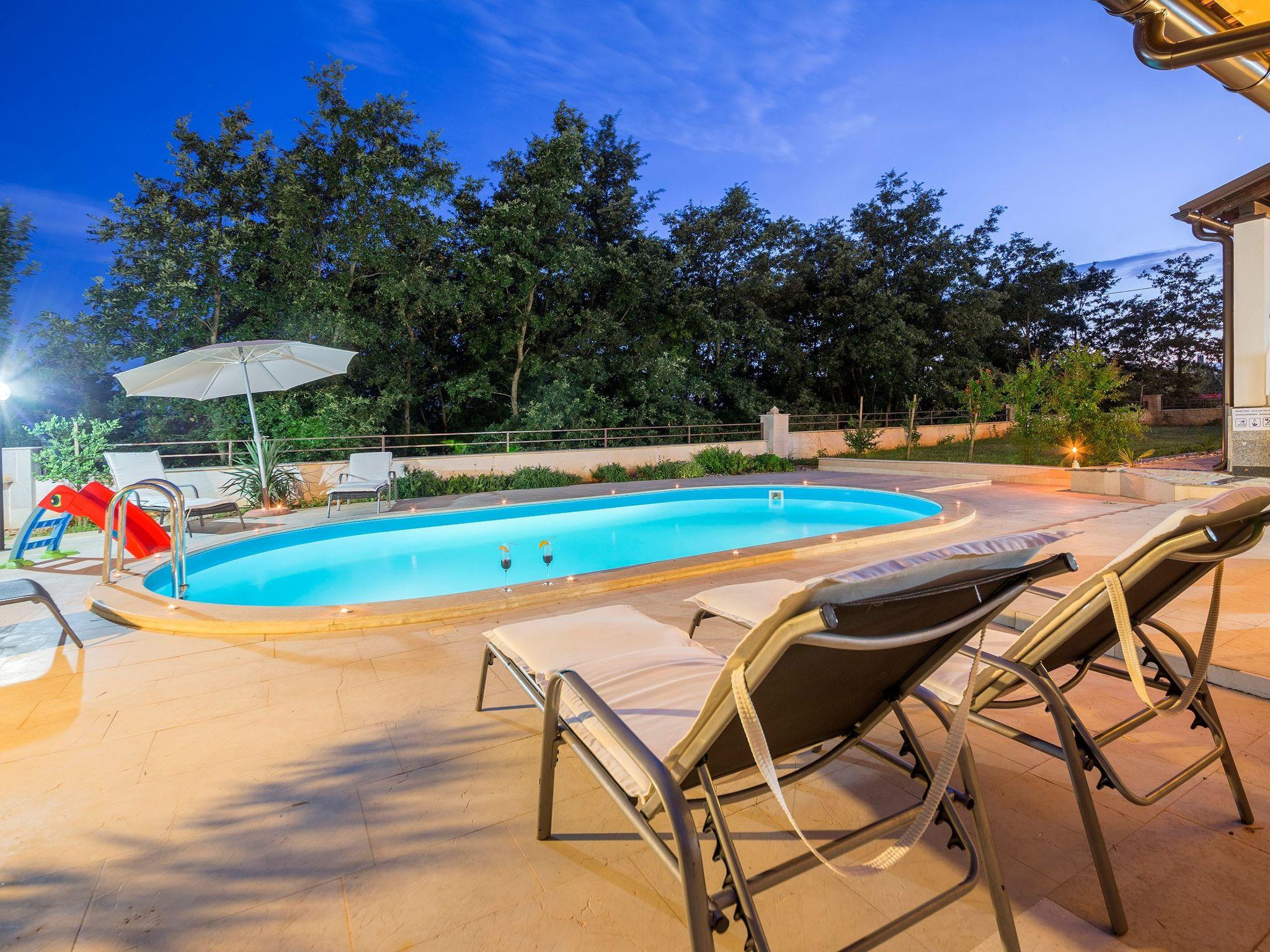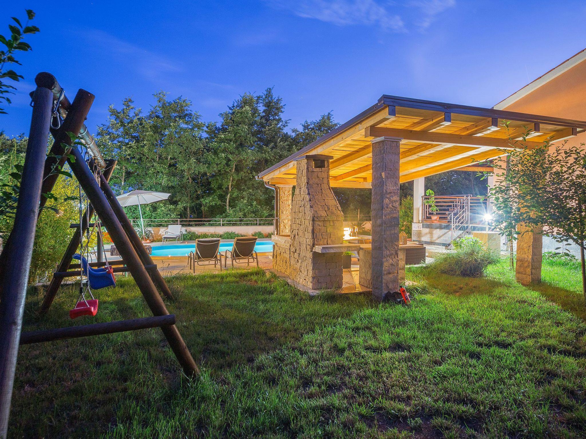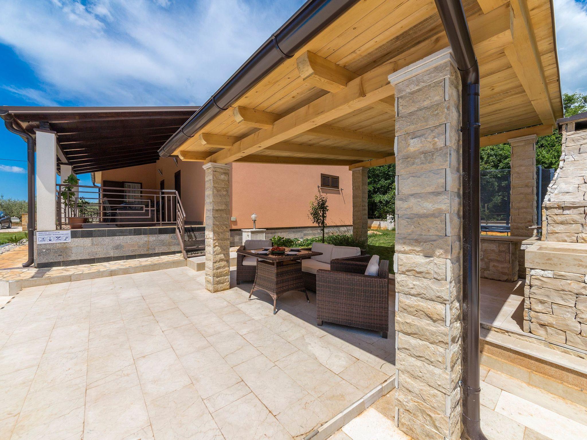 This generous villa, built in 2014, is away from everyday noise in the little village of Kacana, just a minute’s drive from the town of Vodnjan. It therefore offers the ideal combination of peacefulness and town life.