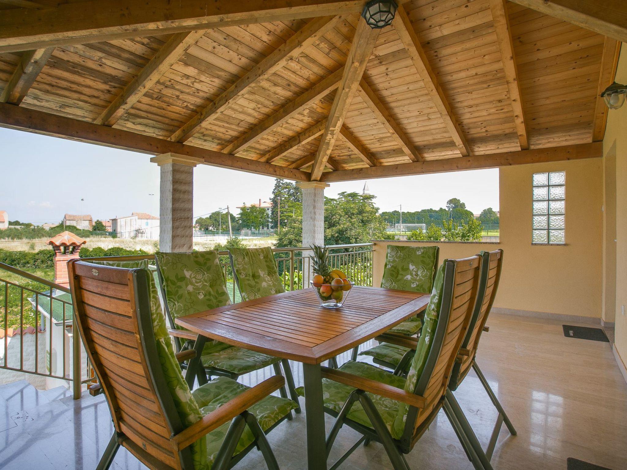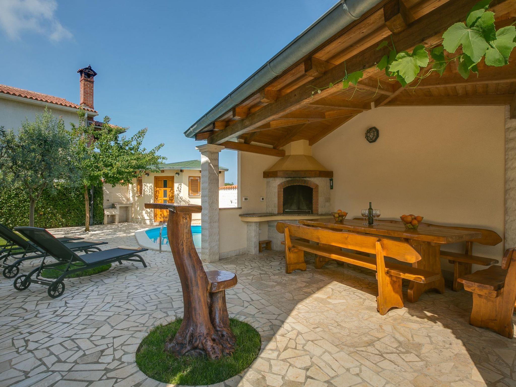 House for 12 people with private pool and garden House is located in city of Vodnjan at the end of an impasse and has peaceful and sunny location. The access goes on a side road (asphalted). Parking on the street in front of the house. The house is in a dead end - no traffic. Shopping 400 m, restaurant 600 m, Central district 600 m. Fitness park, children's playground and football field in Vodnjan 100 m. Beach 5 km In Fazana with gravel-sand and stones. Tennis in Vodnjan 1,5 km, golf in Brijuni 6 km, horse riding in Manjadvorci 16 km.House is surrounded by other family houses, in a quiet neighborhood, and it is not suitable for parties! House is not suitable for young groups.