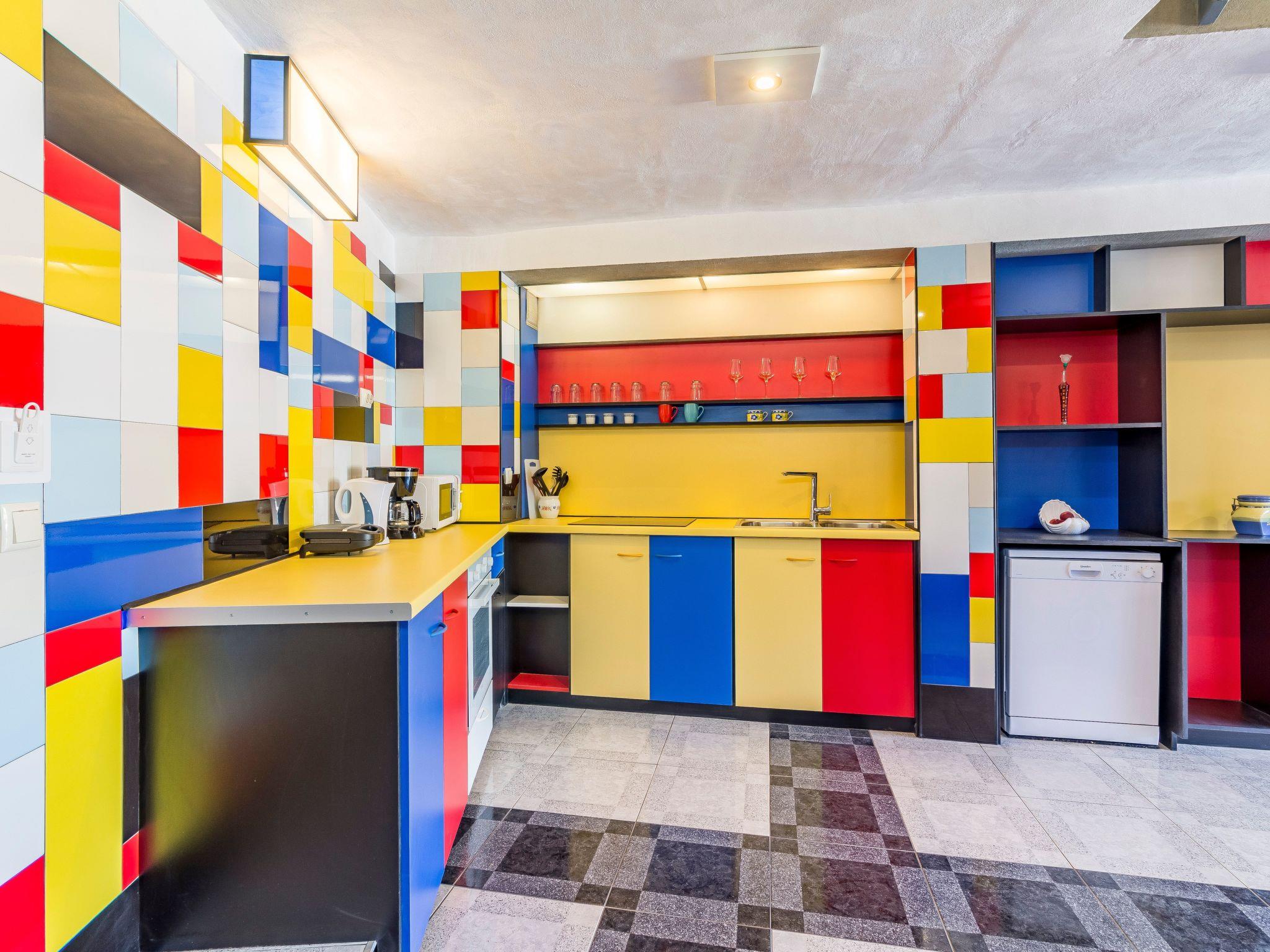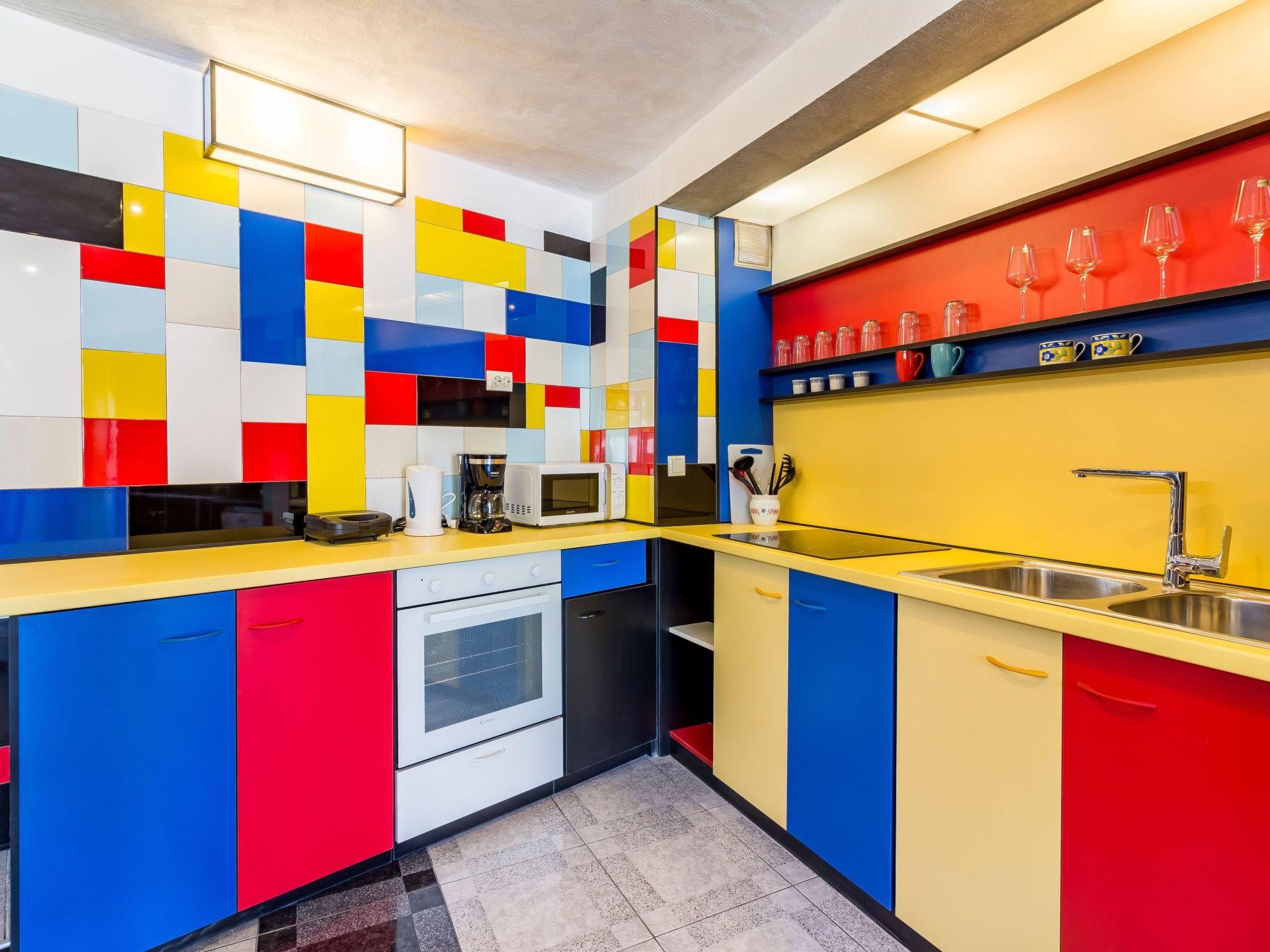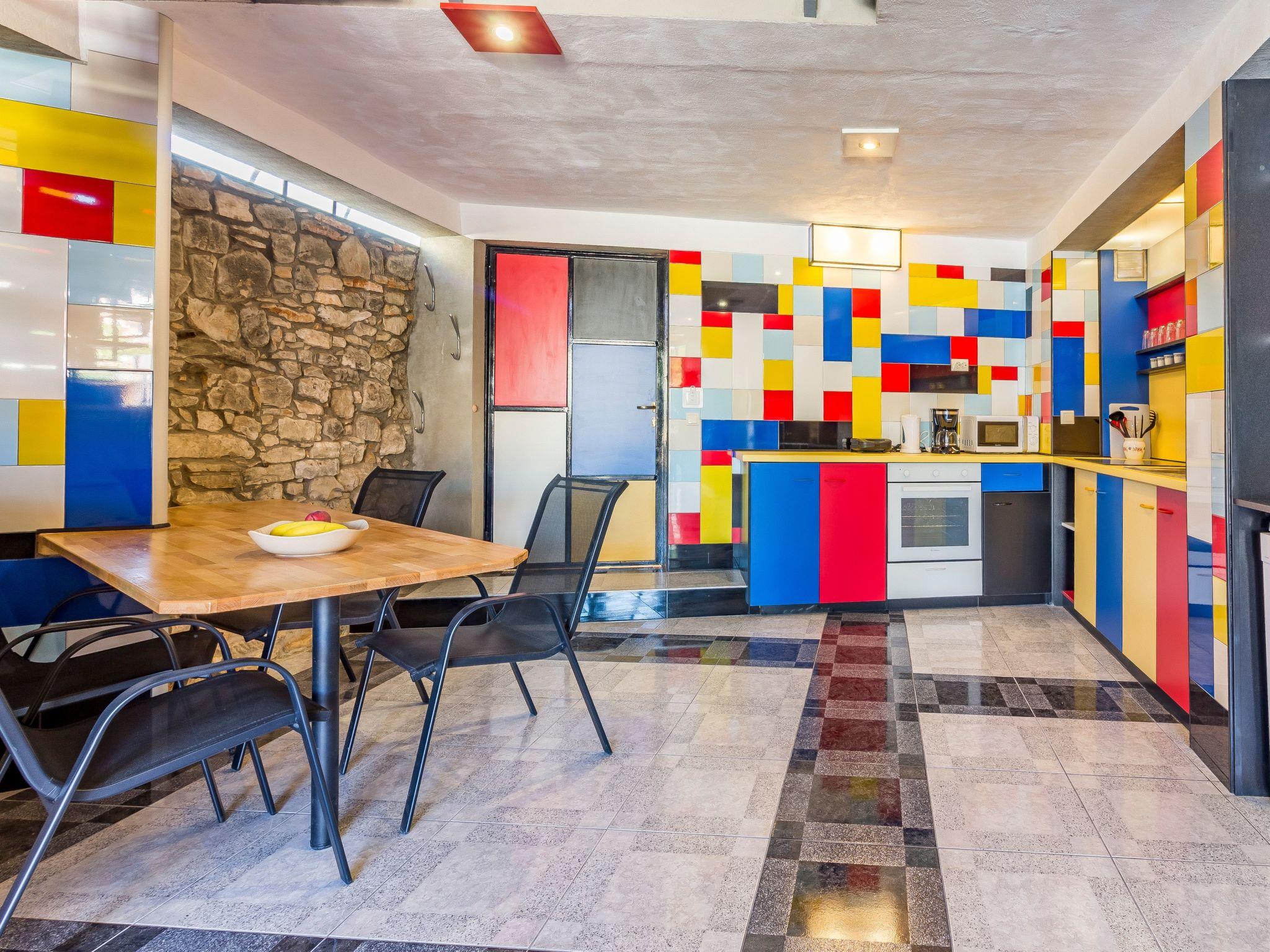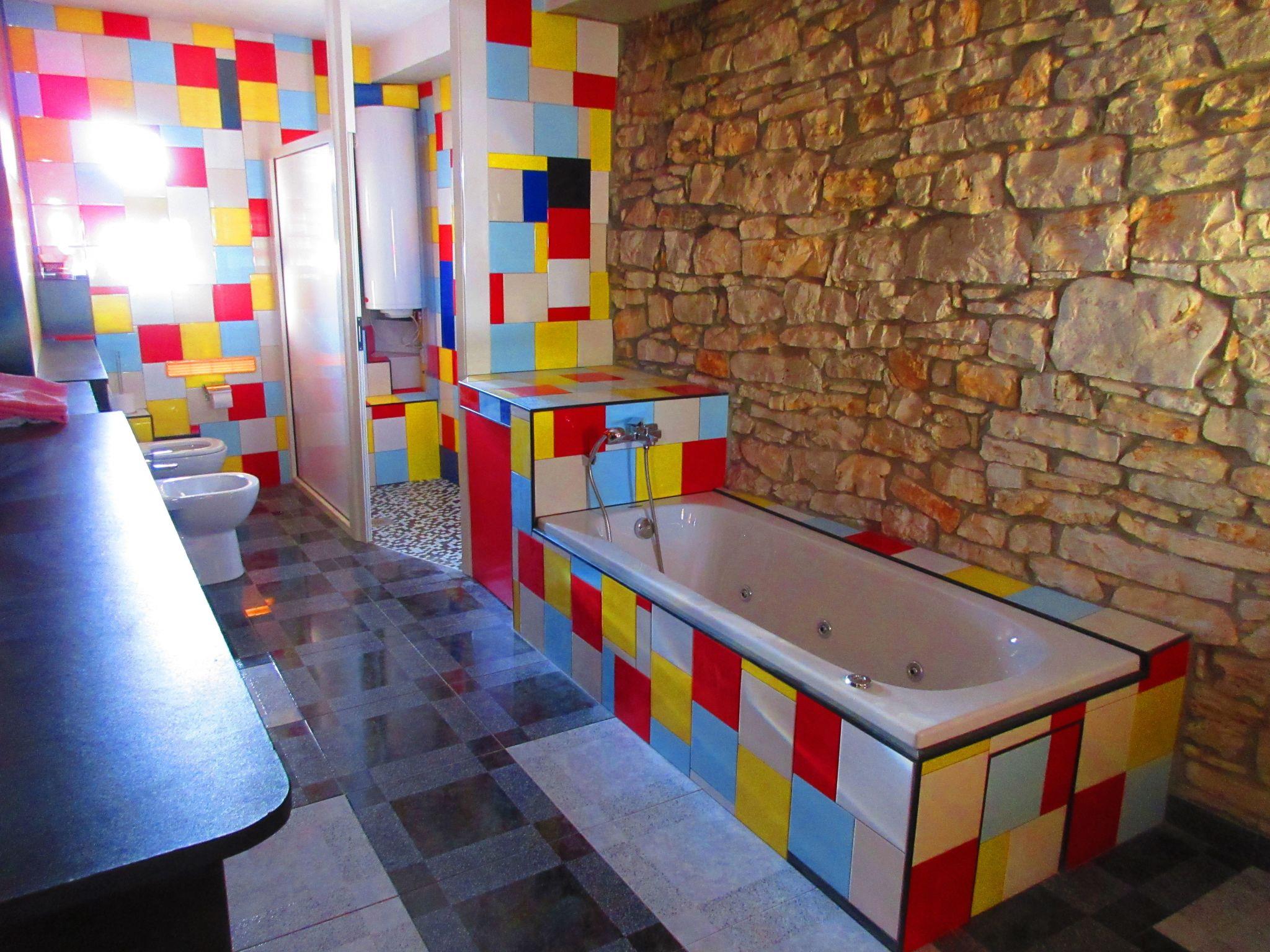 This house was built as recently as 2017 and stands in the historical little town of Vodnjan. The location is perfect for a relaxing holiday and is a rewarding holiday destination especially for holiday guests interested in art and culture. Art enthusiasts will no doubt be delighted by this house immediately, with its colour design referring to the famous Dutch painter of the classical modern era, Mondrian. The house is ideal for exploring the rich cultural heritage of the town, as it is on a quiet street in the centre.Holiday house with a modern design à la Mondrian with a private pool, in a quiet but central location, ideal for exploring art and culture