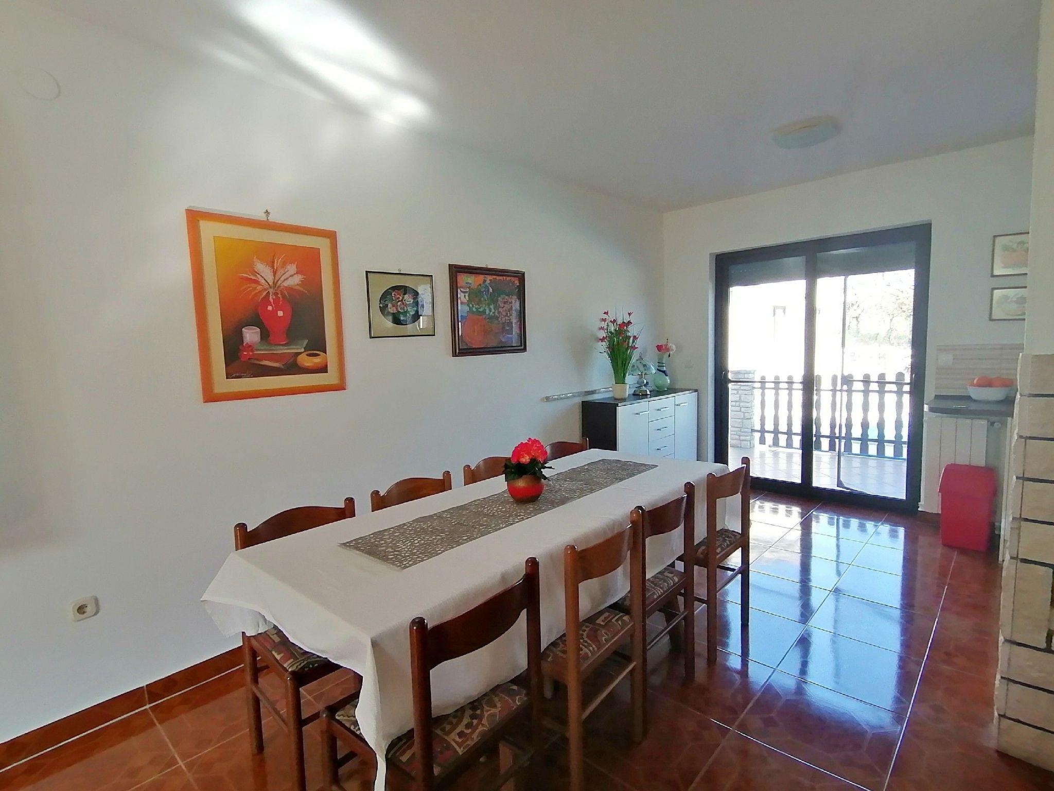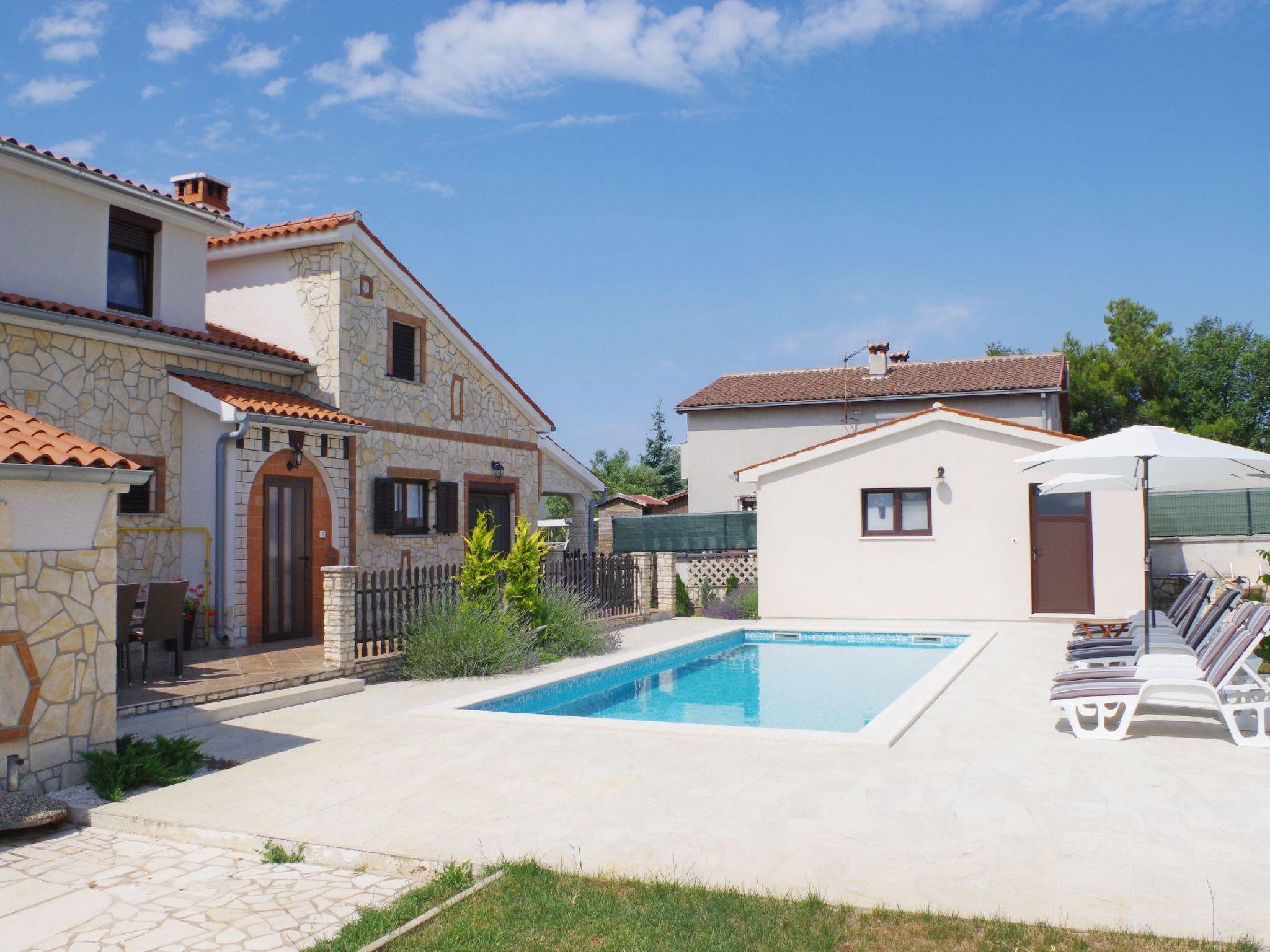 Spacious 4 bedroom holiday house with private swimming pool is located in tiny village Sveti Kirin in Istria. This house is suitable for bigger families or group of friends. It is well equipped with up to date appliances and tastefully furnished interior. Plenty of fenced outside area allows guests to enjoy the privacy and indulge themselves in the careless and relaxed holiday. Cozy evenings on the terrace and BBQ diners are nice closure of the long summer day. Your children will be thankful for big outside space and playground. House is pets friendly. The location of the house is perfect for daily visits to different sites, as Medieval Istrian little towns with unique charm and atmosphere, local taverns, aqua land or Dino park, National park Brijuni or ancient town of Pula with its famous Roman Colosseum. Closest beaches are reachable within 10 km drive in a nice little place called Fažana.