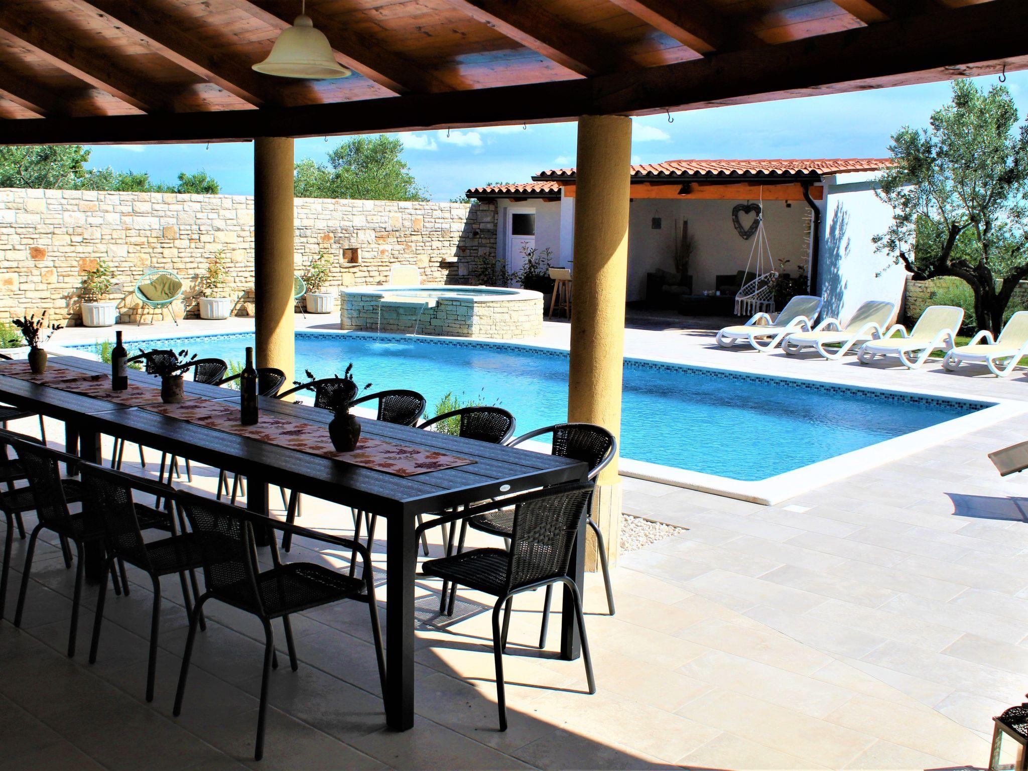 Villa With heated pool - Extra charge Is placed in a beautiful and quiet part of town Vodnjan. Its distance from the Pula airport is just a little over 8 kilometers, and from the nearest beach less than 4. The town has a shop and a restaurant just a walk away. Villa is surrounded by greenery, flowers and famous Istrian olive trees. It offers everything needed for a vacation: relaxation for the parents, fun for their kids. Besides the pleasant ambient, the experience is completed with an irresistible view of the Brijuni archipelago.For large families or group, pool50m2,Jacuzzi,4 Km nearest beach,sea view,quite location,LAST MINUTE - NEW 2020 50m2 POOL & Great Outdoor area. Groups Welcome!
