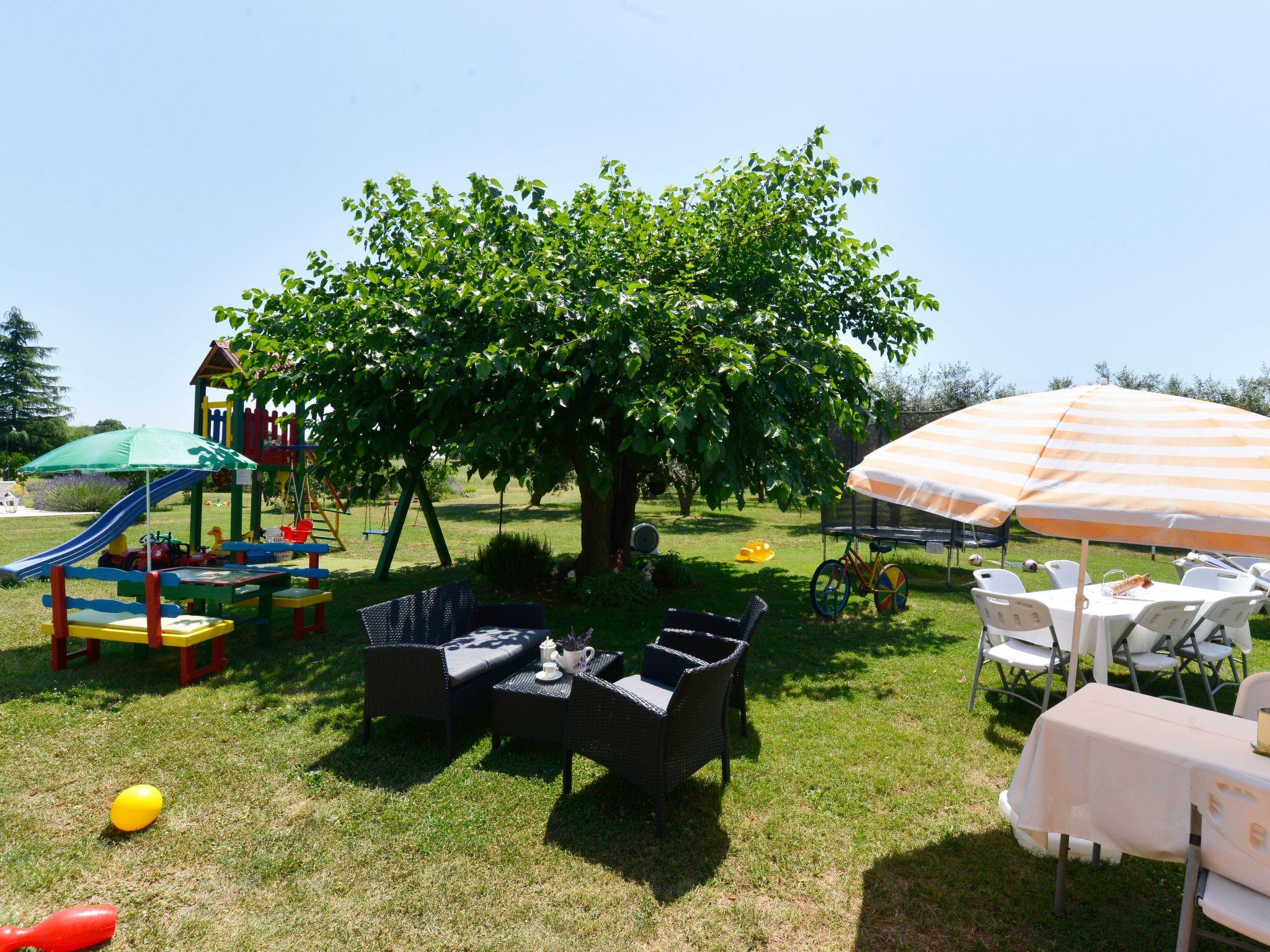 The house has a well-kept garden, divided from the other house by a children's playground. Nearby is an olive grove and a large open space for walking.