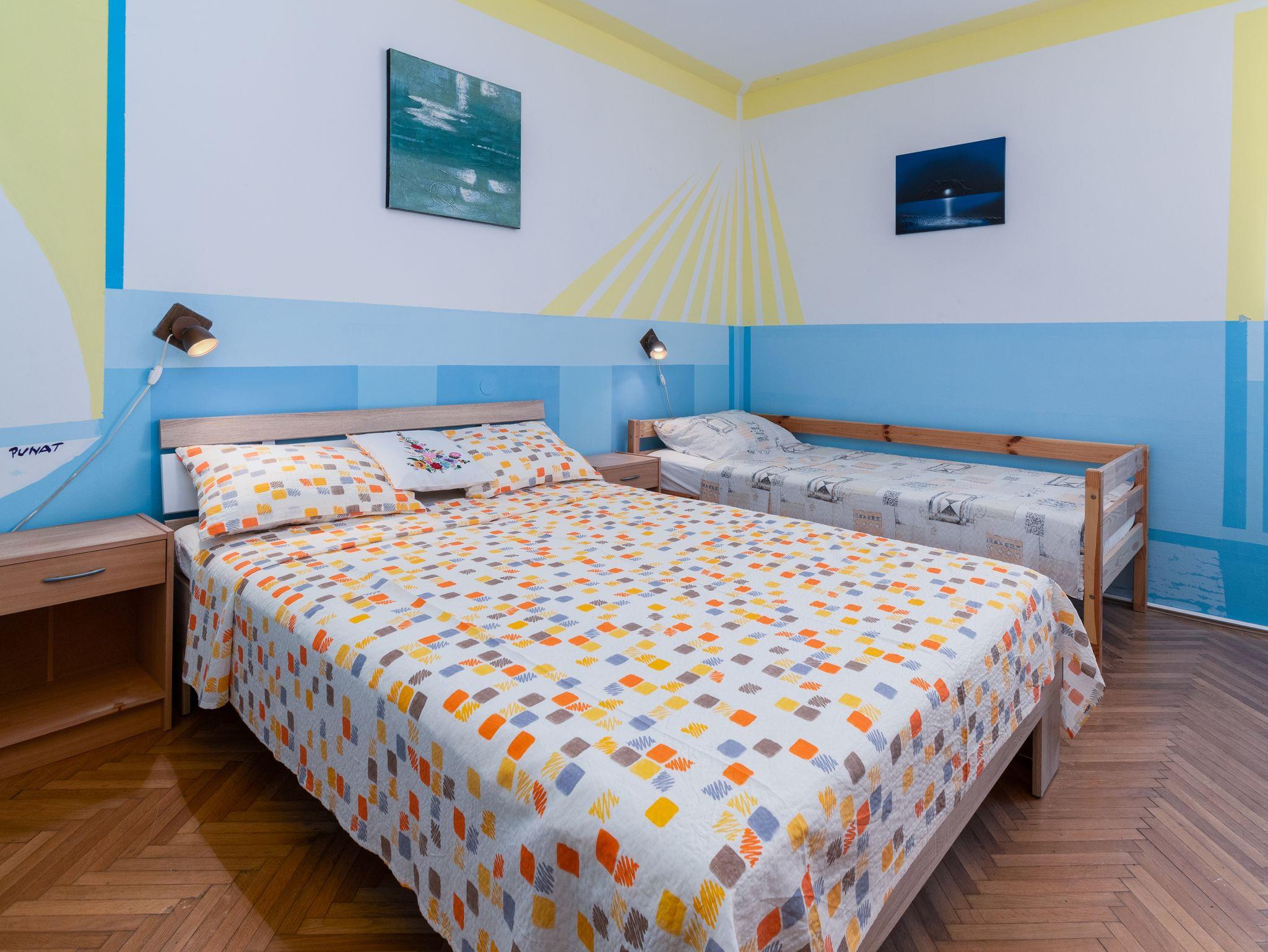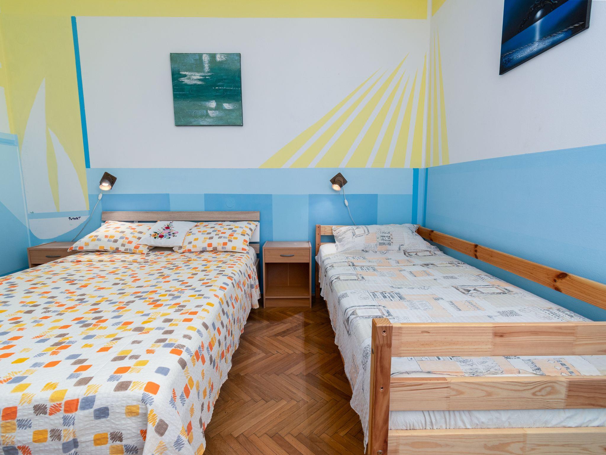 Ferienwohnung bietet Platz für 5 Gäste. Die Betten sind in Schlafzimmern, die es 2 gibt, innerhalb einer Gesamtfläche von 53m2, angeordnet. Es ist erlaubt, Speisen auf dem Gemeinschafts-Grill vorzubereiten. In der Unterkunftseinheit besteht die Möglichkeit des Mitbringens von Haustieren, und die Dienstleistung ist im Preis der Unterkunft enthalten. Die reservierte Unterkunftseinheit hat keinen Balkon und keine Terrasse. IM PREIS INBEGRIFFEN: Kurtaxe, Endreinigung, Klimatisierung, Parkplatz, Internet, Wäschewaschen, Haustiere, Zusatzbett, Bügeleisen, Bügelbrett, Föhn, tragbarer Grill. Die Verfügbarkeit zusätzlicher Dienstleistungen in Ihrem reservierten Termin und die Preise derselben (falls nicht aufgeführt) müssen im Voraus überprüft werden. Zusätzliche Dienstleistungen die in der Zahlungsaufforderung nicht aufgeführt sind werden direkt beim Vermieter bezahlt, angenommen der Gast nutzt auch diese.