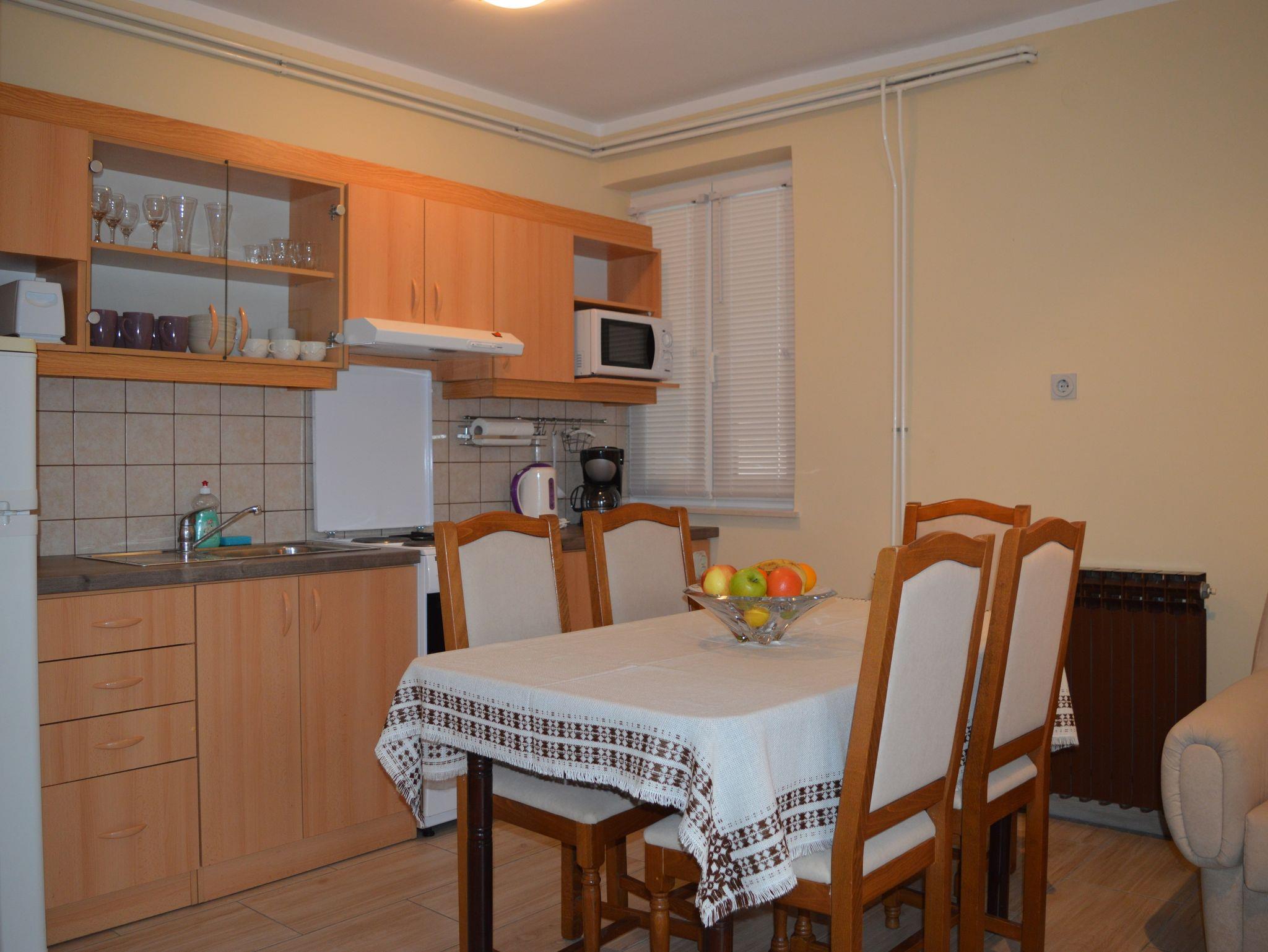 Umgebung des Objekts (Ordentlich), Hof (600m2, Sitzbereich), Parkplatz (Anzahl der Parkplätze: 5, Entfernung vom Objekt: im Hof), Grill: gemeinsam, WiFi Internet, Föhn, Bügeleisen, Bügelbrett, Tragbarer Grill, Kinderbett