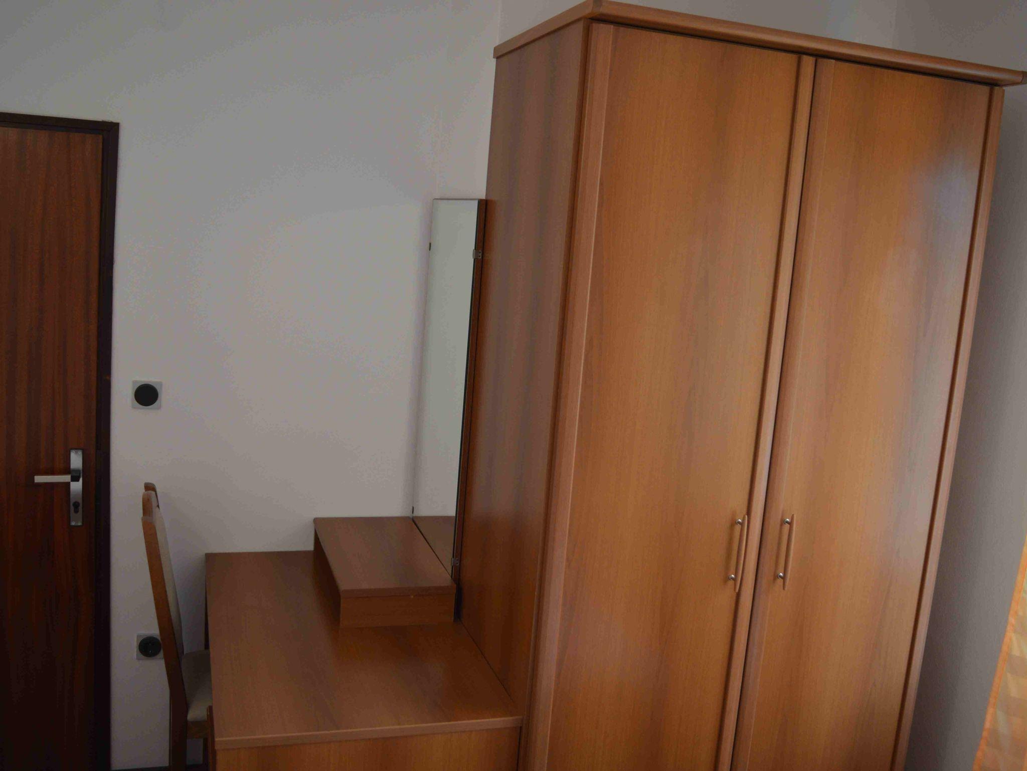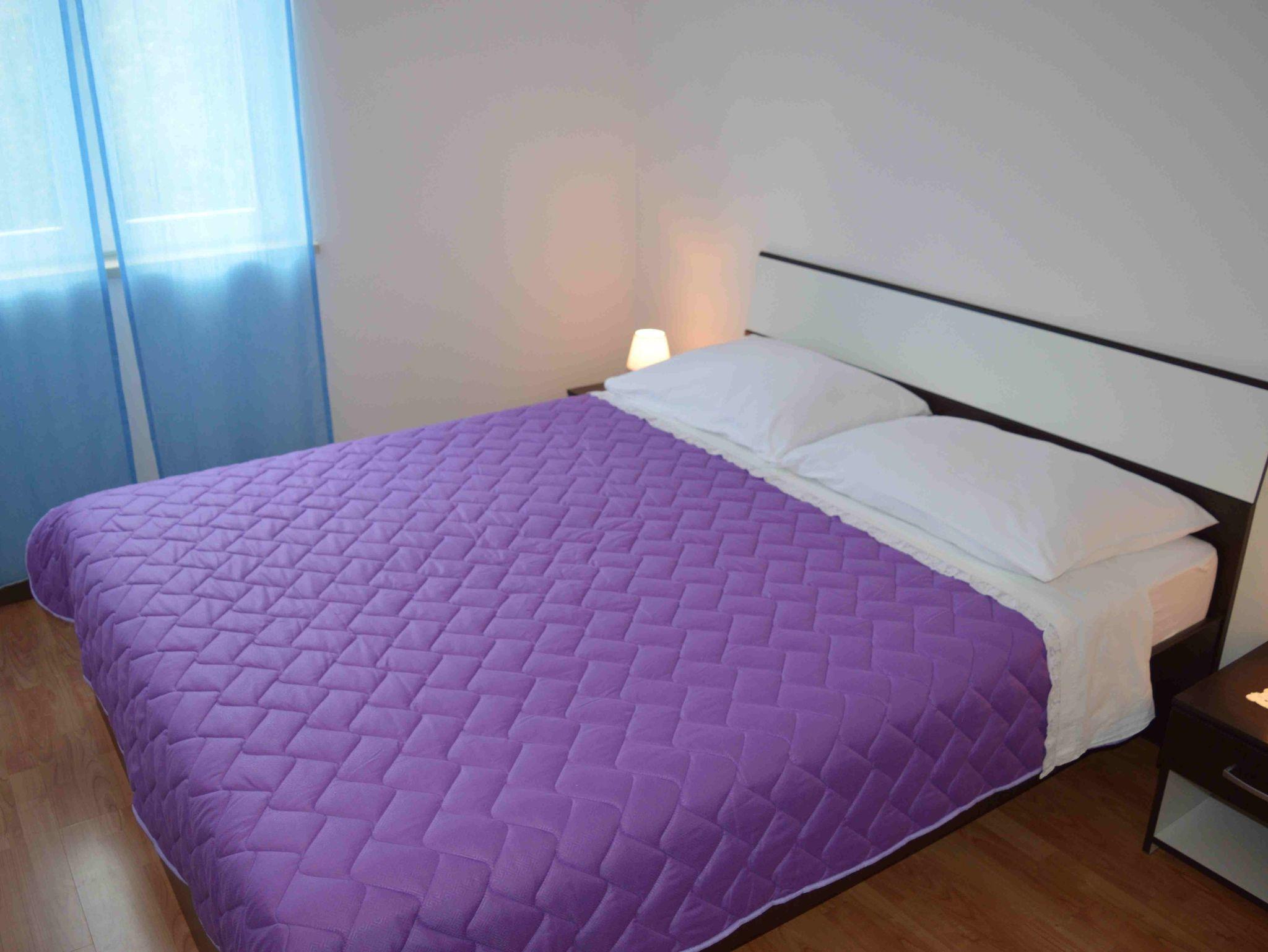 Ferienwohnung bietet Platz für 4 Gäste. Die Betten sind in Schlafzimmern, die es 2 gibt, innerhalb einer Gesamtfläche von 53m2, angeordnet. Die Gäste haben eine eigene Terrasse zur Verfügung, auf der sie in warmen Sommernächten genießen können. Es ist erlaubt, Speisen auf dem Gemeinschafts-Grill vorzubereiten. In der Unterkunftseinheit besteht die Möglichkeit des Mitbringens von Haustieren gegen Aufpreis. IM PREIS INBEGRIFFEN: Kurtaxe, Endreinigung, Klimatisierung, Zentralheizung, Parkplatz, Internet, Kinderbett, Bügeleisen, Bügelbrett, Föhn, tragbarer Grill. VERBINDLICHE ZUSÄTZLICHE KOSTEN: Aufzahlung für Kurzaufenthalte (prozentualer Zuschlag pro Nächtigungsanzahl: 30% - 1, 20% - 2, 10% - 3). UNVERBINDLICHE ZUSÄTZLICHE KOSTEN: Haustiere (8,00 € pro Nacht). Die Verfügbarkeit zusätzlicher Dienstleistungen in Ihrem reservierten Termin und die Preise derselben (falls nicht aufgeführt) müssen im Voraus überprüft werden. Zusätzliche Dienstleistungen die in der Zahlungsaufforderung nicht aufgeführt sind werden direkt beim Vermieter bezahlt, angenommen der Gast nutzt auch diese.