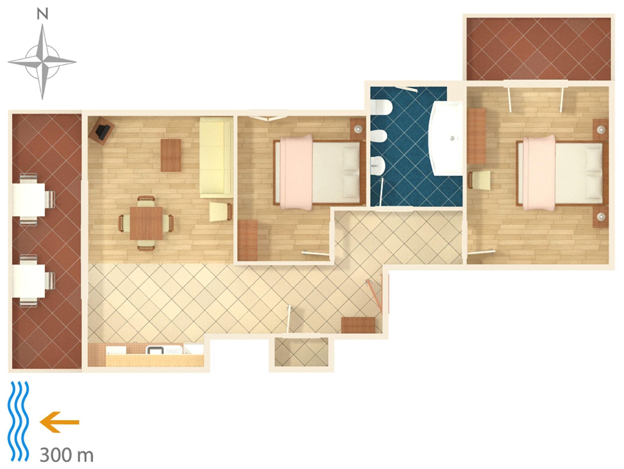 Ferienwohnung bietet Platz für 6 Gäste. Die Betten sind in Schlafzimmern, die es 2 gibt, und in Wohnzimmer, innerhalb einer Gesamtfläche von 57m2, angeordnet. Die Gäste haben eine eigene Terrasse zur Verfügung, auf der sie in warmen Sommernächten genießen können. Das Apartment bietet Meerblick. Es ist erlaubt, Speisen auf dem Gemeinschafts-Grill vorzubereiten. In der Unterkunftseinheit besteht die Möglichkeit des Mitbringens von Haustieren gegen Aufpreis. IM PREIS INBEGRIFFEN: Kurtaxe, Endreinigung, Parkplatz, Internet, Wäschewaschen, Kinderbett, Föhn. VERBINDLICHE ZUSÄTZLICHE KOSTEN: Aufzahlung für Kurzaufenthalte (prozentualer Zuschlag pro Nächtigungsanzahl: 30% - 1, 20% - 2, 10% - 3). UNVERBINDLICHE ZUSÄTZLICHE KOSTEN: Frühstück (7,00 €, 50% Nachlass für Kinder zwischen 4 und 12 Jahren, Kinder bis 4 Jahre sind frei.), Klimatisierung (6,00 € pro Nacht), Haustiere (5,00 € pro Nacht), Zusatzbett (5,00 € pro Nacht). Die Verfügbarkeit zusätzlicher Dienstleistungen in Ihrem reservierten Termin und die Preise derselben (falls nicht aufgeführt) müssen im Voraus überprüft werden. Zusätzliche Dienstleistungen die in der Zahlungsaufforderung nicht aufgeführt sind werden direkt beim Vermieter bezahlt, angenommen der Gast nutzt auch diese.