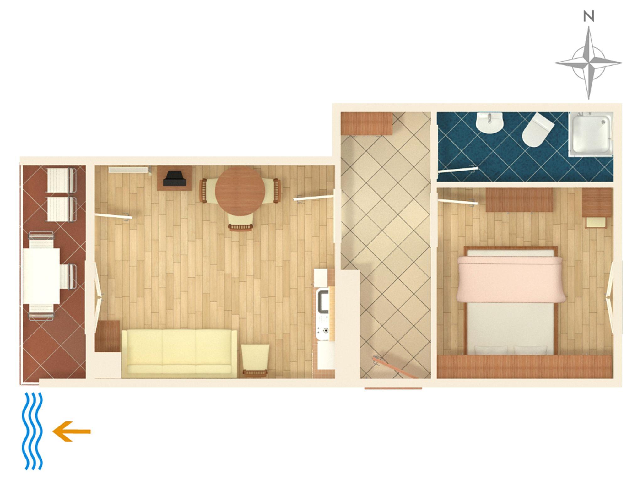 Ferienwohnung bietet Platz für 4 Gäste. Die Betten sind in Schlafzimmern, die es 1 gibt, und in Wohnzimmer, innerhalb einer Gesamtfläche von 35m2, angeordnet. Die Gäste haben einen eigenen Balkon zur Verfügung, auf der sie in warmen Sommernächten genießen können. Das Apartment bietet Meerblick. Es ist erlaubt, Speisen auf dem Gemeinschafts-Grill vorzubereiten. In der Unterkunftseinheit besteht die Möglichkeit des Mitbringens von Haustieren gegen Aufpreis. IM PREIS INBEGRIFFEN: Kurtaxe, Endreinigung, Klimatisierung, Zentralheizung, Parkplatz, Internet, Wäschewaschen. VERBINDLICHE ZUSÄTZLICHE KOSTEN: Aufzahlung für Kurzaufenthalte (prozentualer Zuschlag pro Nächtigungsanzahl: 30% - 1, 20% - 2, 10% - 3). UNVERBINDLICHE ZUSÄTZLICHE KOSTEN: Haustiere (5,00 € pro Nacht). Die Verfügbarkeit zusätzlicher Dienstleistungen in Ihrem reservierten Termin und die Preise derselben (falls nicht aufgeführt) müssen im Voraus überprüft werden. Zusätzliche Dienstleistungen die in der Zahlungsaufforderung nicht aufgeführt sind werden direkt beim Vermieter bezahlt, angenommen der Gast nutzt auch diese. Ermäßigung auf den Grundpreis: Gratistag 14=13 (bei einem Aufenthalt von 14 Tagen oder mehr erhalten Sie einen Gratistag für den Aufenthalt bis 31.12.26).