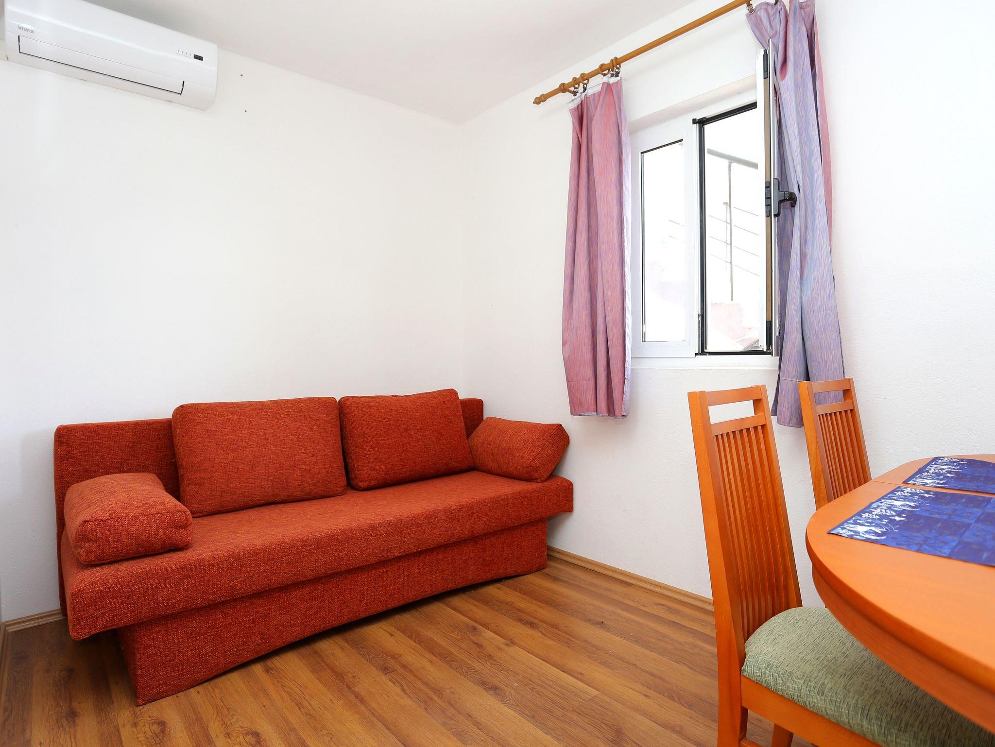 Ferienwohnung bietet Platz für 4 Gäste. Die Betten sind in Schlafzimmern, die es 1 gibt, und in Wohnzimmer, innerhalb einer Gesamtfläche von 28m2, angeordnet. Es ist erlaubt, Speisen auf dem Gemeinschafts-Grill vorzubereiten. Die reservierte Unterkunftseinheit hat keinen Balkon und keine Terrasse. IM PREIS INBEGRIFFEN: Kurtaxe, Endreinigung, Klimatisierung, Parkplatz, Internet, Bügeleisen, Bügelbrett, Föhn, Sonnenschirm, Liegestühle. VERBINDLICHE ZUSÄTZLICHE KOSTEN: Aufzahlung für Kurzaufenthalte (prozentualer Zuschlag pro Nächtigungsanzahl: 30% - 1, 20% - 2, 10% - 3). Die Verfügbarkeit zusätzlicher Dienstleistungen in Ihrem reservierten Termin und die Preise derselben (falls nicht aufgeführt) müssen im Voraus überprüft werden. Zusätzliche Dienstleistungen die in der Zahlungsaufforderung nicht aufgeführt sind werden direkt beim Vermieter bezahlt, angenommen der Gast nutzt auch diese. Ermäßigung auf den Grundpreis: Gratistag 28=25 (bei einem Aufenthalt von 28 oder mehr Tagen erhalten Sie 3 kostenlose Tage für den Aufenthalt bis 31.12.26).