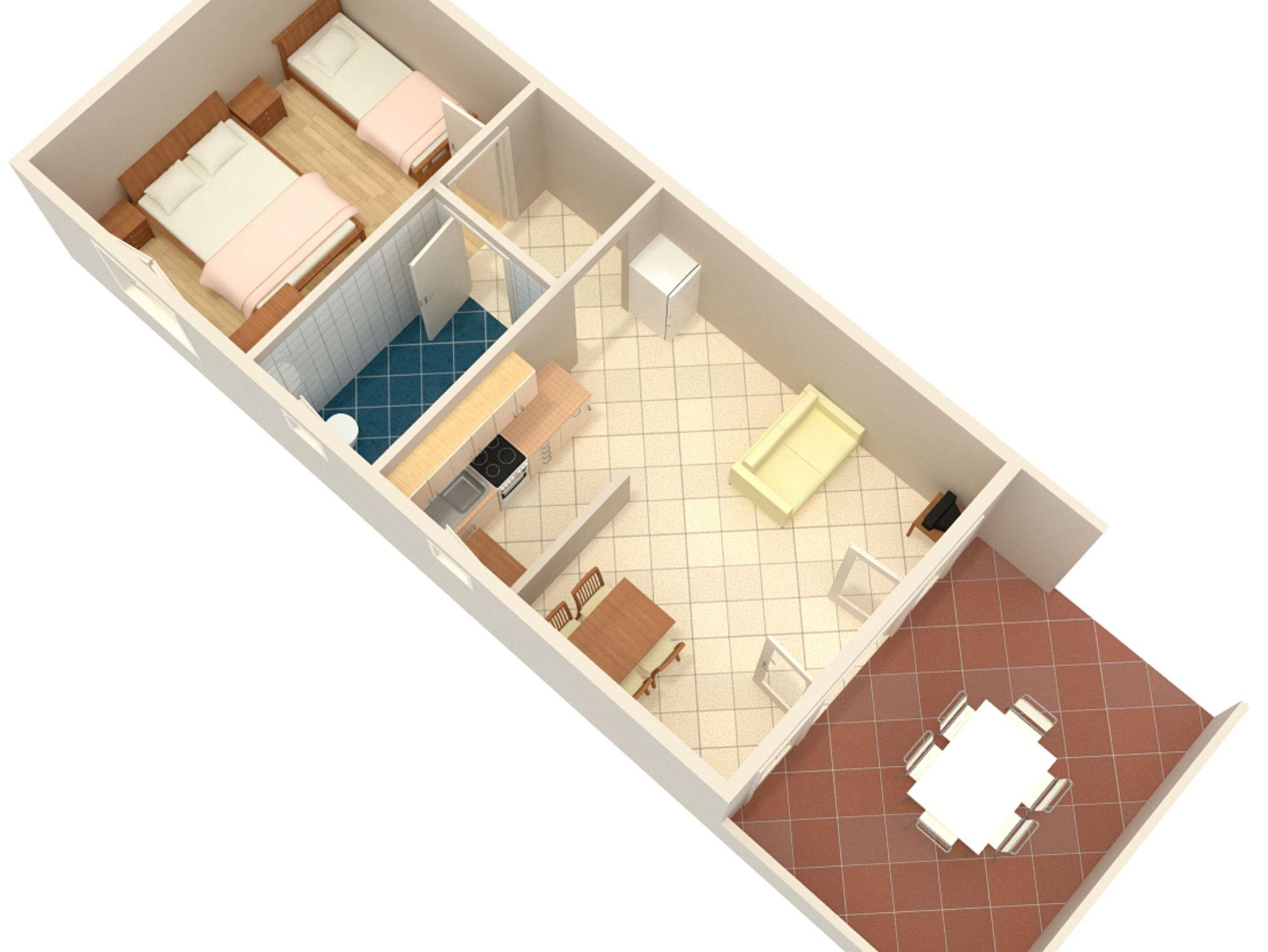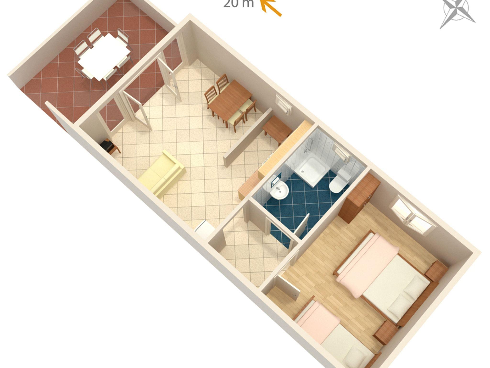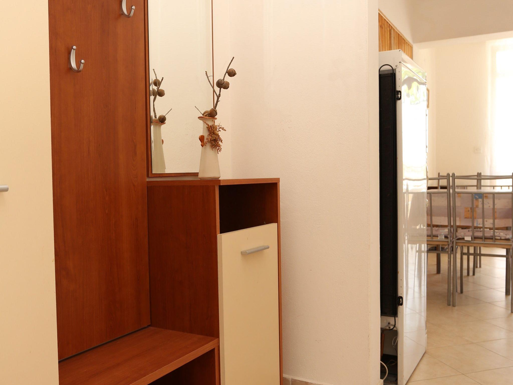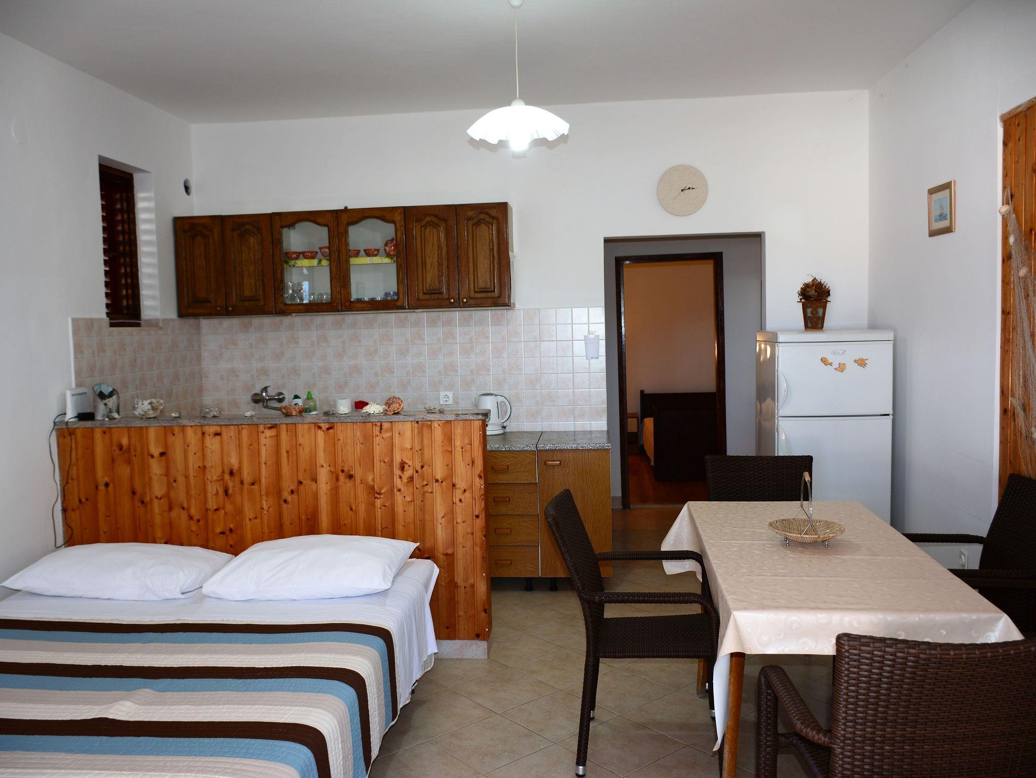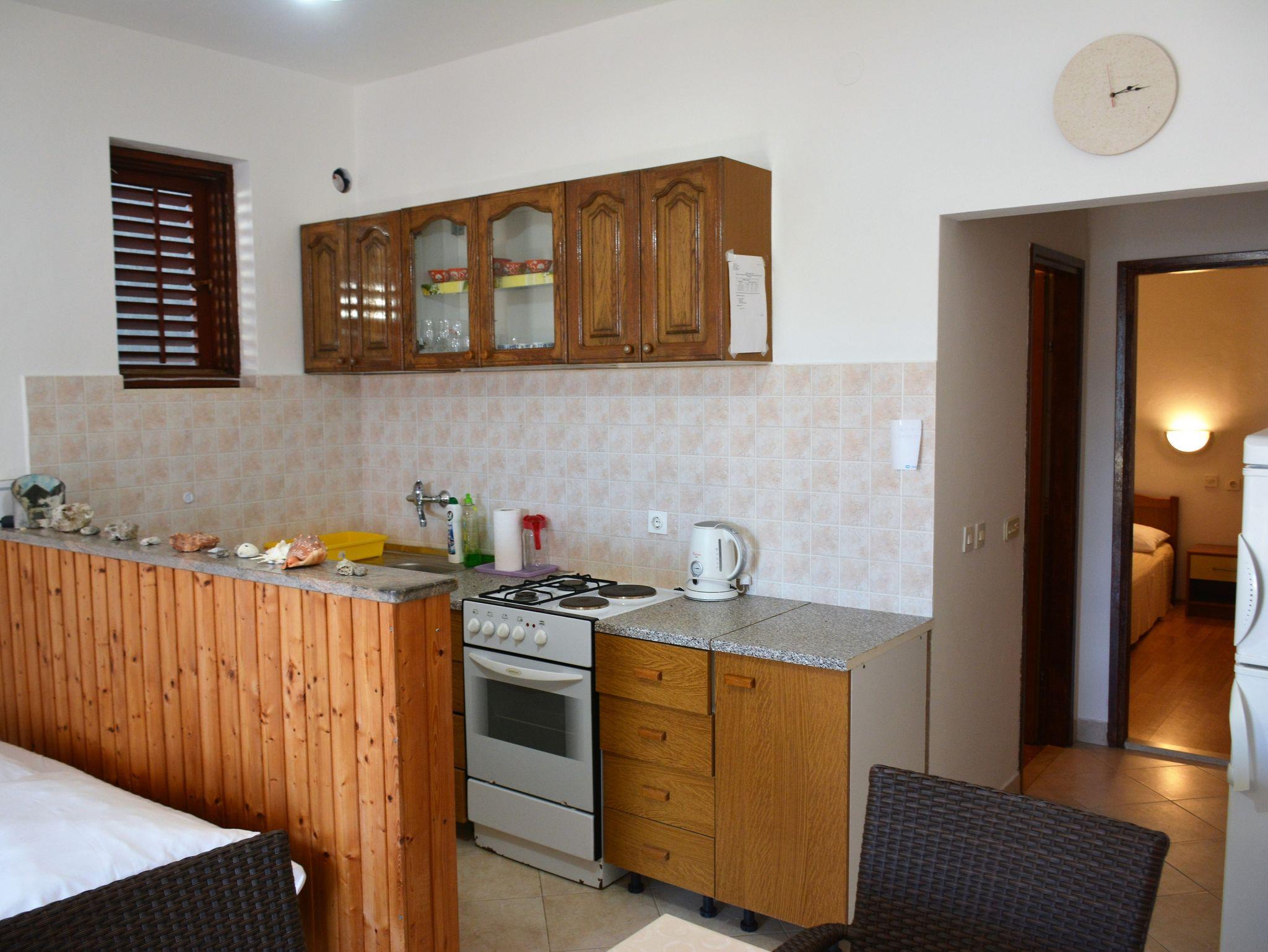 Ferienwohnung bietet Platz für 5 Gäste. Die Betten sind in Schlafzimmern, die es 1 gibt, und in Wohnzimmer, innerhalb einer Gesamtfläche von 40m2, angeordnet. Die Gäste haben eine eigene Terrasse zur Verfügung, auf der sie in warmen Sommernächten genießen können. Das Apartment bietet Meerblick. Es ist erlaubt, Speisen auf dem Gemeinschafts-Grill vorzubereiten. Durch die Terrasse der gebuchten Unterkunftseinheit gehen auch andere Gäste oder Vermieter. IM PREIS INBEGRIFFEN: Kurtaxe, Endreinigung, Klimatisierung, Parkplatz, Internet, Bootsanlegeplatz, Bügeleisen, Bügelbrett, Liegestühle. VERBINDLICHE ZUSÄTZLICHE KOSTEN: Aufzahlung für Kurzaufenthalte (prozentualer Zuschlag pro Nächtigungsanzahl: 30% - 1, 20% - 2, 10% - 3). Die Verfügbarkeit zusätzlicher Dienstleistungen in Ihrem reservierten Termin und die Preise derselben (falls nicht aufgeführt) müssen im Voraus überprüft werden. Zusätzliche Dienstleistungen die in der Zahlungsaufforderung nicht aufgeführt sind werden direkt beim Vermieter bezahlt, angenommen der Gast nutzt auch diese. Ermäßigung auf den Grundpreis: Gratistag 14=13 (bei einem Aufenthalt von 14 Tagen oder mehr erhalten Sie einen Gratistag für den Aufenthalt bis 31.12.26).