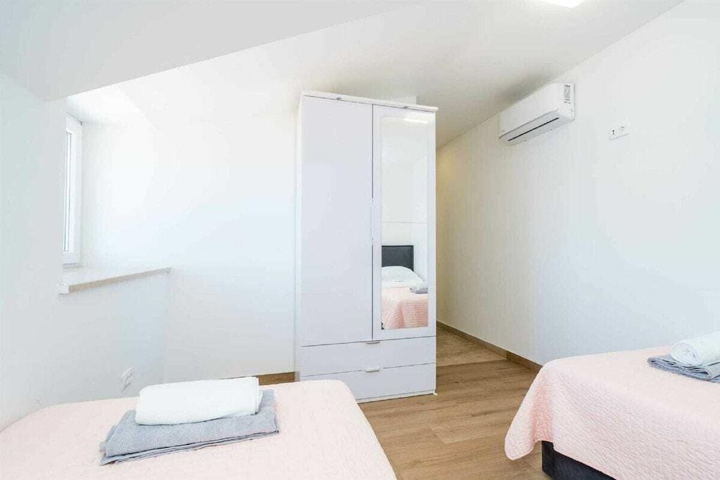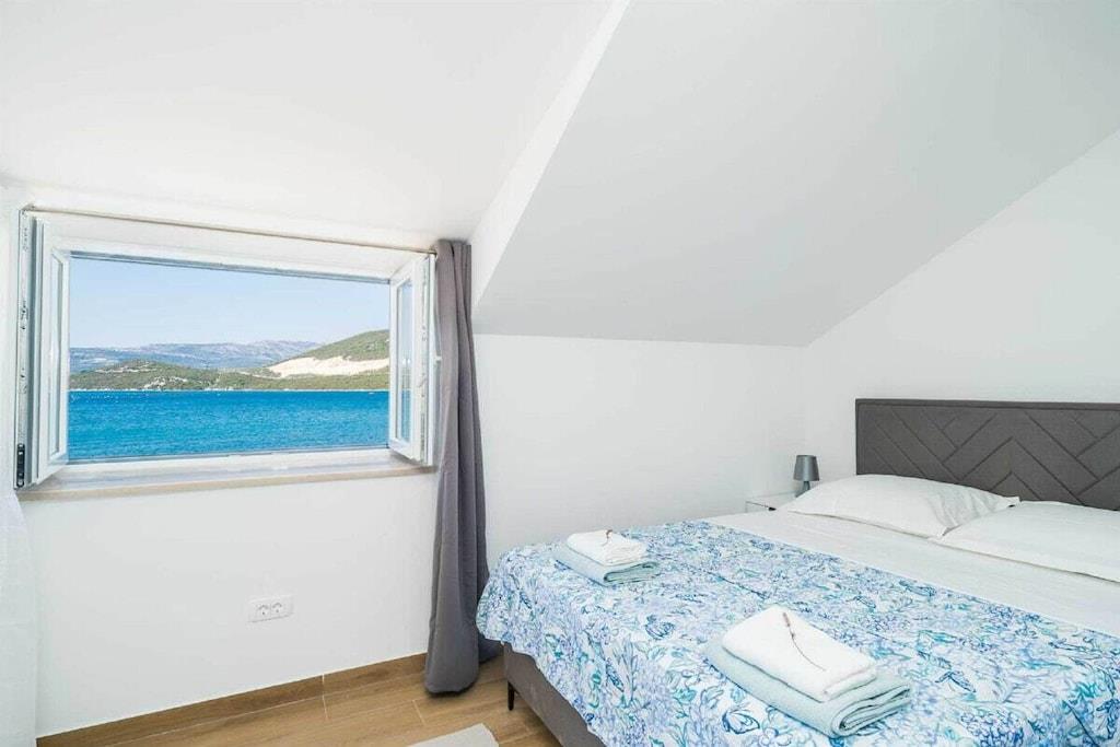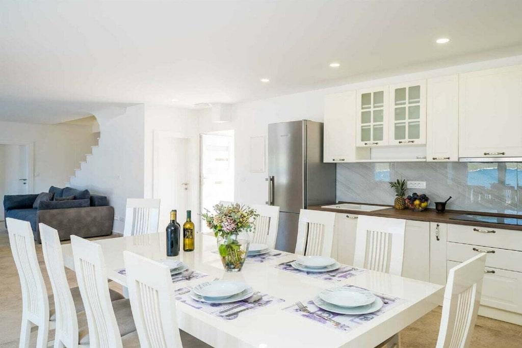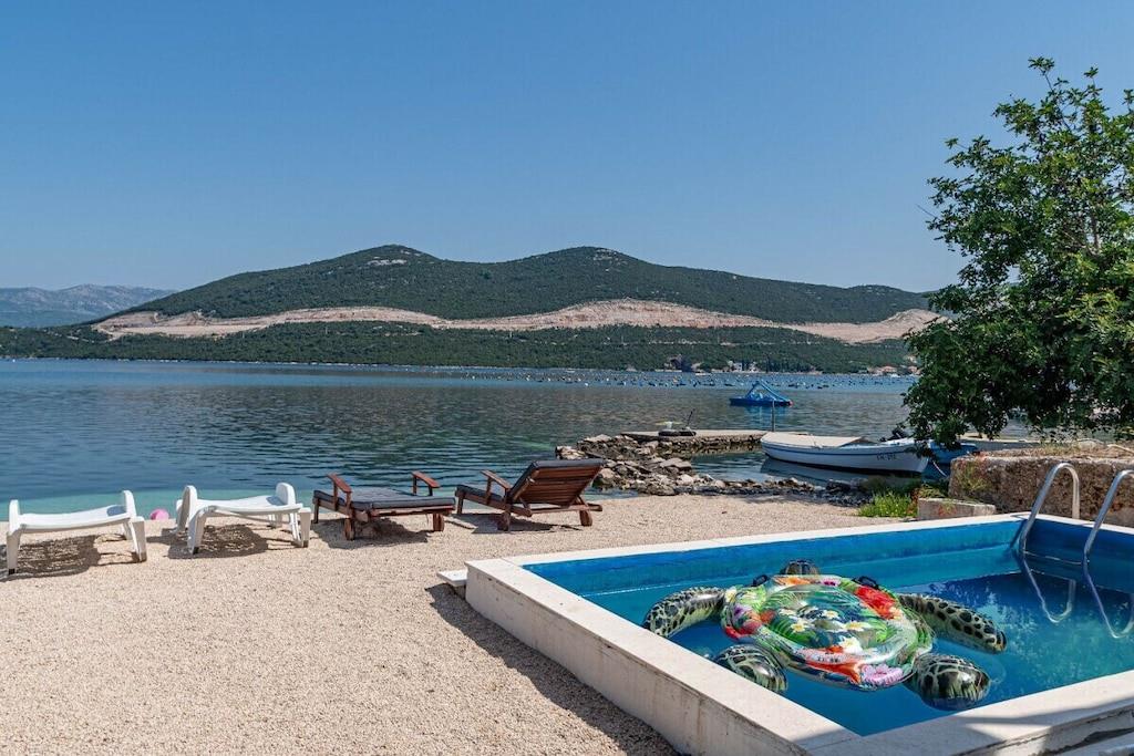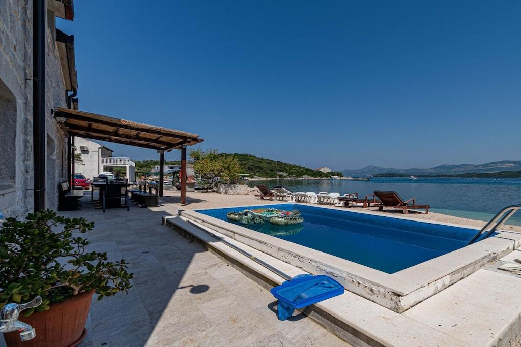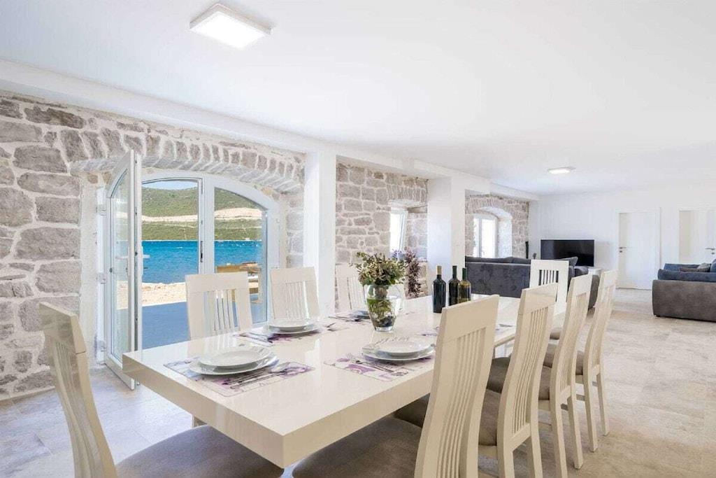 Diese außergewöhnliche Strandvilla wird Ihnen mit ihrer Lage den Atem rauben. Es ist eine 130 Jahre alte traditionelle dalmatinische Olivenmühle, die in eine Steinvilla umgebaut wurde, die am besten für 8-10 Gäste geeignet ist. Im Erdgeschoss befindet sich eine voll ausgestattete moderne Küche mit Essbereich. Der Wohnbereich verfügt über einen Flachbild-Sat-TV und ein Doppelschlafsofa für 2 Personen. Dieser ganze Bereich hat einen Ausgang zum Poolbereich und Strand, der direkt vor dem Haus liegt. Es gibt auch eine Toilette und eine Waschgelegenheit. Im ersten Stock befinden sich zwei Doppelschlafzimmer mit eigenem Bad und zwei Schlafzimmer mit jeweils zwei Einzelbetten und eigenem Bad. Im Garten finden Sie einen privaten Pool mit Sonnenliegen und Sonnenschirm, Grill mit Außensitzplatz und Spielplatz mit Schaukel und Rutsche. Das gesamte Anwesen ist mit WIFI und AC-Einheiten in jedem Zimmer ausgestattet. Es gibt einen kostenlosen privaten Parkplatz für drei Autos. Der Strand ist nur 5 Meter entfernt. Bootsliegeplätze sind ebenfalls vorhanden (2m Tiefgang). Brijesta ist ein Dorf in der Gemeinde Ston. Die Gespanschaft Dubrovnik-Neretva ist der südlichste Teil Kroatiens und umfasst die Halbinsel Pelješac (65 km lang). Die Bucht von Mali Ston trennt das Festland von Pelješac. Ston ist bekannt für seine zweitlängsten Mauern in Europa. 24 km nördlich von Ston (oder 75 km nördlich von Dubrovnik) liegt dieses friedliche Dorf Brijesta. Brijesta bietet typisches mediterranes Klima, üppige Vegetation und kristallklares Wasser der Adria. Während des 7-Monats-Zeitraums von April bis Oktober (214 Tage) bietet Brijesta durchschnittlich 194 Sonnentage mit mäßig heißem und warmem Wetter.