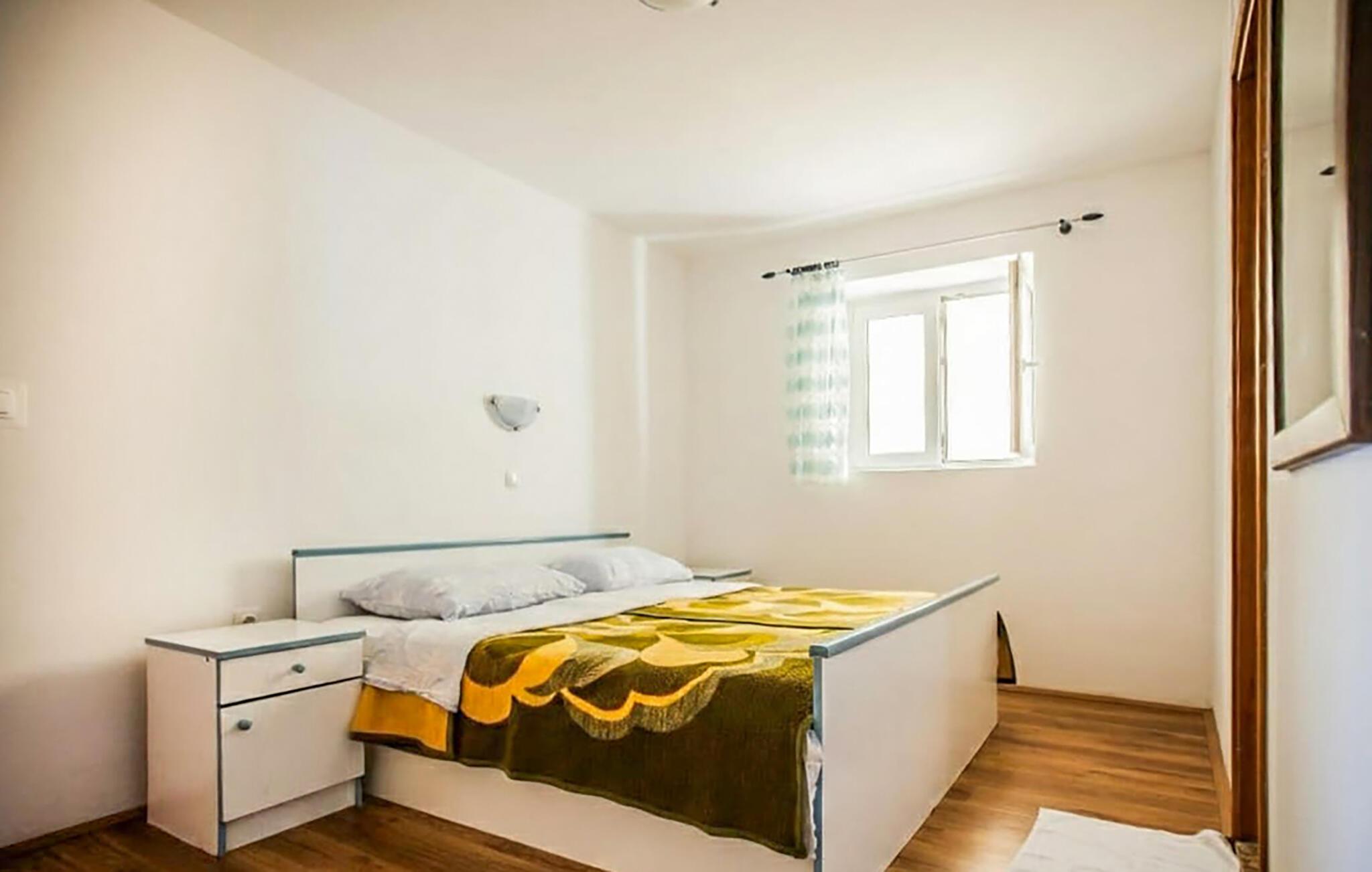 Tilbring solrige dage i denne charmerende ferielejlighed nær stranden. Denne lyse og indbydende lejlighed ligger kun få skridt fra sandstranden og tilbyder et komfortabelt tilflugtssted for par eller små familier, der ønsker at lægge hverdagen langt bag sig under den kroatiske sol. Tilbered lækre måltider med råvarer fra markedet, saml jer omkring det indbydende spisebord og planlæg jeres aktiviteter. Slap af på sofaen efter en lang dag eller nyd et brætspil. Server morgenmad på terrassen, inden I slentrer til stranden for en forfriskende dukkert. Brug den fælles grill til at tilberede en middag under åben himmel og mindes jeres oplevelser over et glas vin. Udforsk den farverige undervandsverden, mens I snorkler, cykl langs kyststierne og tag en bådtur til øerne Prvic eller Goli Otok. Slentr gennem den gamle bydel i Rab med dens historiske kirker og snoede gader, vandr gennem den skyggefulde Lopar-skov eller Velebit-bjergene og lad jer servere kroatiske retter i hyggelige taverner.