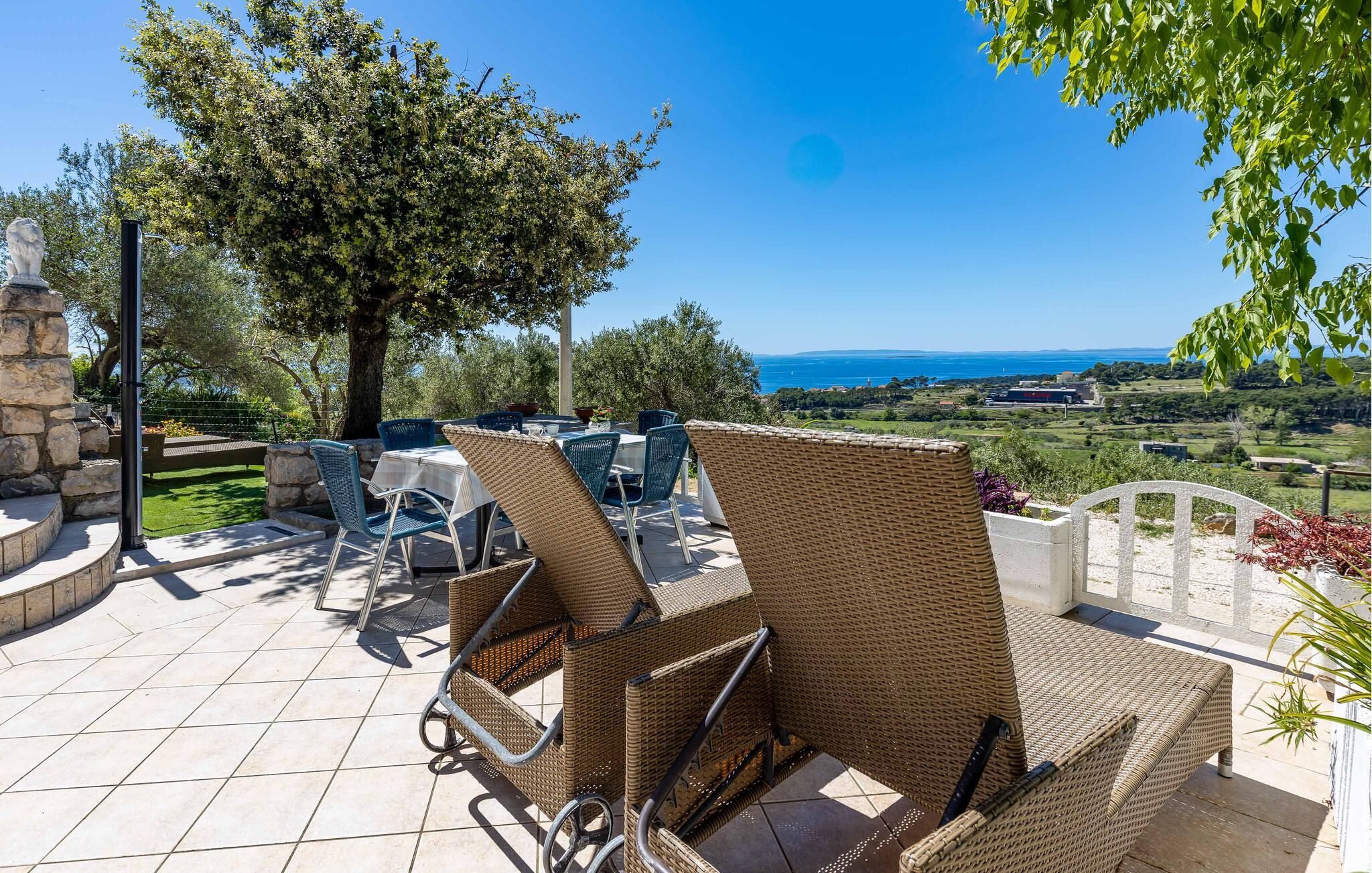 Den rummelige terrasse er særligt indbydende og et dejligt sted til udendørs spisning, solbadning eller blot at nyde den betagende natur.