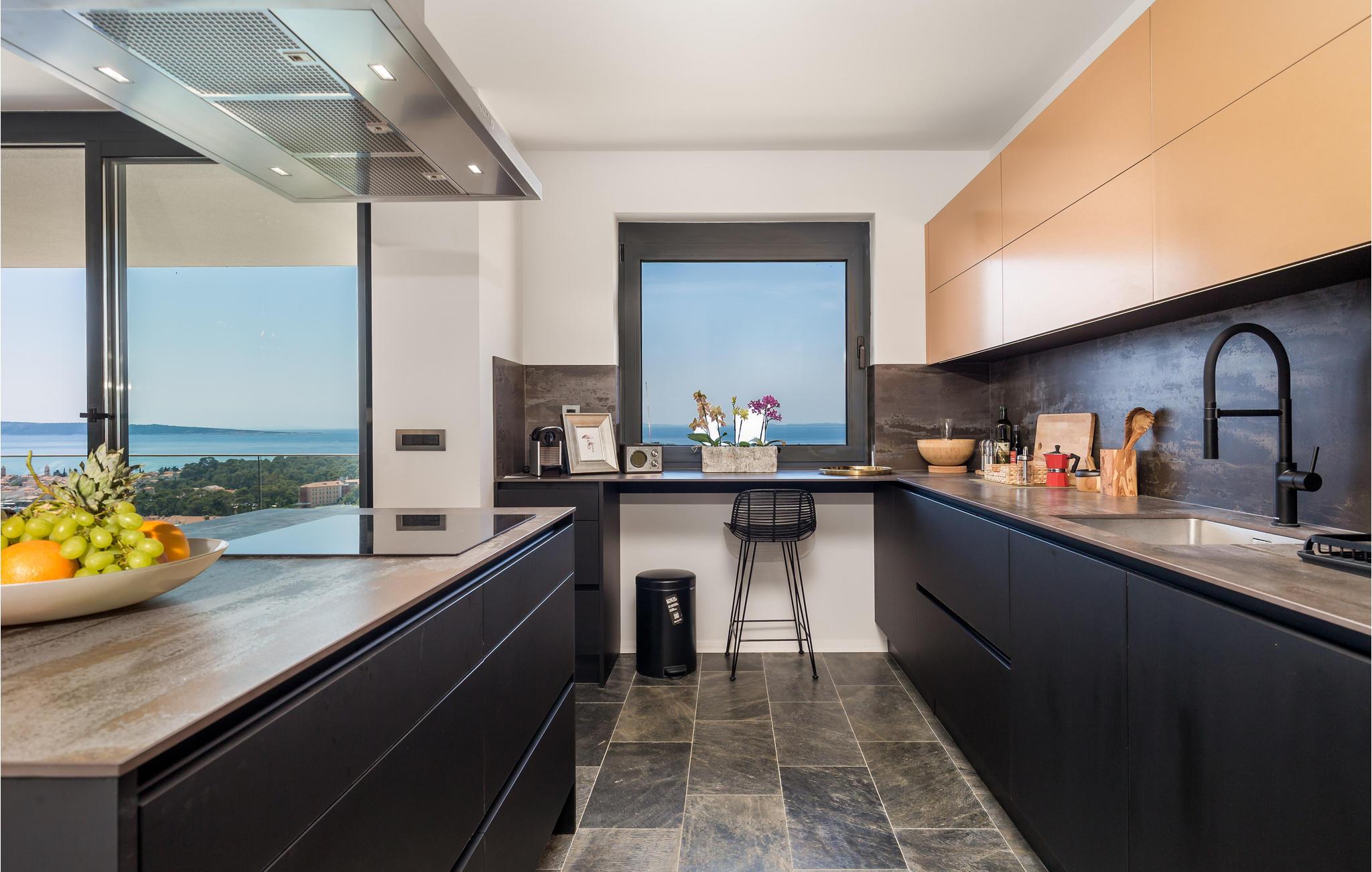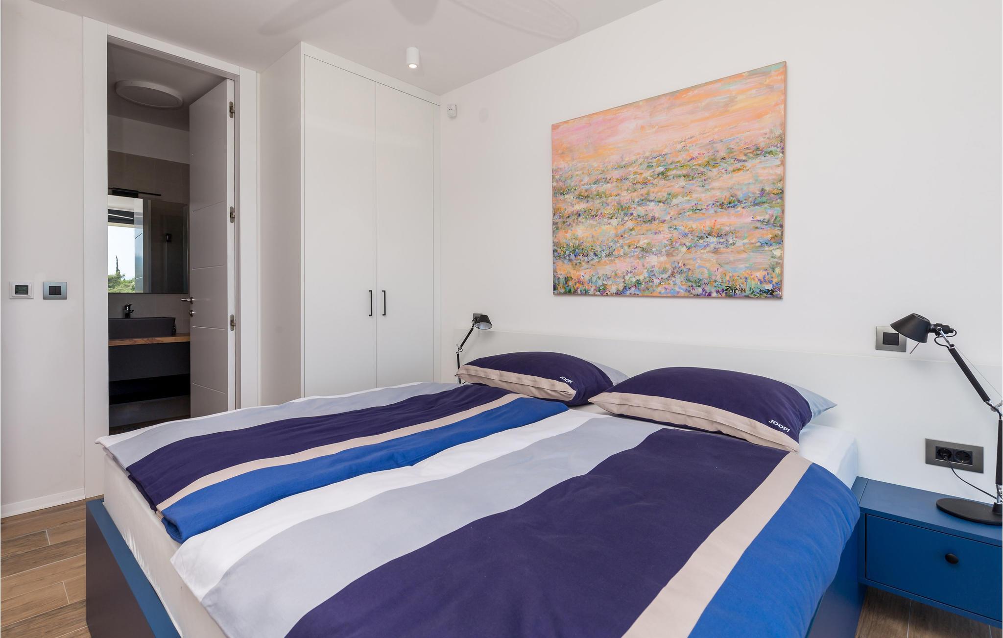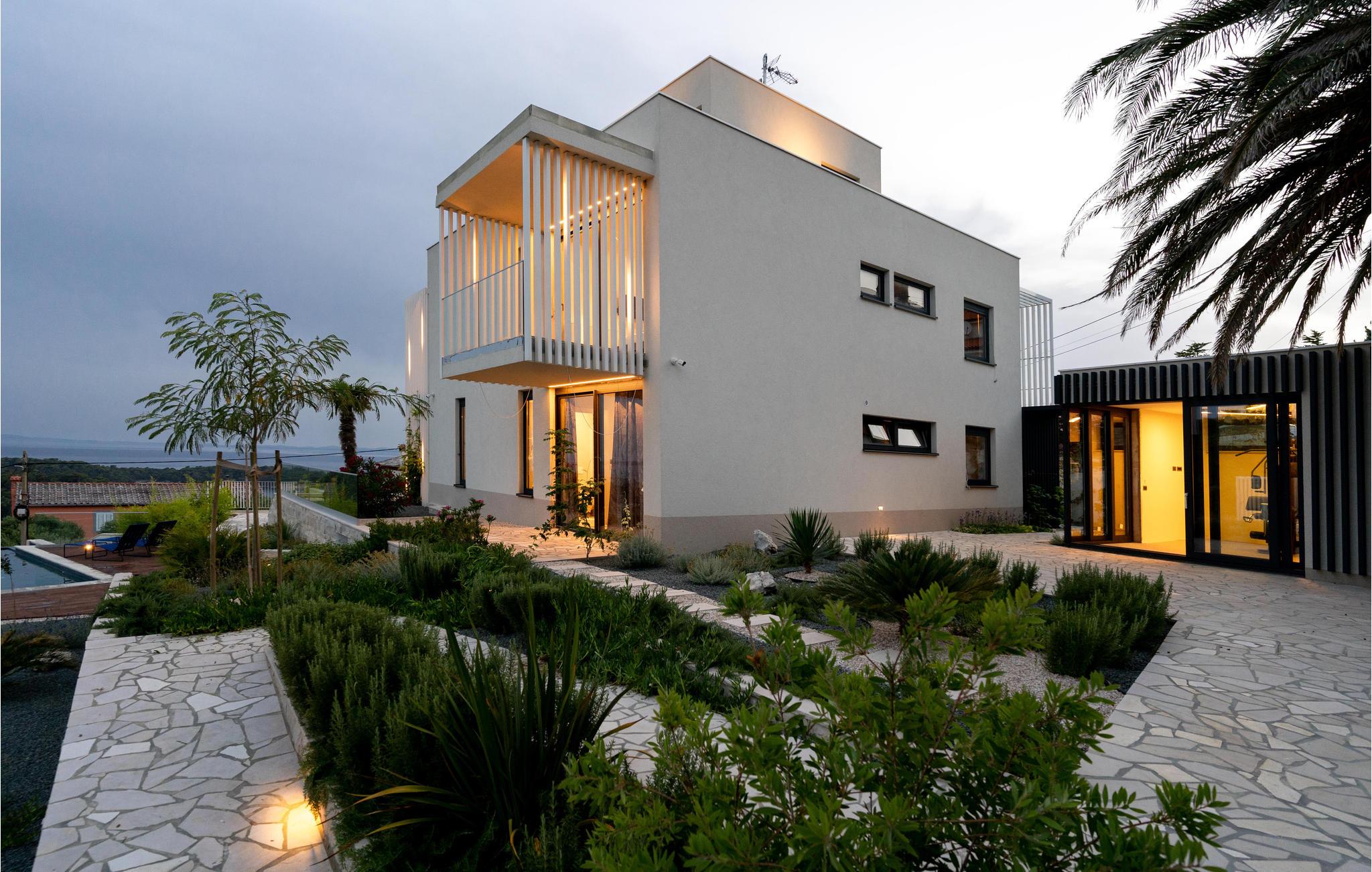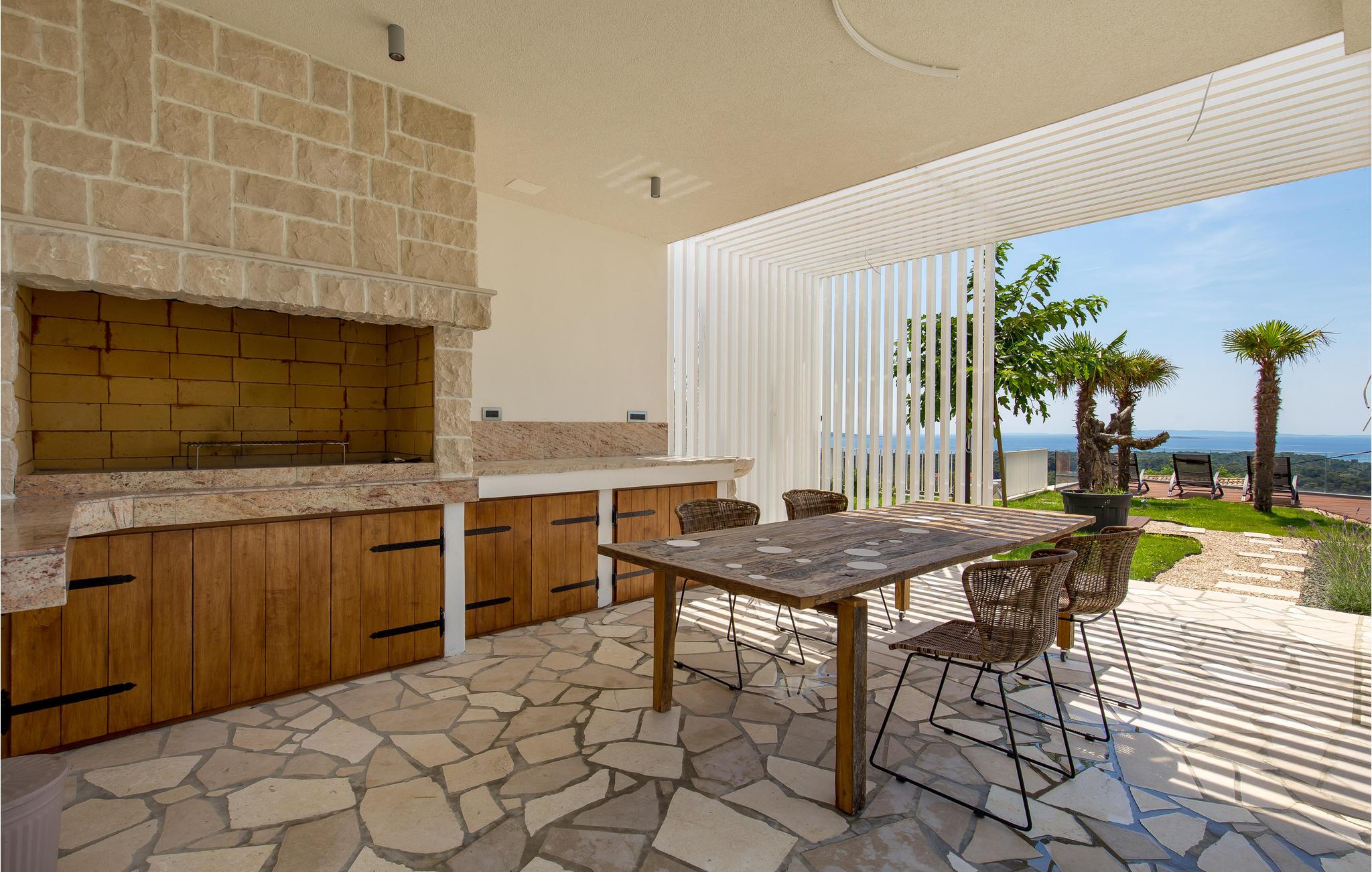 Kom til dette fantastiske feriehus med jeres venner eller udvidede familie og oplev en helt speciel ferie. I finder her et unikt interiør og eksteriør med masser af planter, som skaber den helt rigtige feriestemning, og med det samme får jer til at føle jer hjemme. På grund af den udvendige forbindelse mellem stueetagen og 1. sal kan I benytte denne lejlighed separat, hvis I er flere familier, der rejser sammen. Tilbring utallige timer i det veludstyrede sommerkøkken med grill, der ligger lige ved siden af poolen. Herfra har I en vidunderlig panoramaudsigt over byen Rab og havet og kan virkelig slappe af og komme ned i gear. Bag huset er der et fitnessområde for dem, der ønsker at holde sig i form, mens de er på ferie.