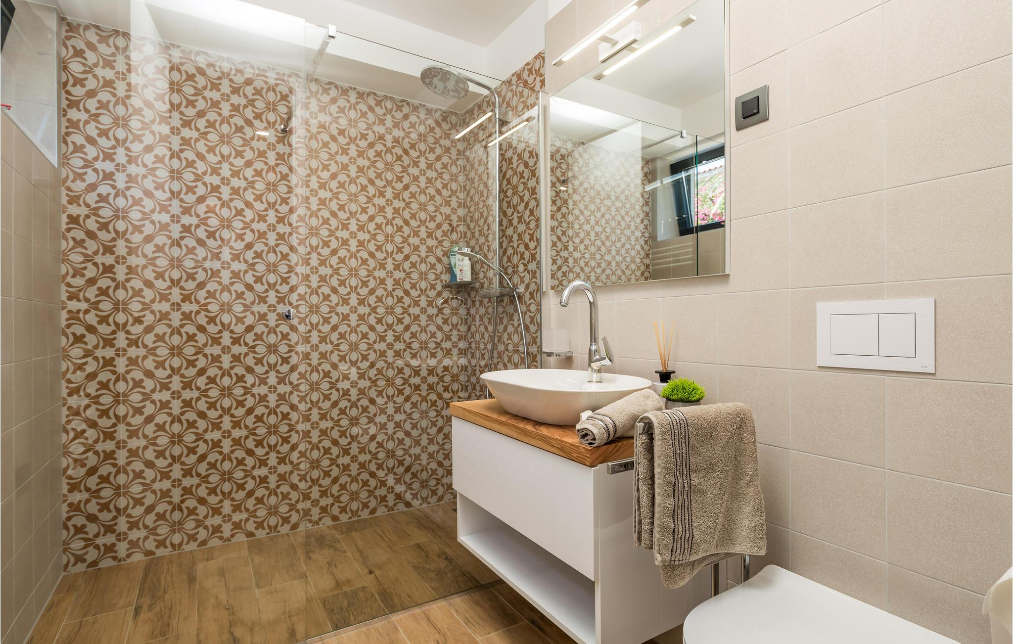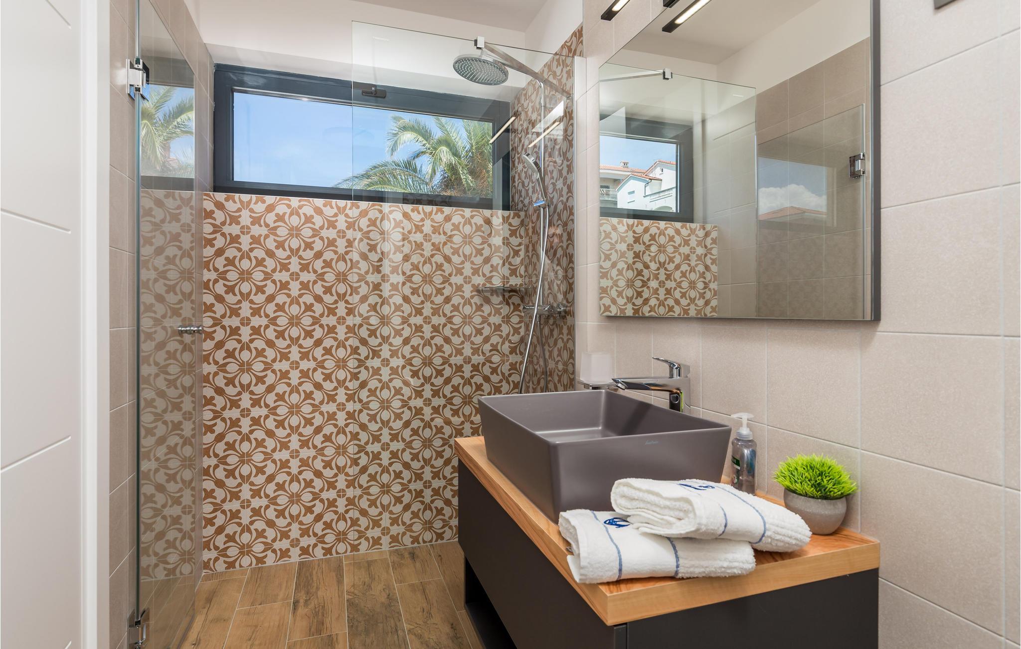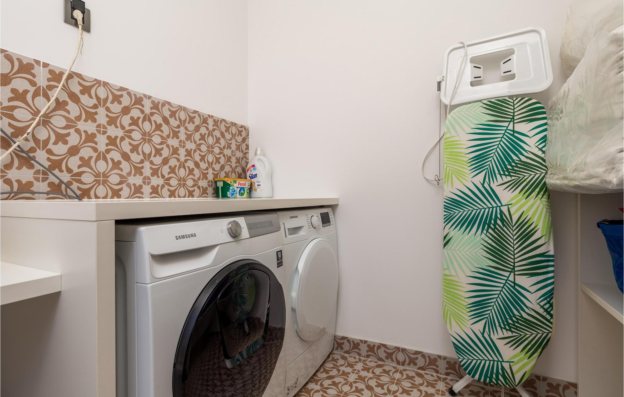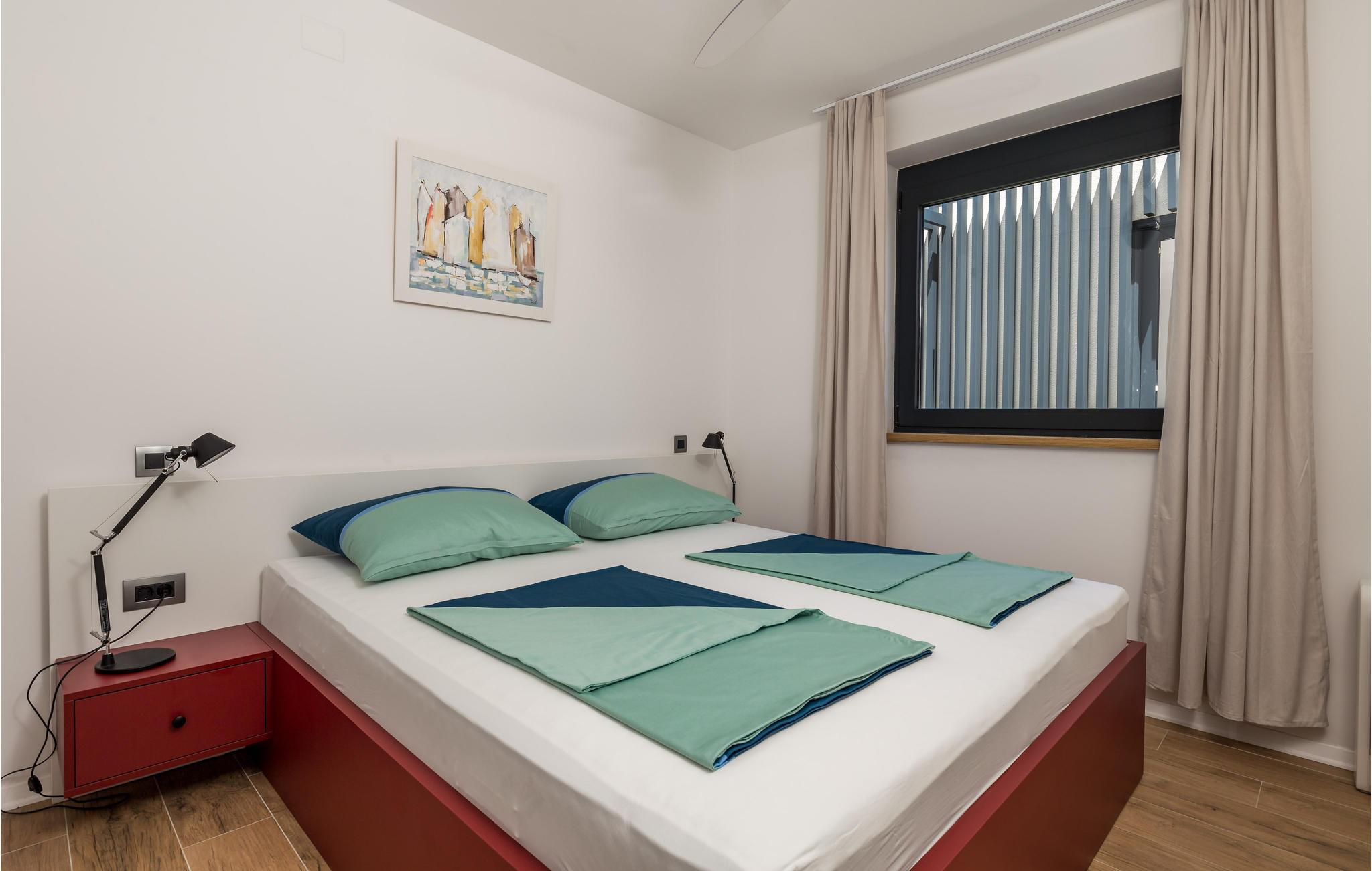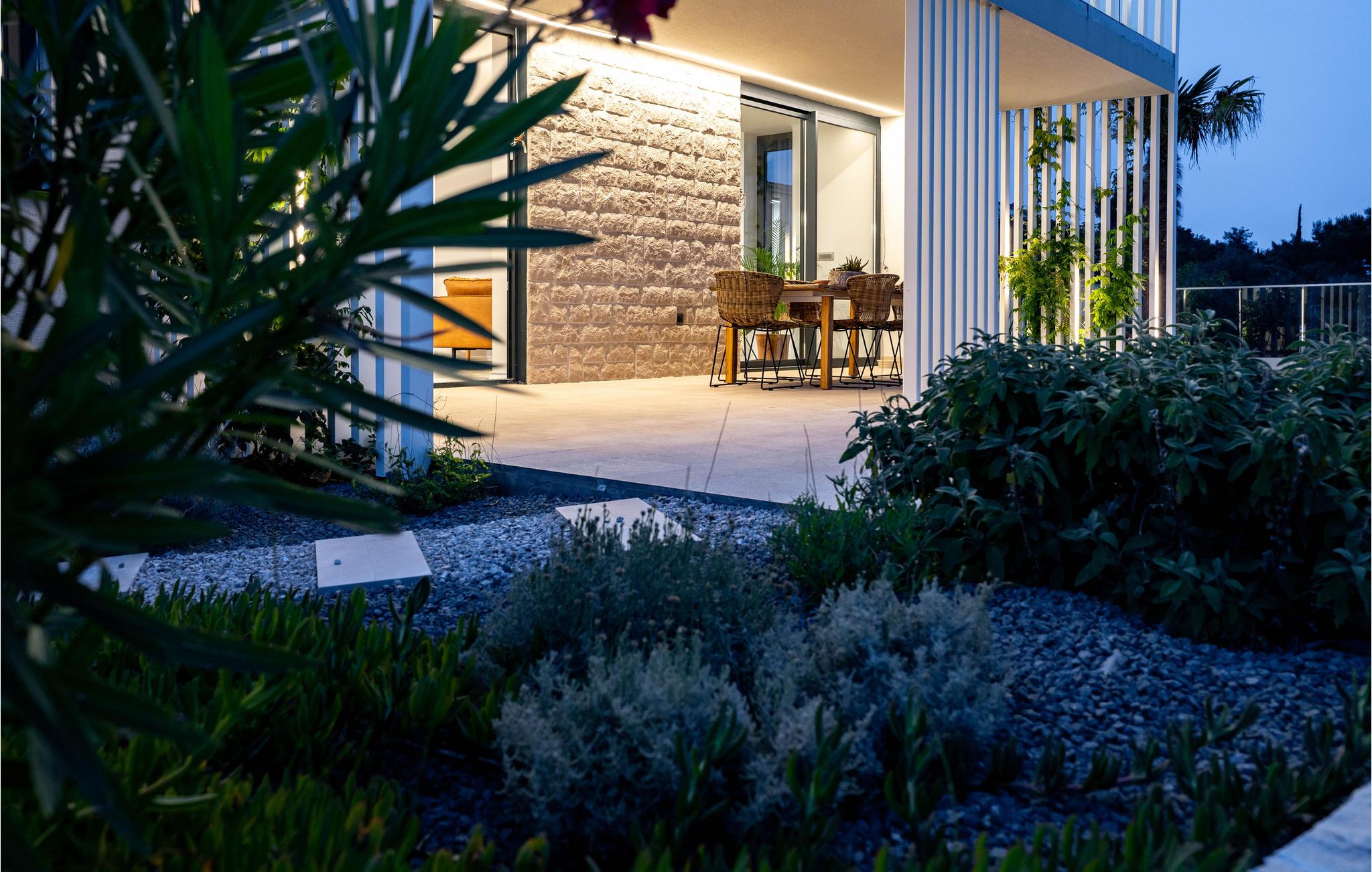 Kom til dette fantastiske feriehus med jeres venner eller udvidede familie og oplev en helt speciel ferie. I finder her et unikt interiør og eksteriør med masser af planter, som skaber den helt rigtige feriestemning, og med det samme får jer til at føle jer hjemme. På grund af den udvendige forbindelse mellem stueetagen og 1. sal kan I benytte denne lejlighed separat, hvis I er flere familier, der rejser sammen. Tilbring utallige timer i det veludstyrede sommerkøkken med grill, der ligger lige ved siden af poolen. Herfra har I en vidunderlig panoramaudsigt over byen Rab og havet og kan virkelig slappe af og komme ned i gear. Bag huset er der et fitnessområde for dem, der ønsker at holde sig i form, mens de er på ferie.