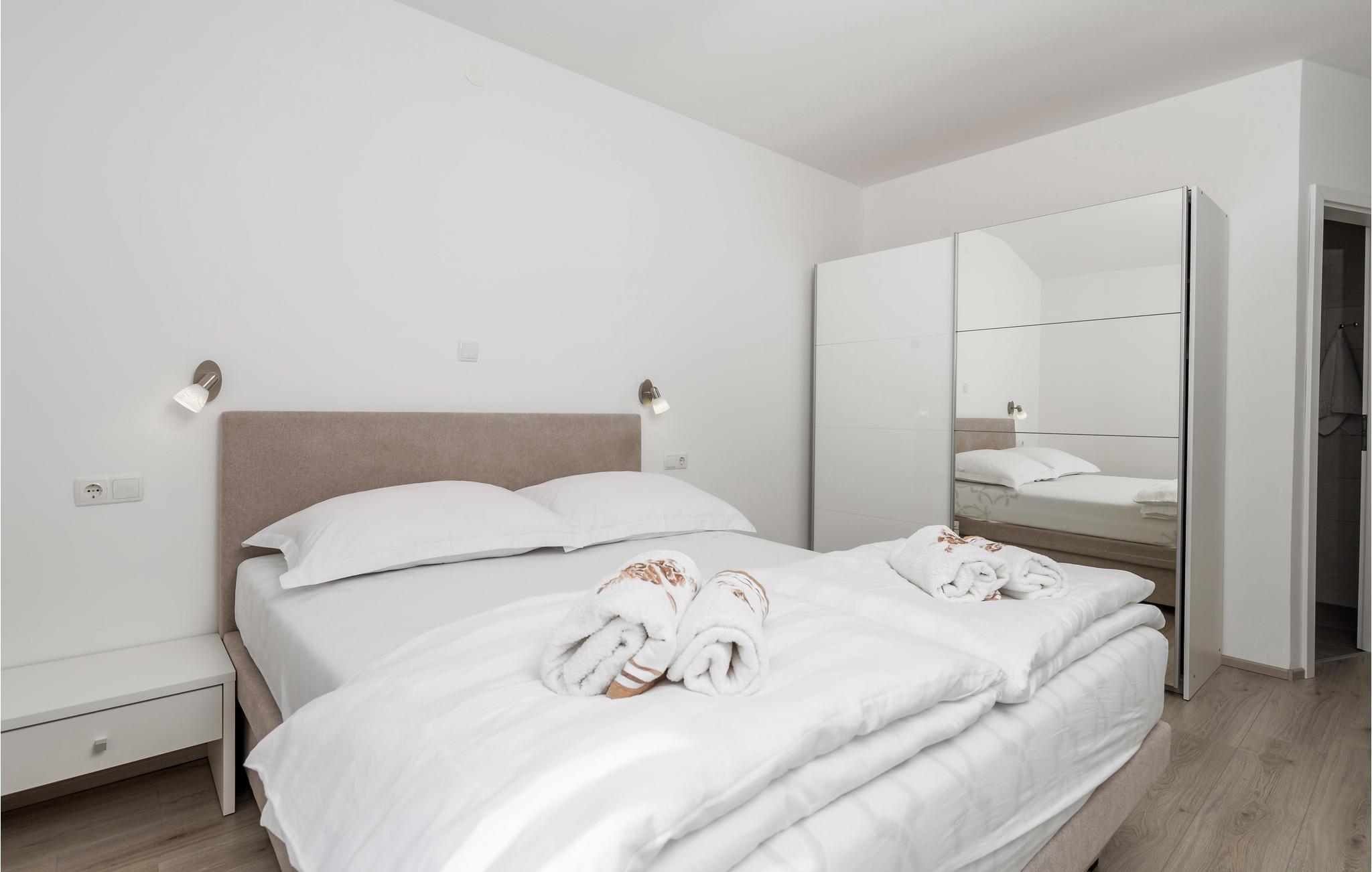 Sandstranden kan nås på få minutter til fods, så I får rig mulighed for at bade og sole. Øen Rab byder på mange oplevelser og aktiviteter, smukke bugter og flotte strande.