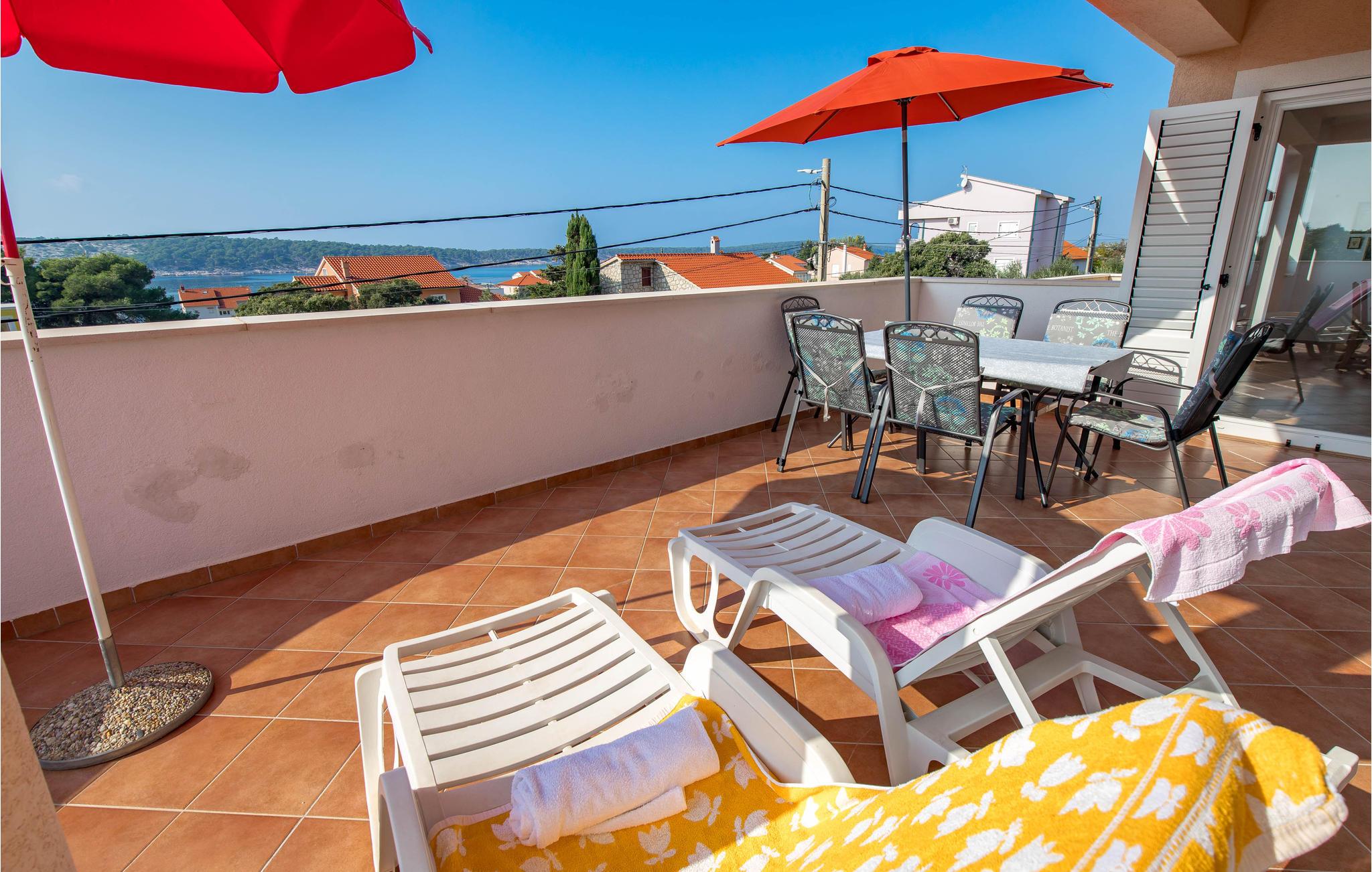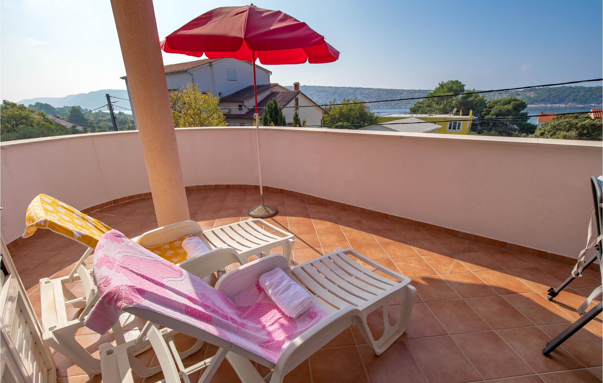 På den sydlige del af øen Rab finder I denne rummelige og moderne indrettede ferielejlighed på første sal med en vidunderlig udsigt over havet.