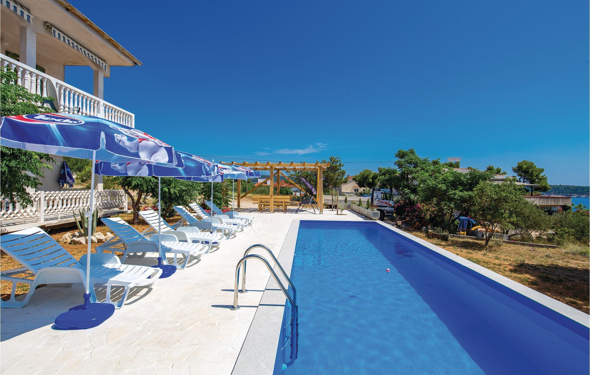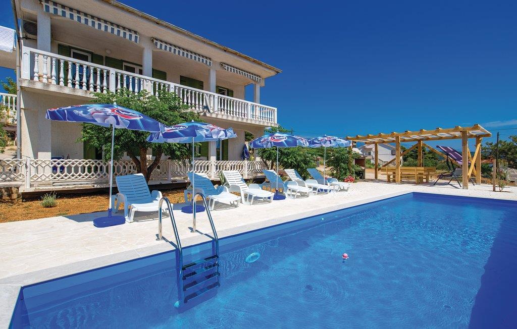 Hold jeres ferie på den solforkælede lille ø Rab, og oplev årets skønneste uger i en dejlig ferielejlighed i byen Barbat. I har adgang til en fælles pool. Denne rummelige ferielejlighed ligger på første sal med en altan hvorfra der er havudsigt. På grunden står en fælles grill, hvor I kan lave nem og lækker feriemad. De nærmeste kiesstrande kan I nå på få minutter, mens den populære sandstrand Pudarica, i begyndelsen af Barbat, forbundet med Rab med en seks kilometer lang promenade, som både elskes af cyklister og de der holder af at gå tur.