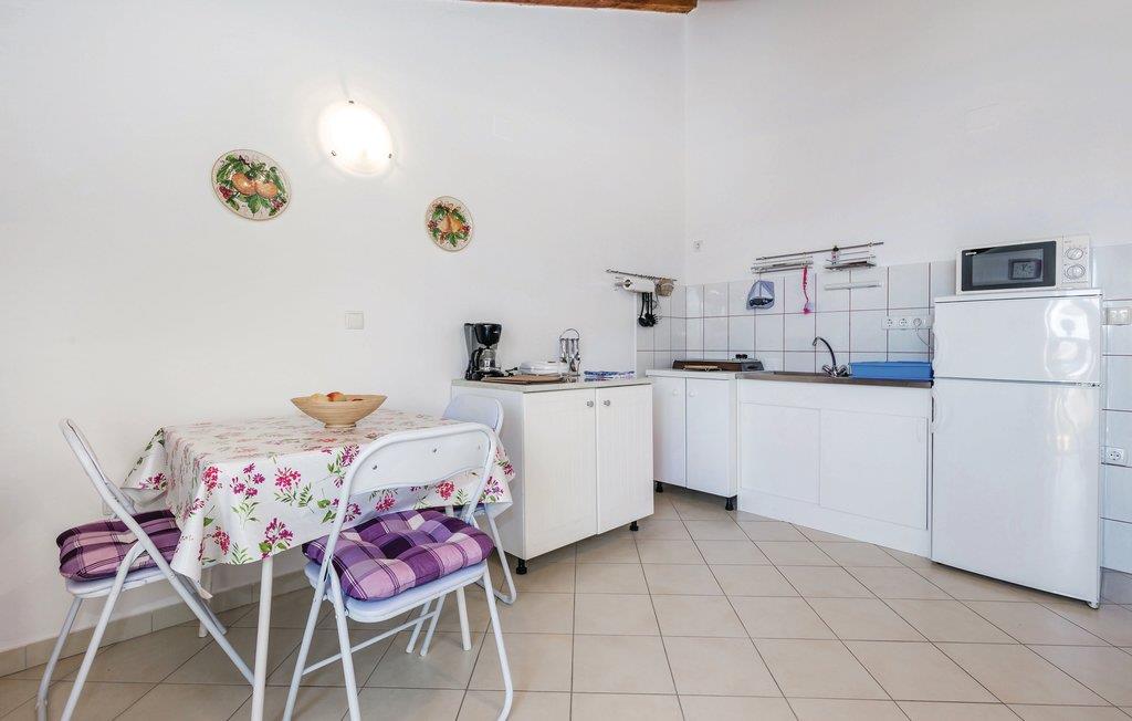 I et beboelseshus ligger disse enkelt indrettede ferielejligheder. Fra havet adskiller jer kun den lokale vej, der også fører til naboernes privathuse. I kan bestille disse to ferielejligheder sammen, hvis I vil holde ferie med en større familie eller venner. Så kan I nyde ferien sammen på denne skønne ø. I stueetagen bor den venlige ejer, der er til jeres rådighed under jeres ophold. Vi anbefaler et besøg på restauranter, hvor I foruden fiskeretter også kan smage de kendte kager fra Rab. Den laveste loftshøjde er 90 cm.