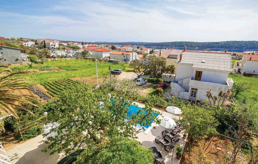 Komfortabel ferielejlighed i den rolige del af Barbat og neden for gaden Misnjak-Rab. Der er flere lejligheder i huset, alle med særskilte indgange. Denne lejlighed ligger på anden sal, der samtidig er tagetage med laveste loftshøjde på ca. 150 cm. Slap af i den enkelt og praktisk indrettede ferielejlighed, og nyd udsigten over havet fra den overdækkede balkon. På den fælles grund kan I spille bordtennis eller sidde hyggeligt sammen om aftenen og grille. I nærheden er der forskellige strande og en kystpromenade til Rab, hvor I kan opleve meget dejligt.