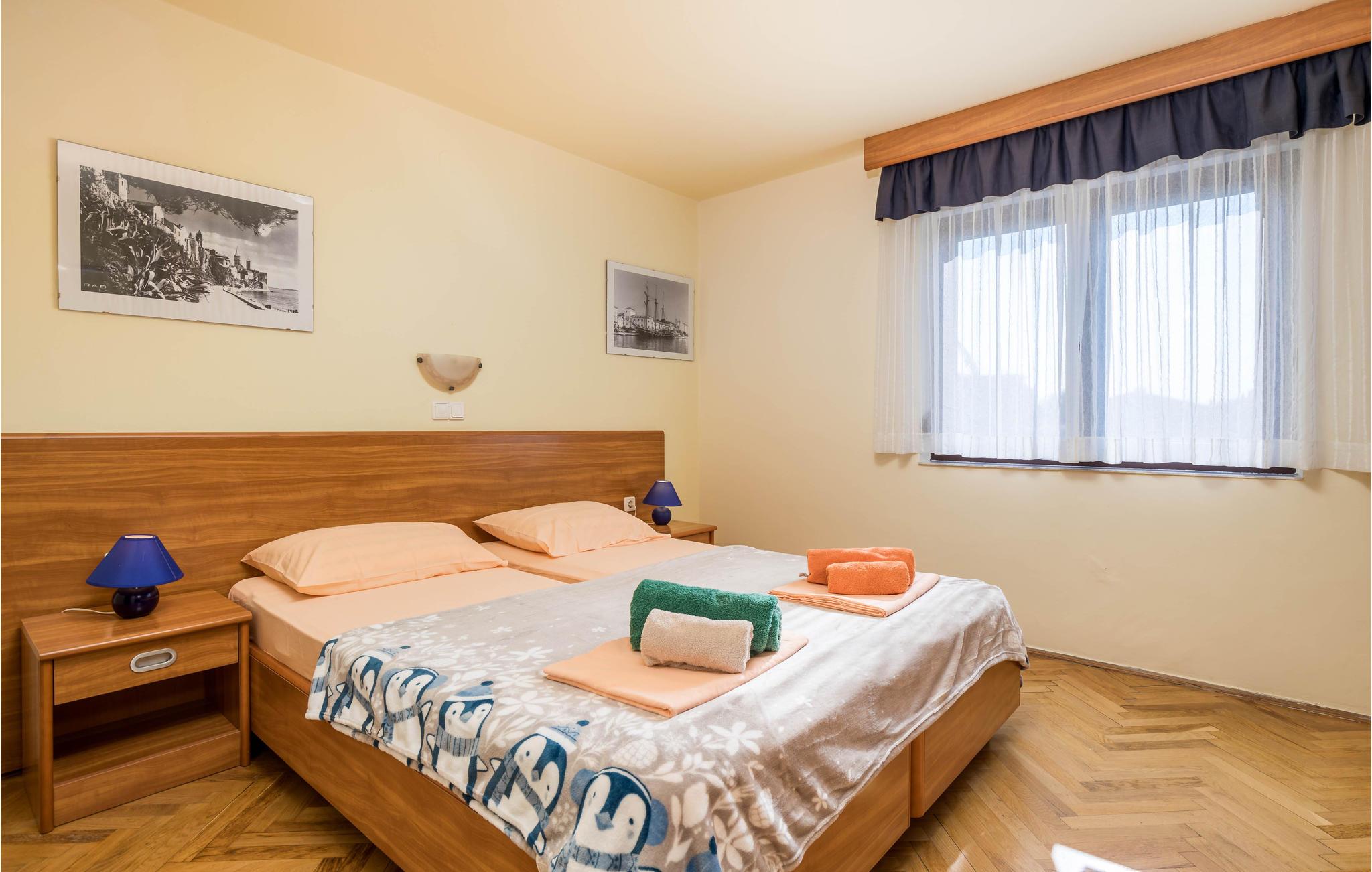 Denne praktiske og fuldt udstyrede ferielejlighed i Barbat på øen Rab ligger på 2. sal. Ferielejligheden er velegnet til en stor familie eller to familier, fordi antallet af soveværelser med badeværelser en suite sørger for privatliv til alle. Flere balkoner giver jer en fantastisk udsigt til havet og øen Dolin. Nyd morgenkaffen i den friske luft og planlæg dagens aktiviteter.